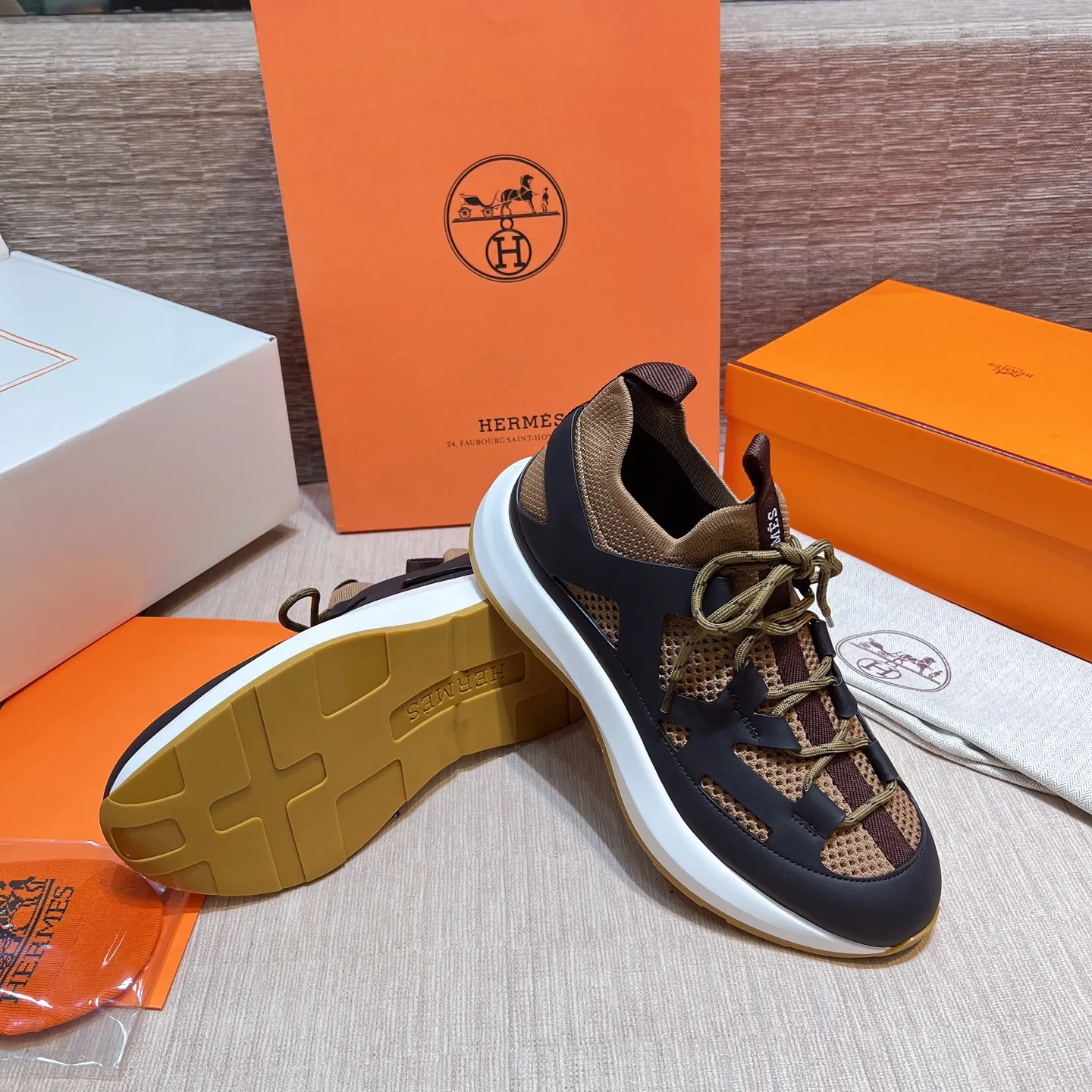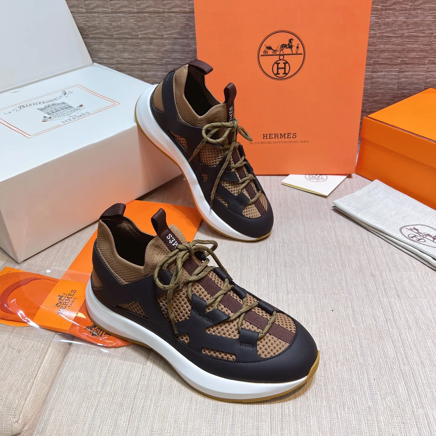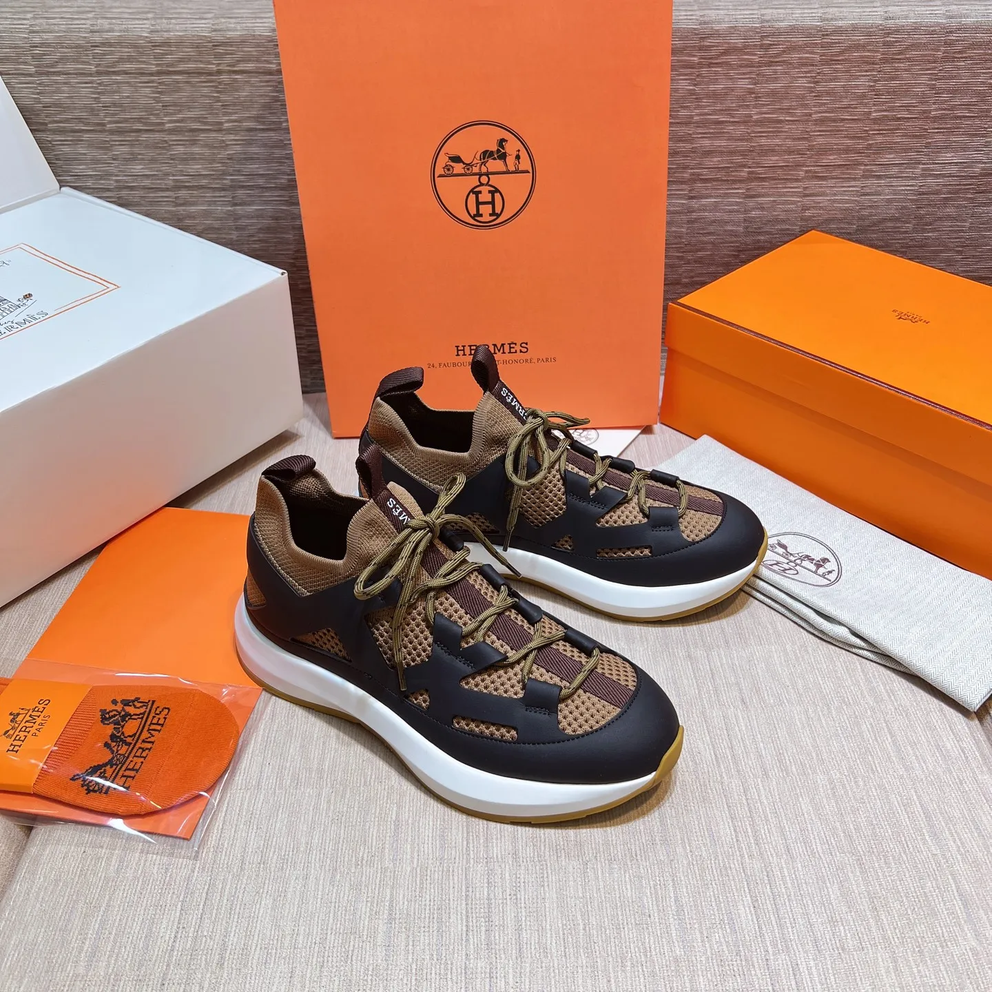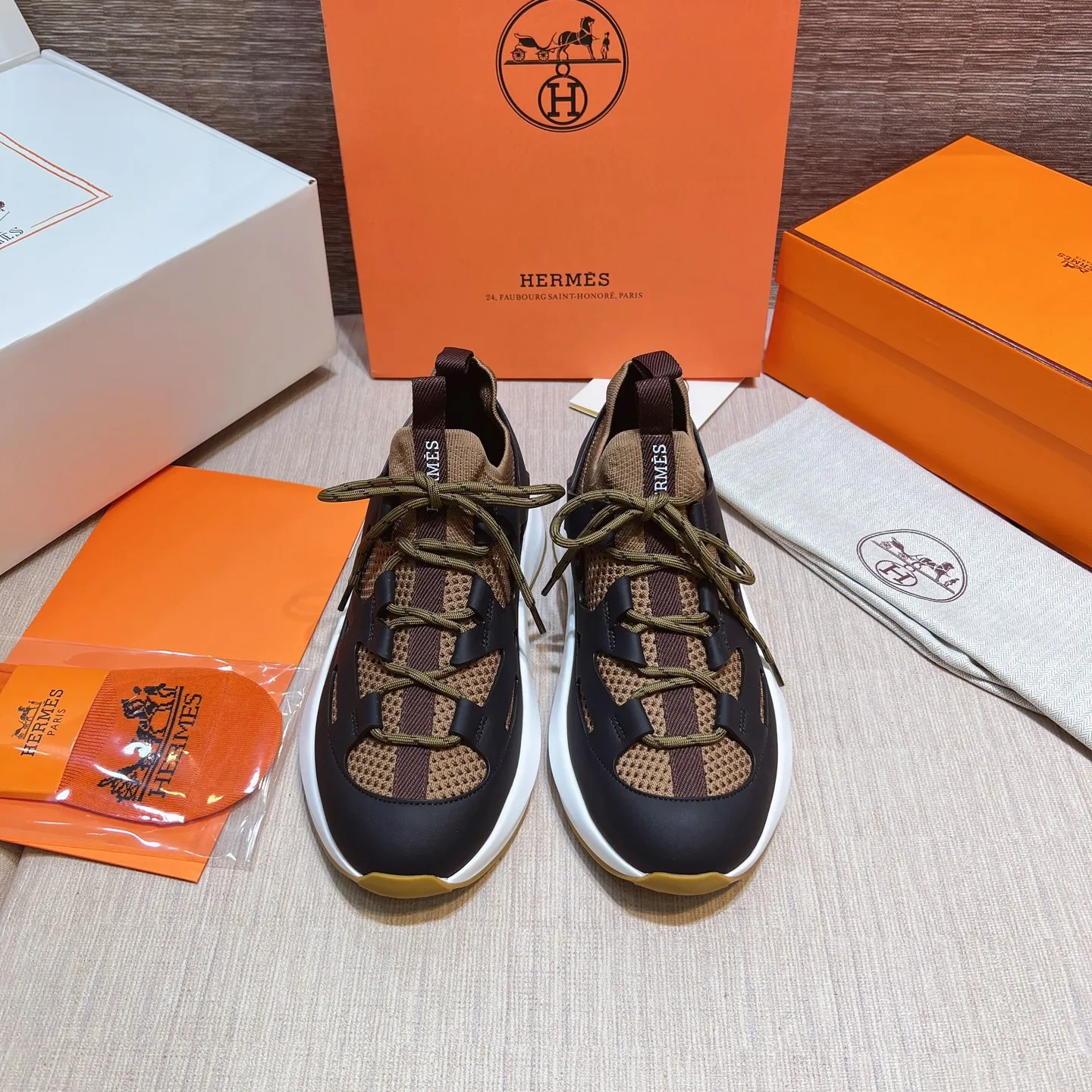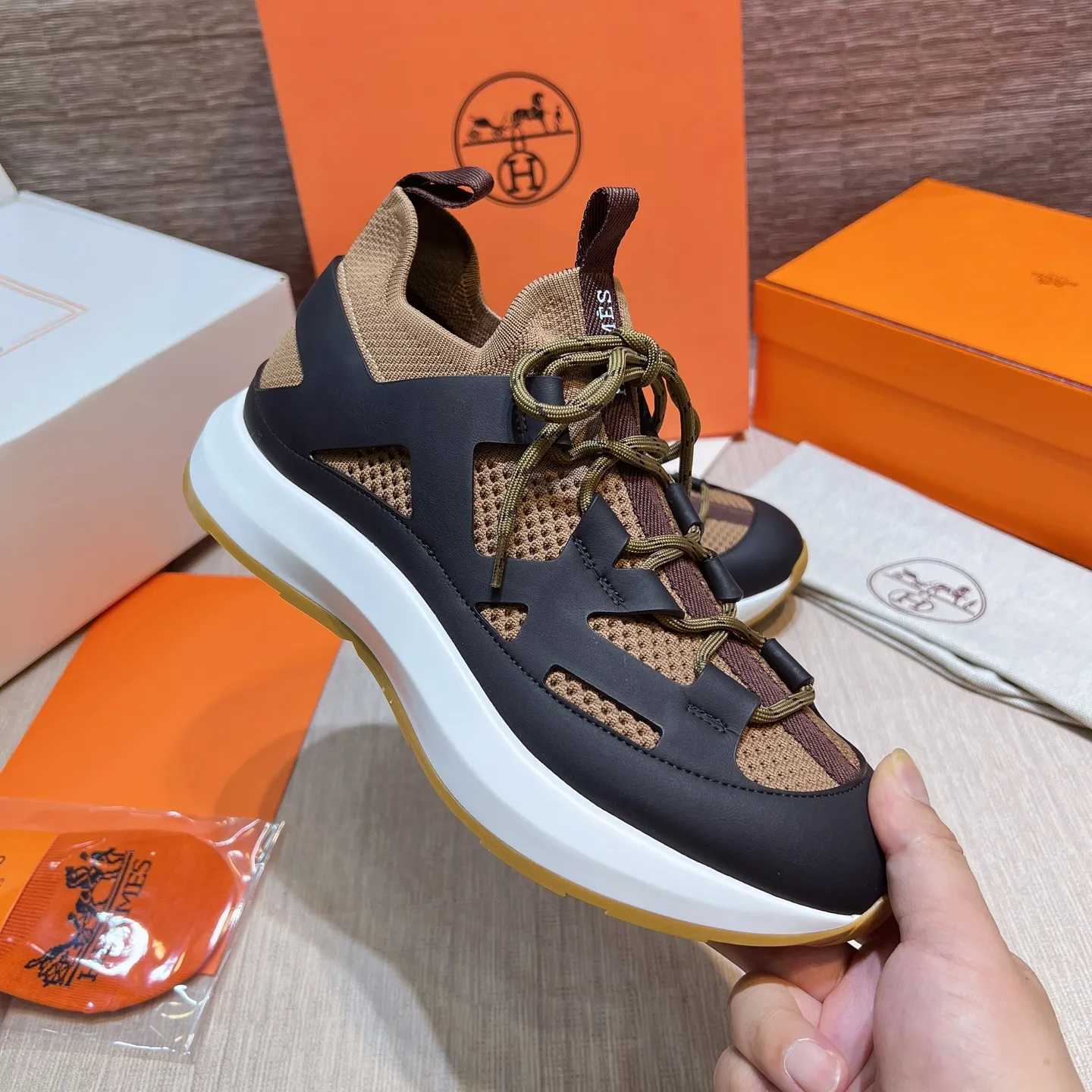 HERMES Hugo厚底スニーカー茶色カジュアルスタイル