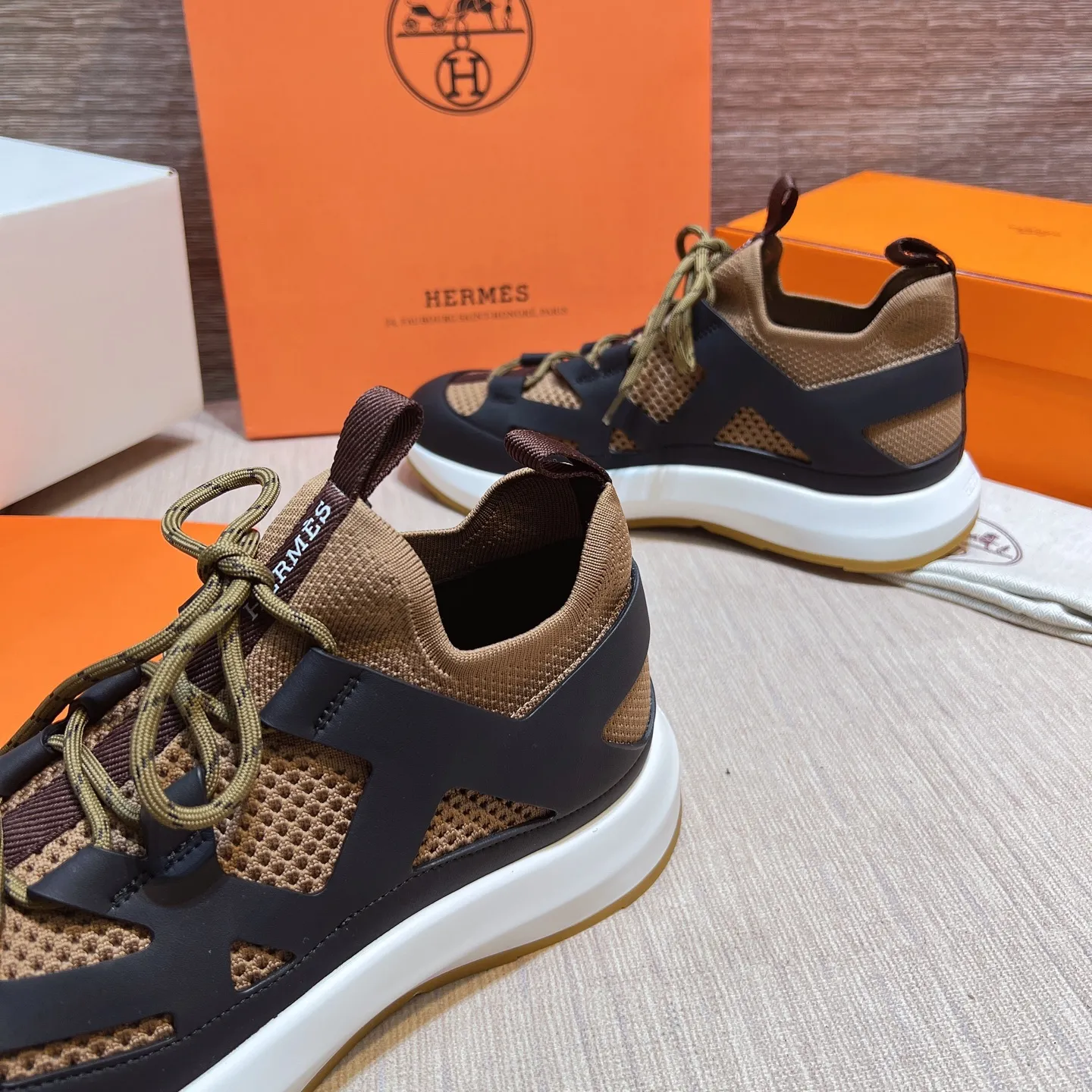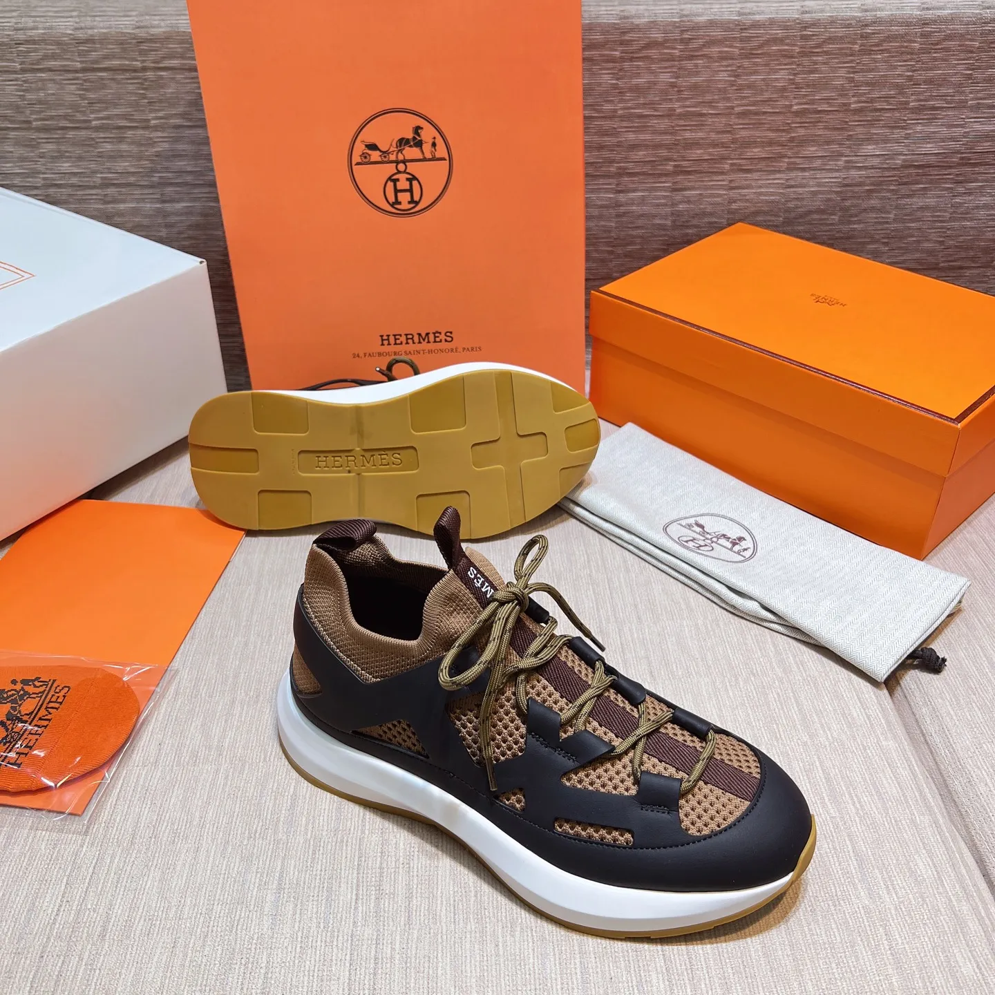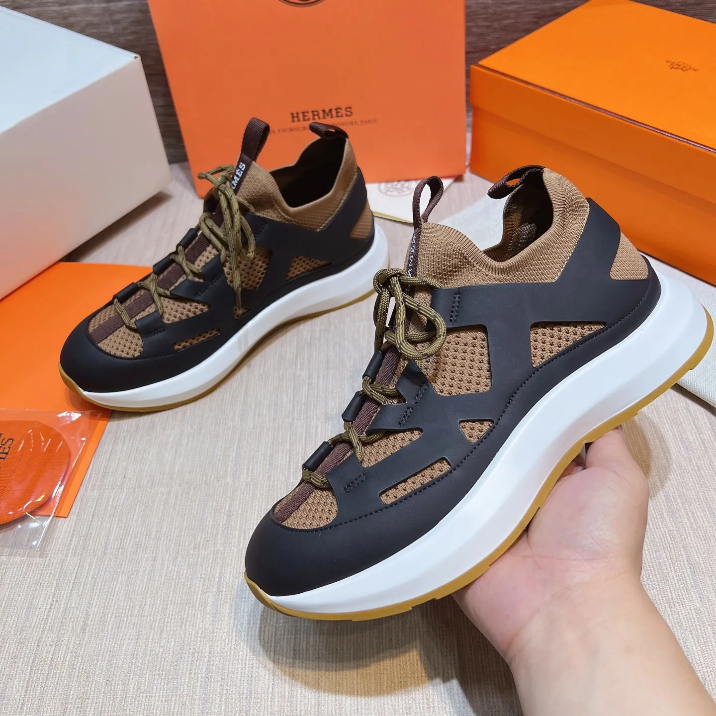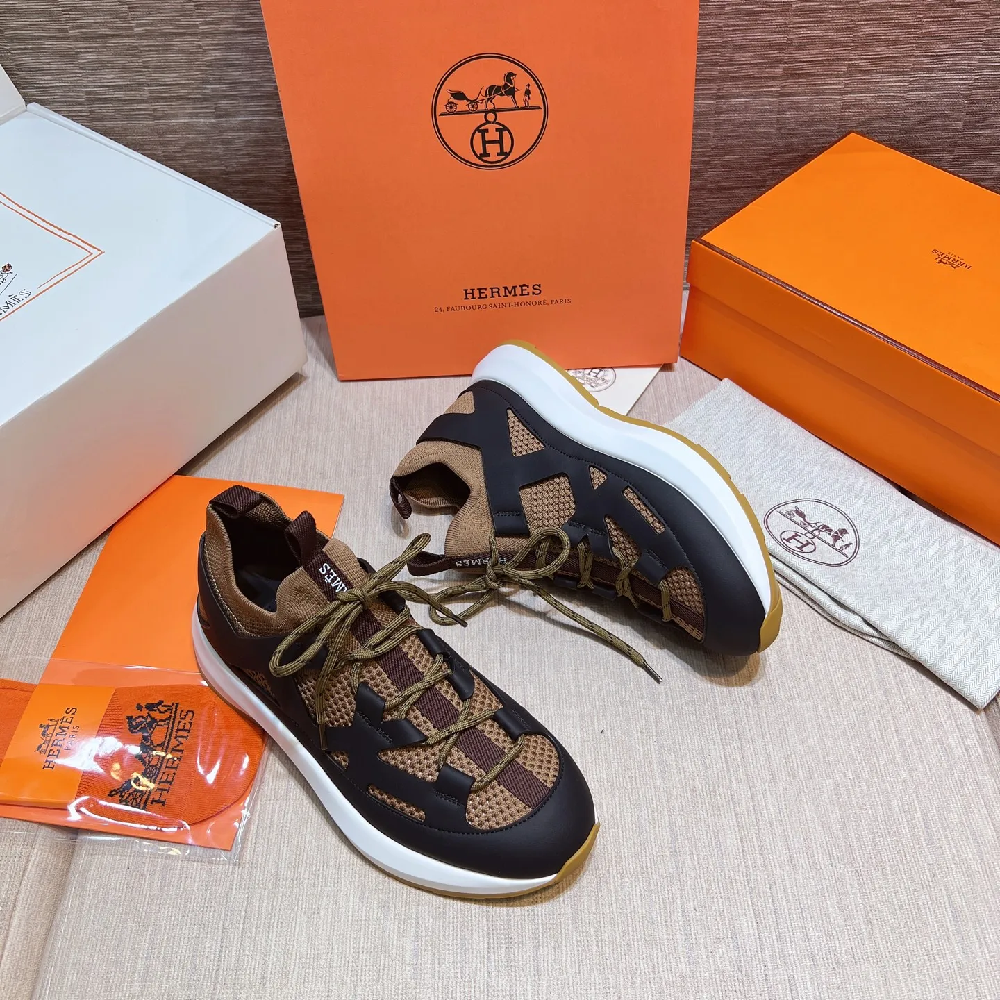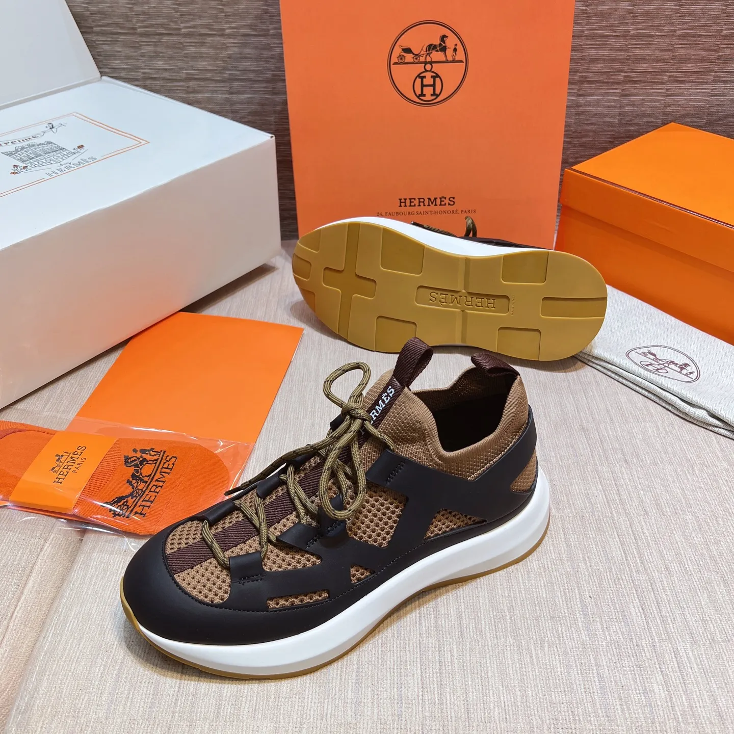 HERMES Hugo厚底スニーカー茶色カジュアルスタイル