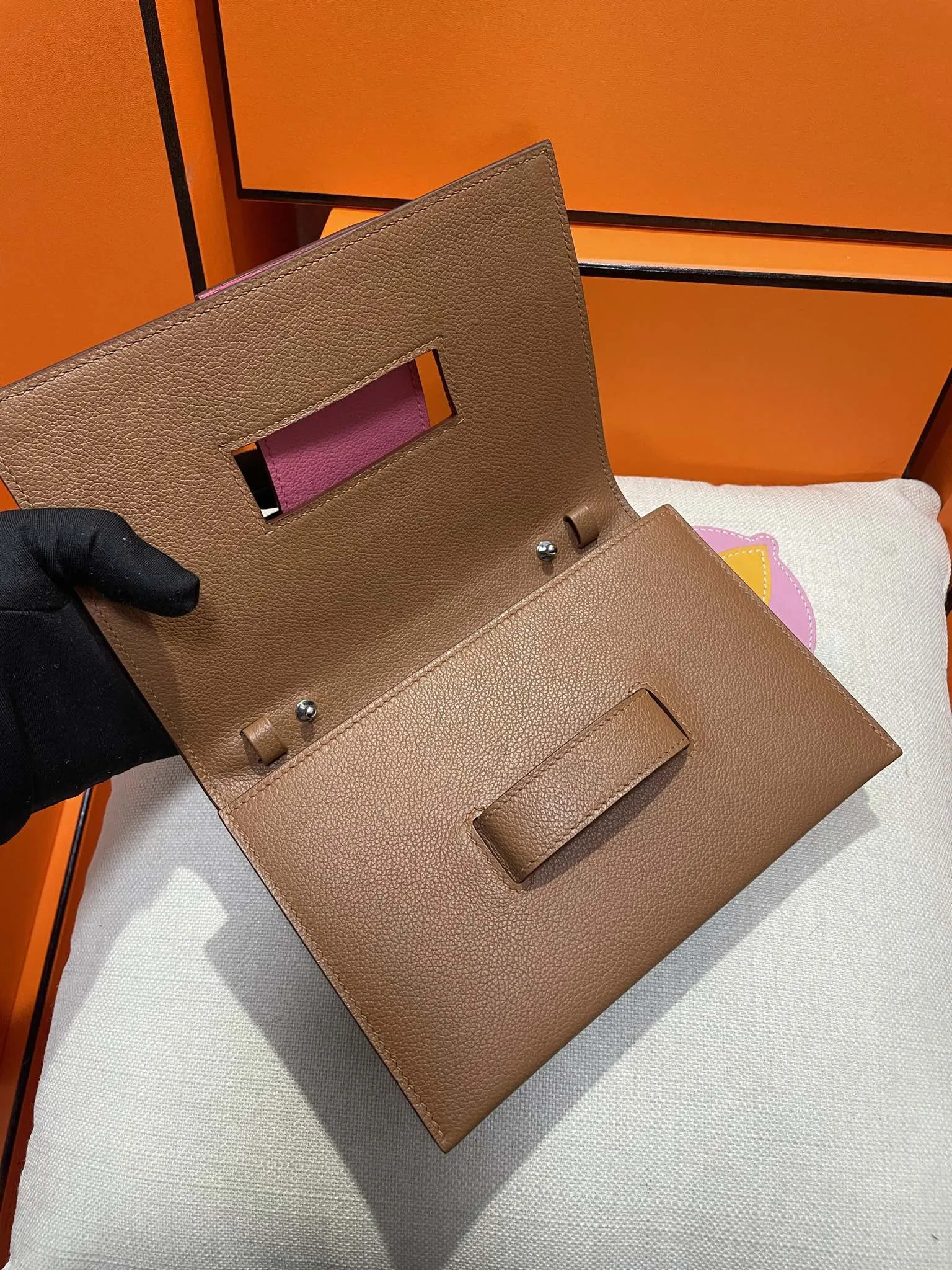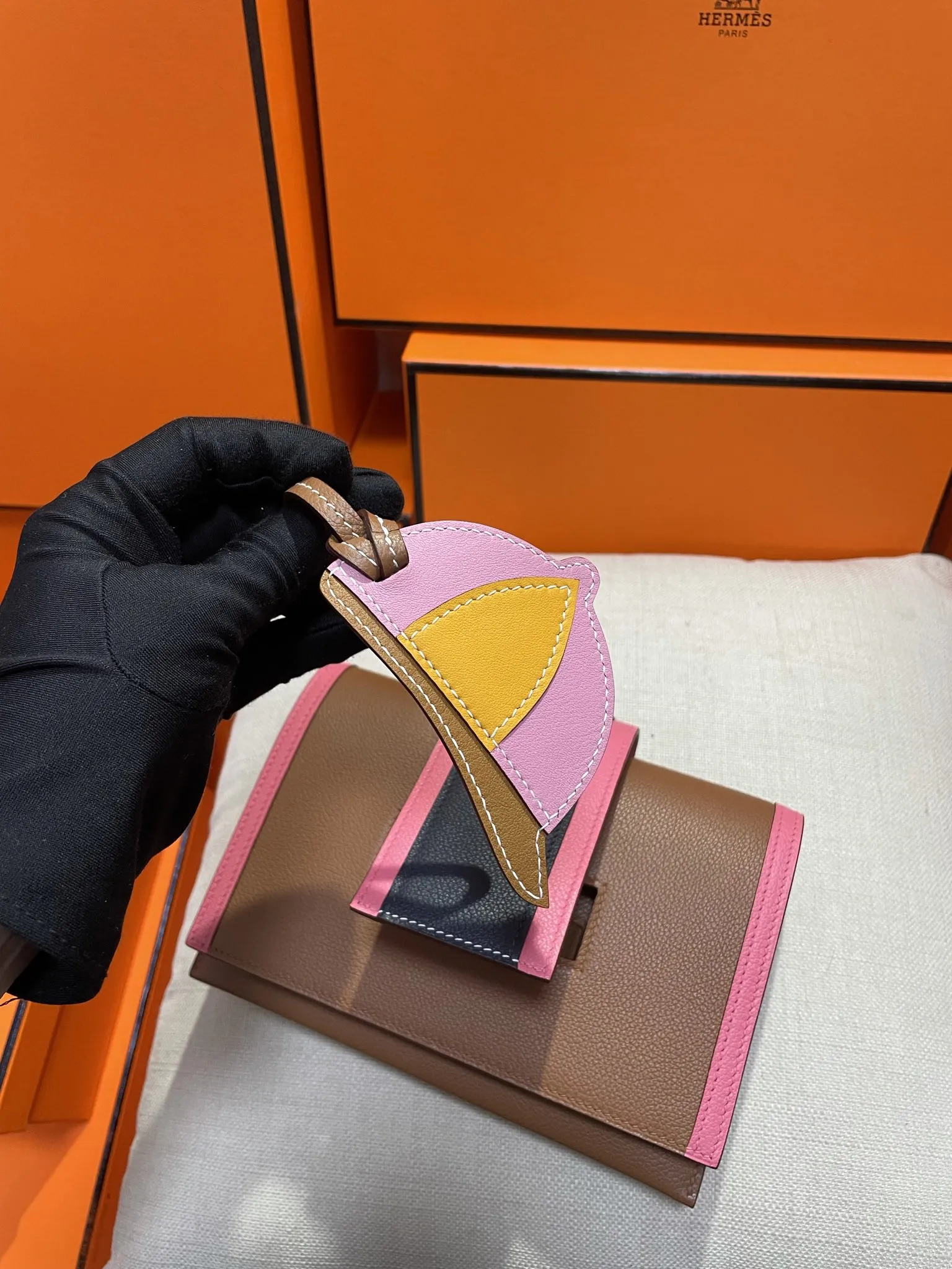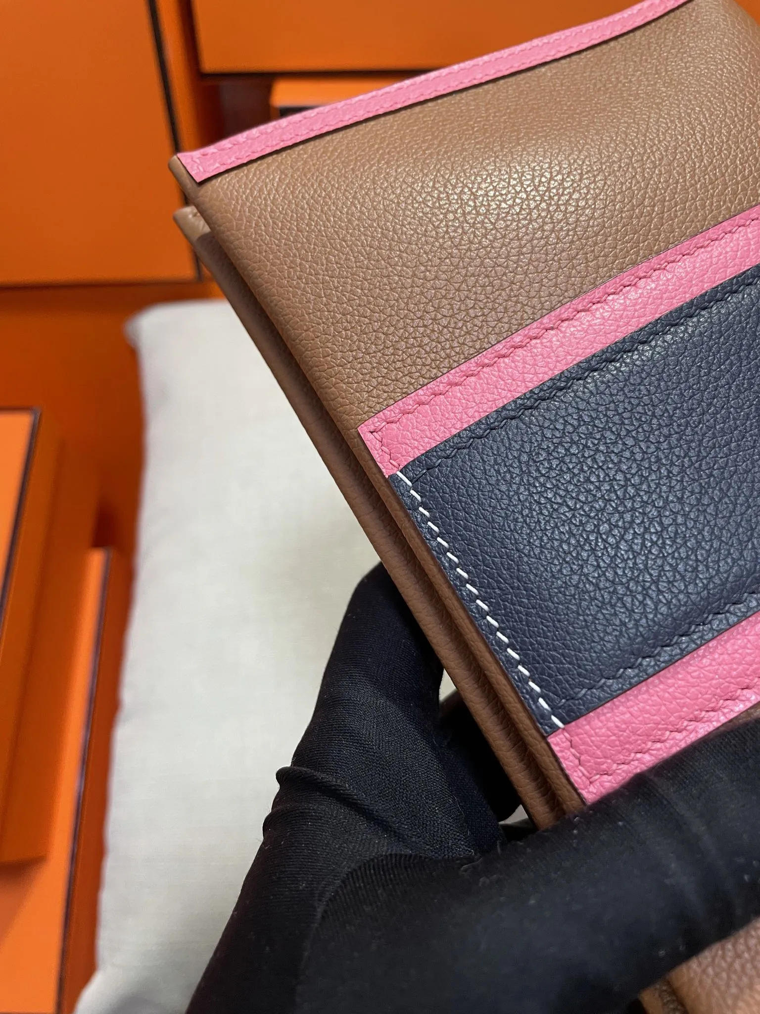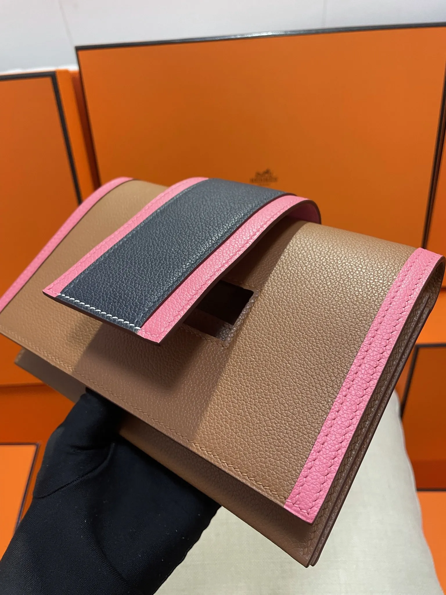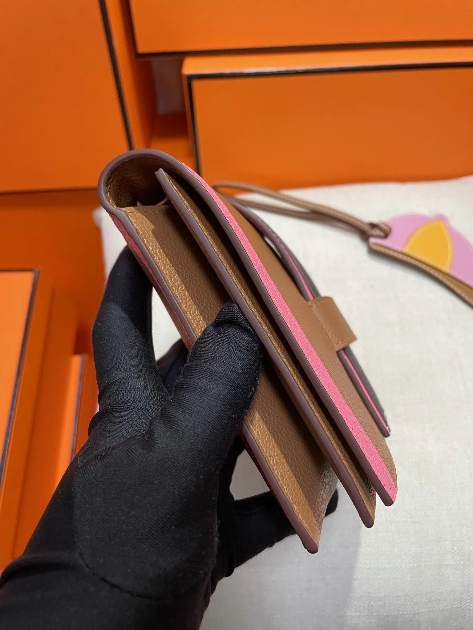 エルメスPassant ゴールドブラウン 拼色WOC
