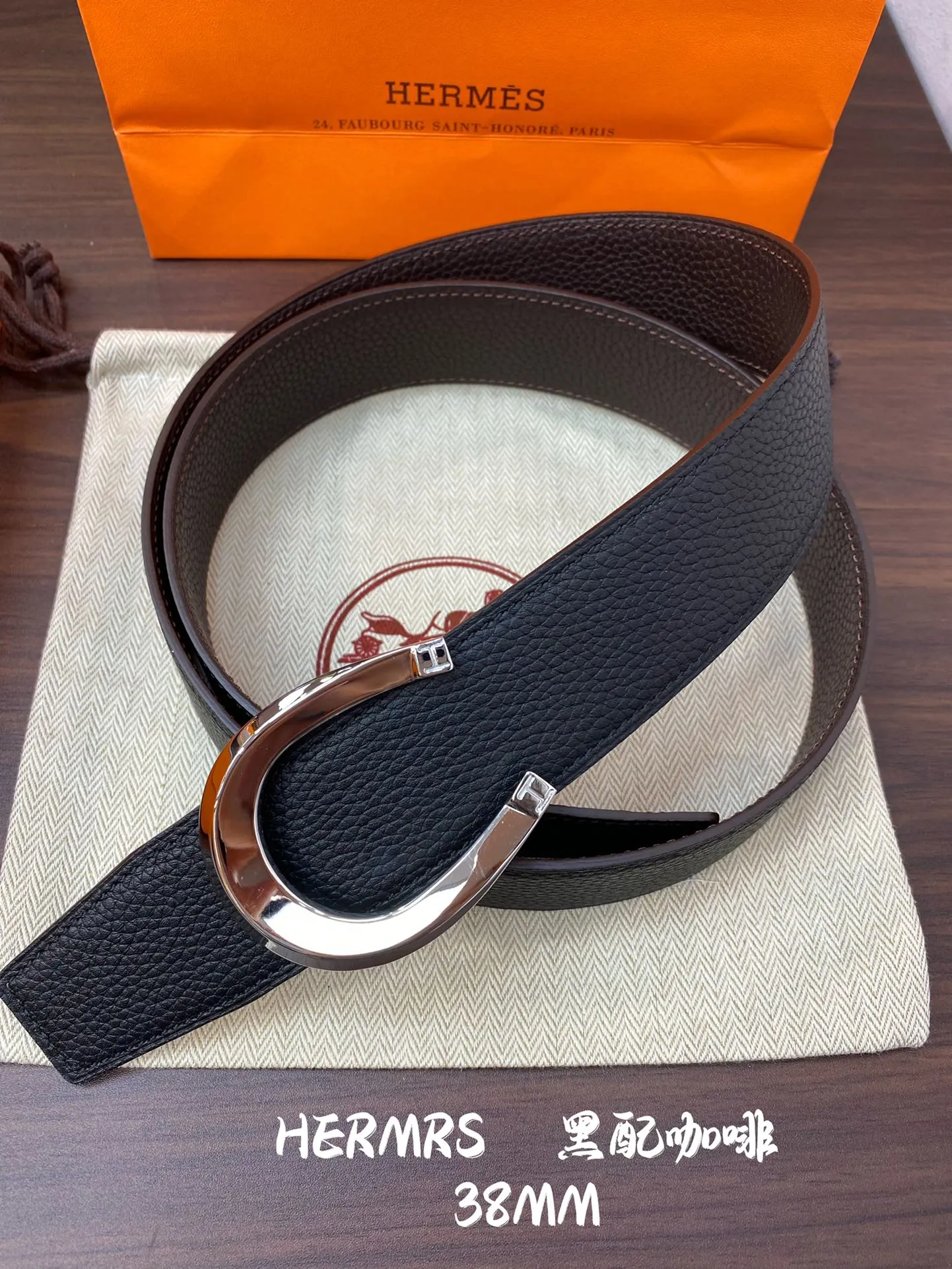 エルメス新作H BELTバックル38mm黒