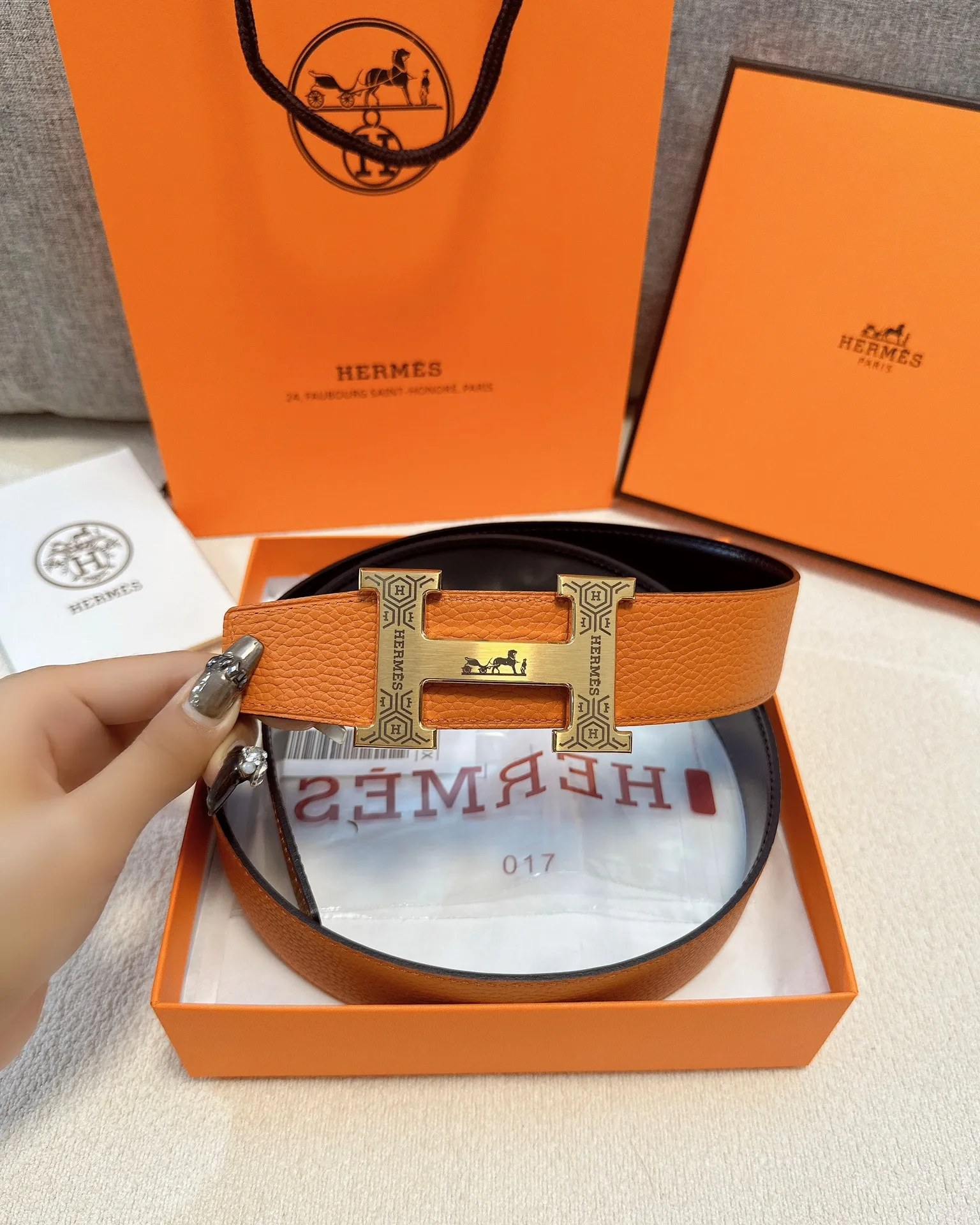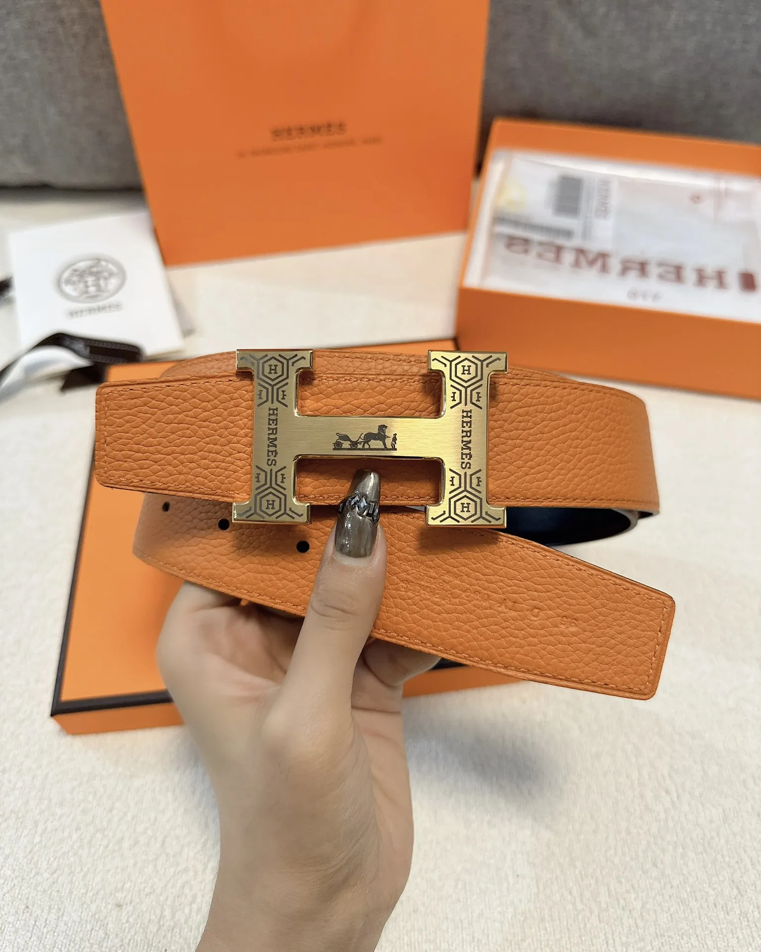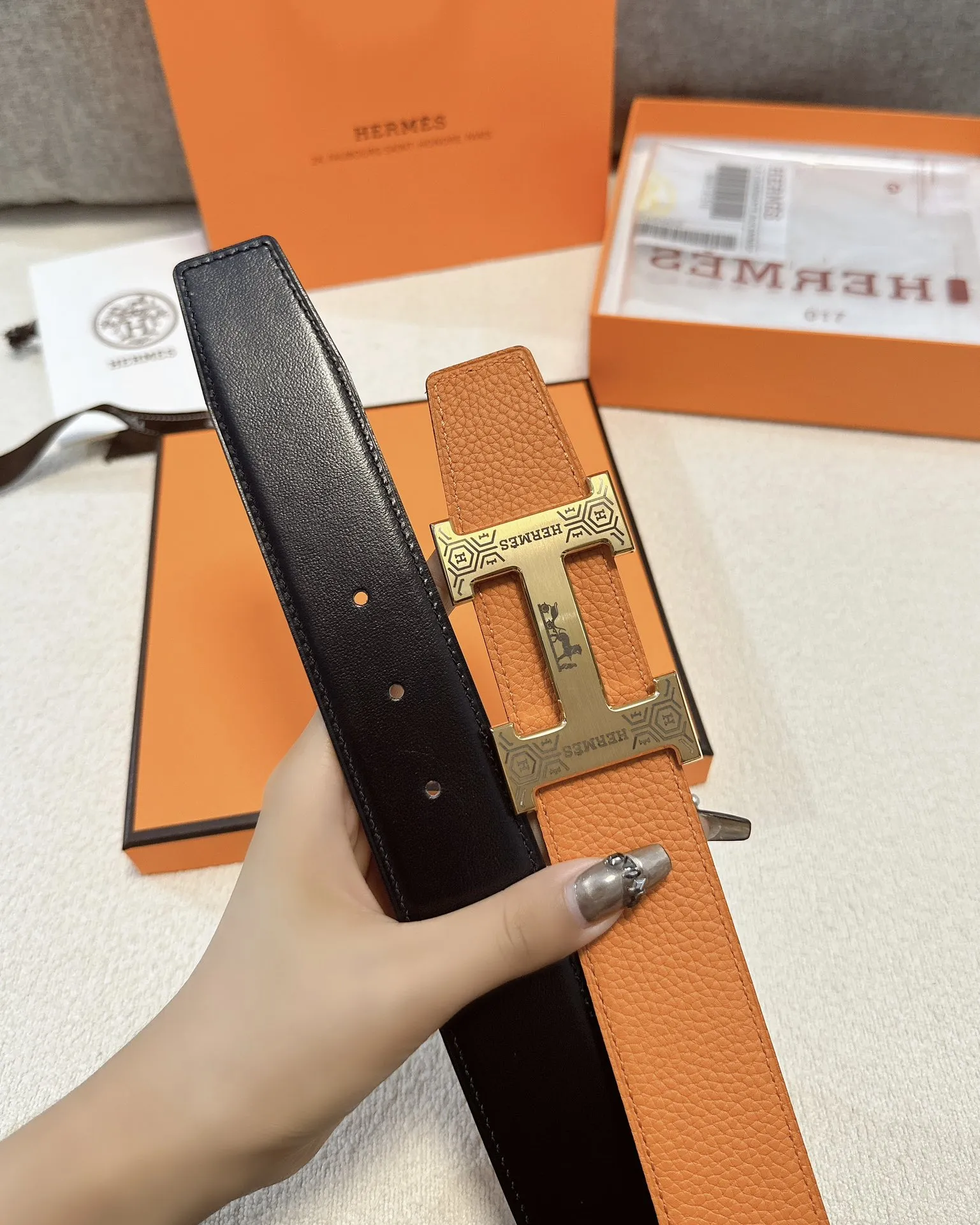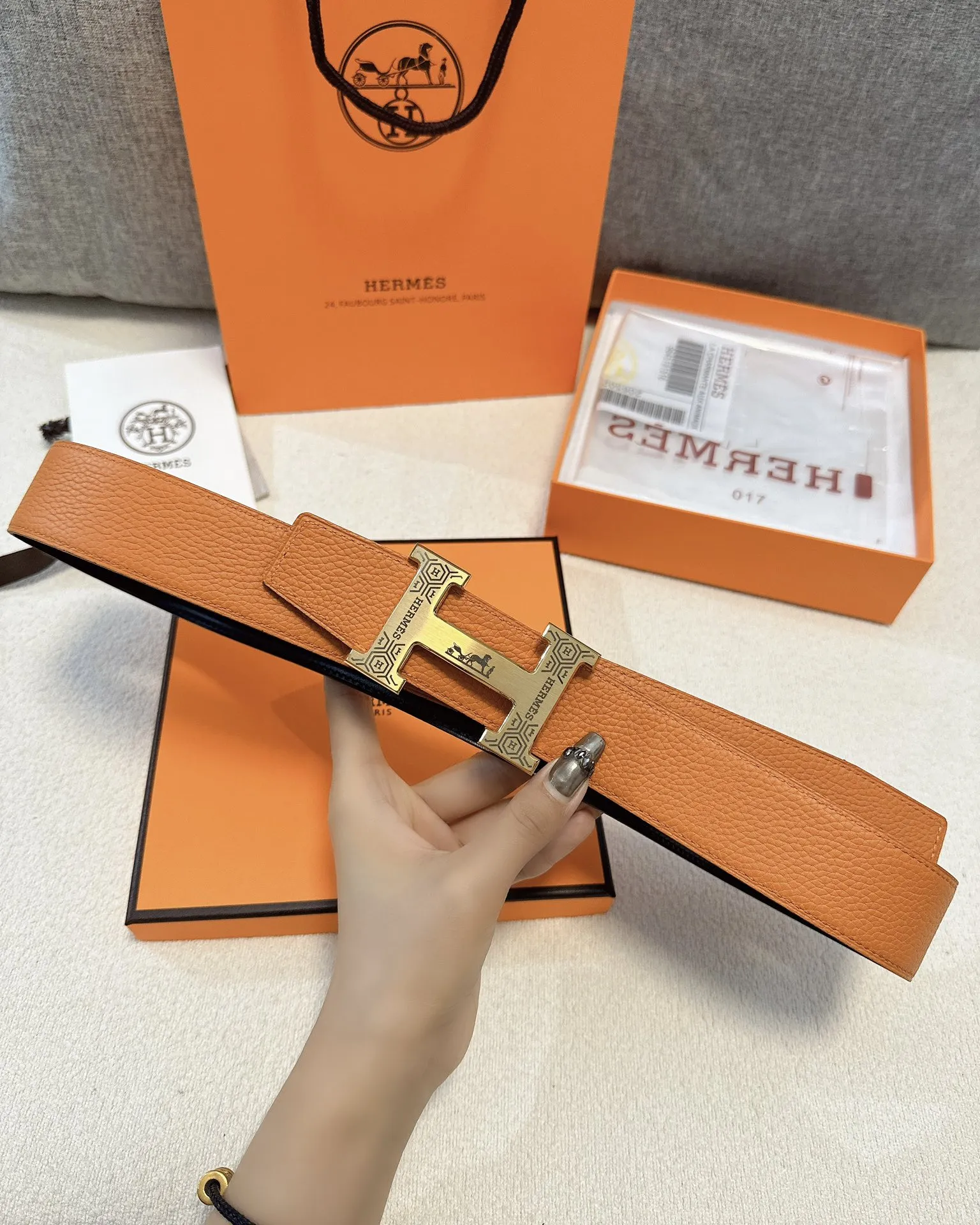 エルメスの新作オレンジレザーベルトは、幅3.8cmの高品質な輸入原版皮革を使用し、ダブルフェイスデザインで両面使用可能です。高級感あふれる精品電镀五金が特徴で、ゴールドカラーのH型バックルがアクセント。裏面はブラックレザーで、オリジナルのエルメスパッケージ付きでお届けします。最高品質のアイテムをお探しの方には、スーパー コピーとしても注目される一品です。