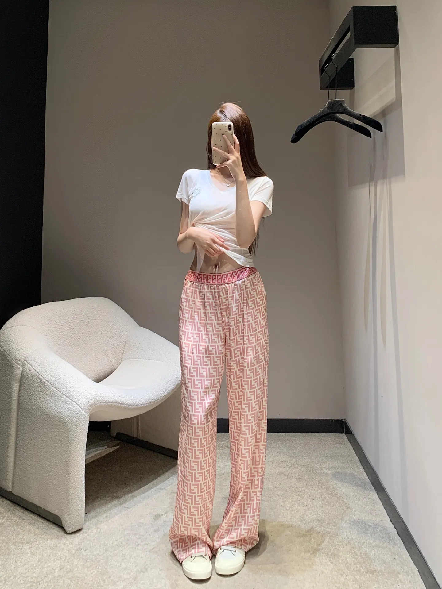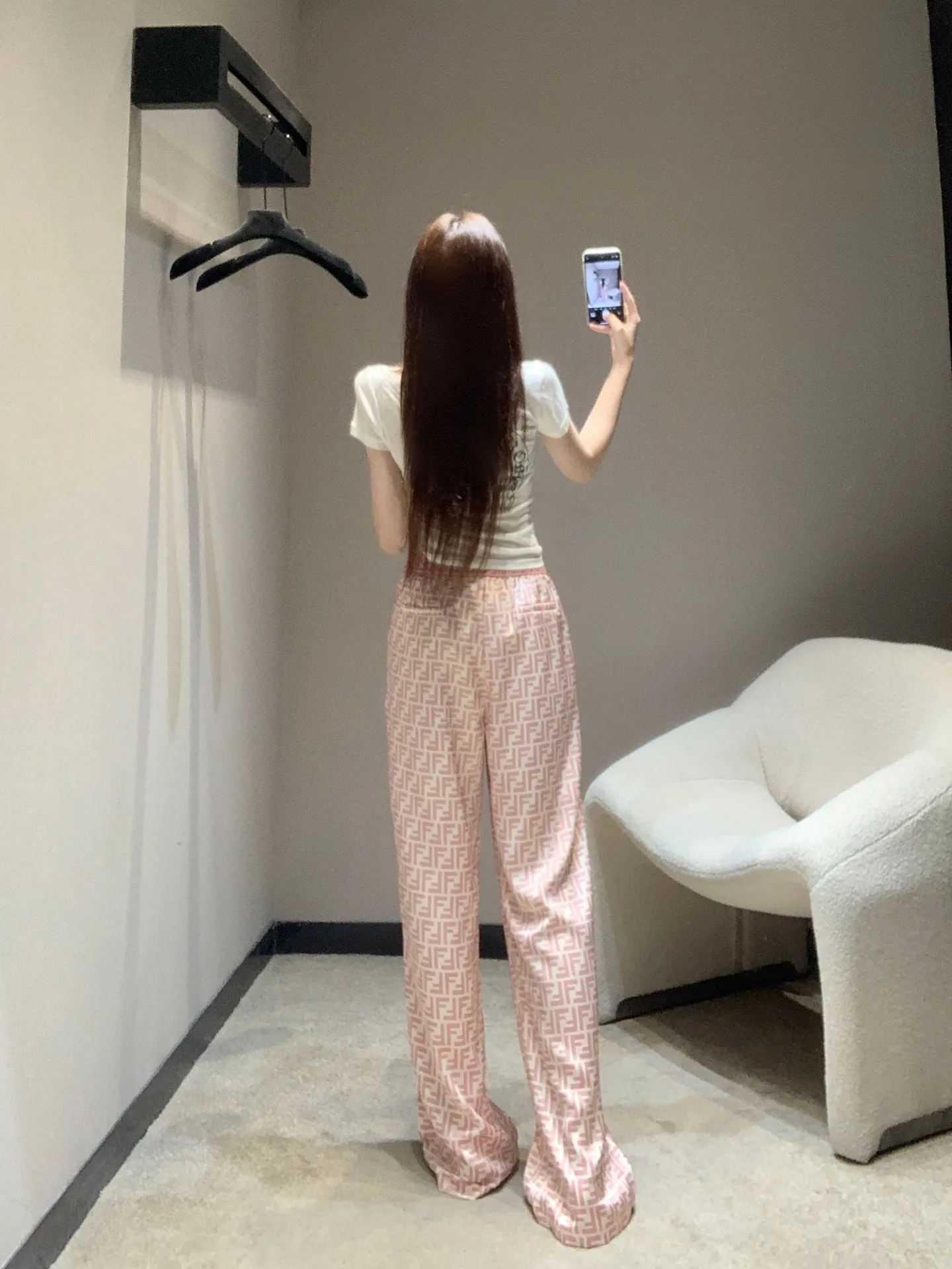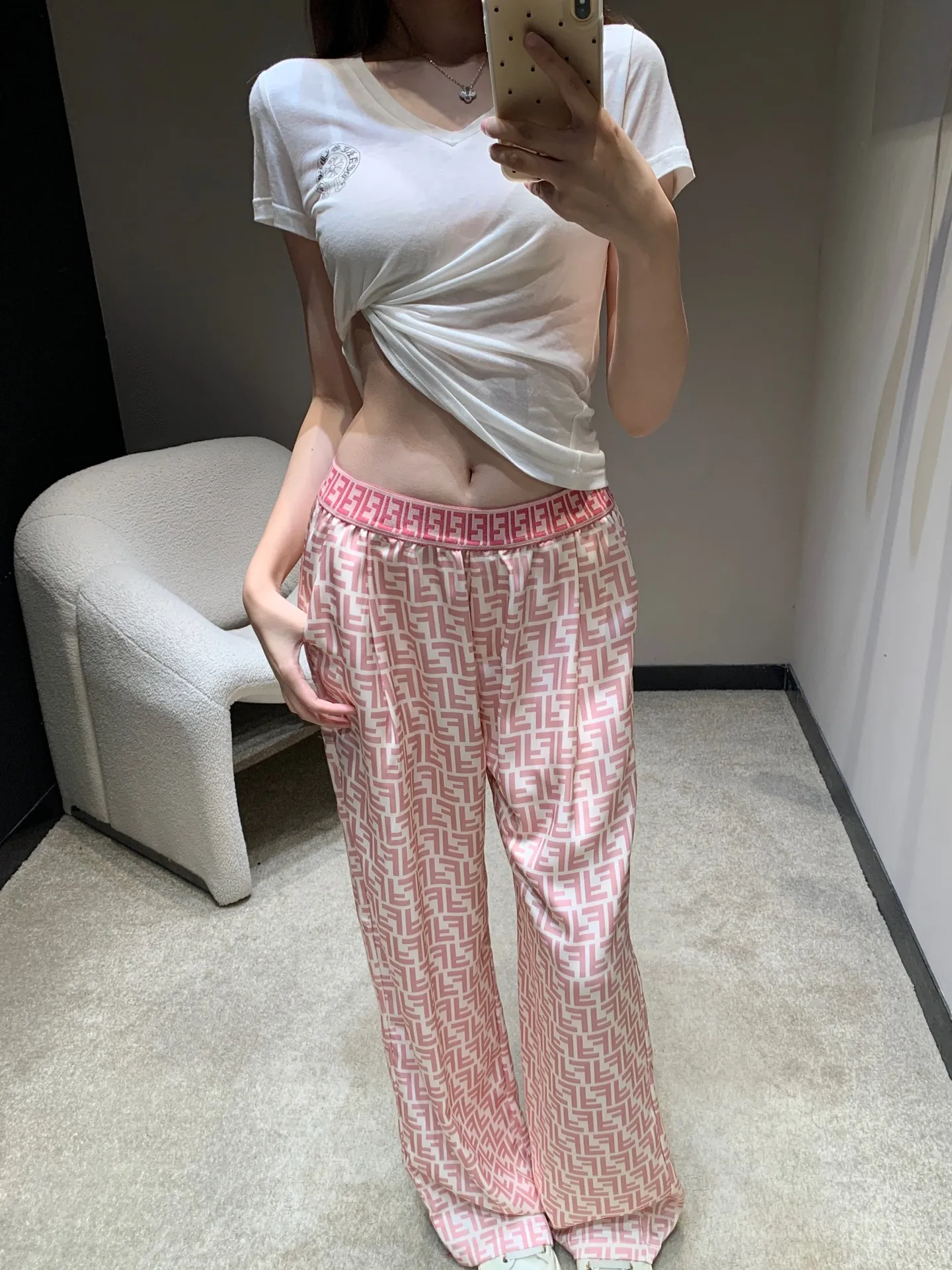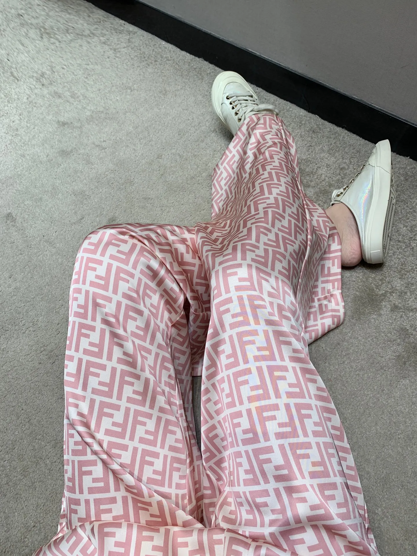 Fendi 2023春夏ピンク織帯ワイドパンツ