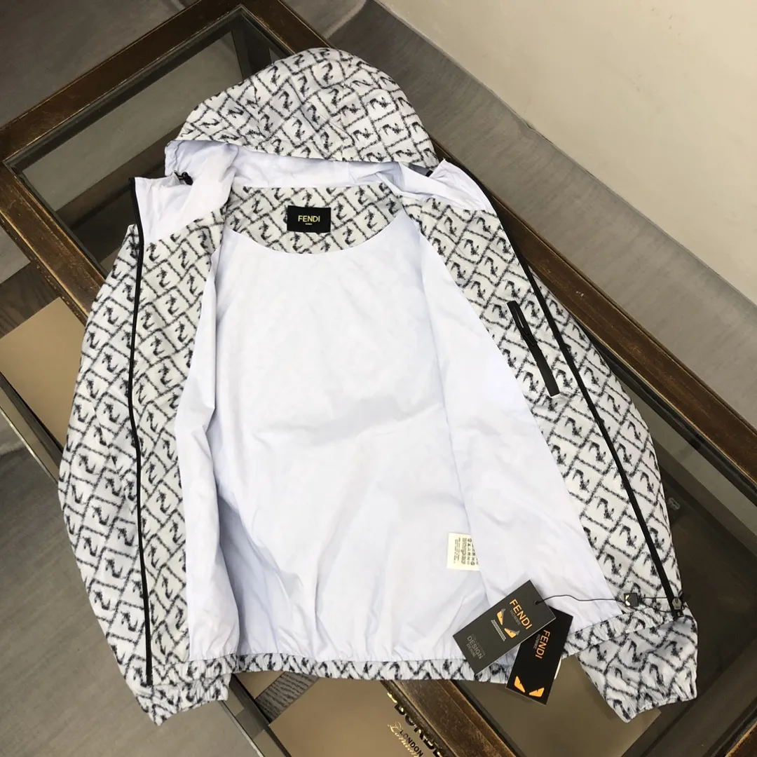 FENDI 2025カール・ラガーフェルドの新作ホワイト&グレーのフード付きジャケット