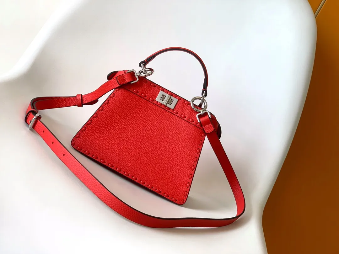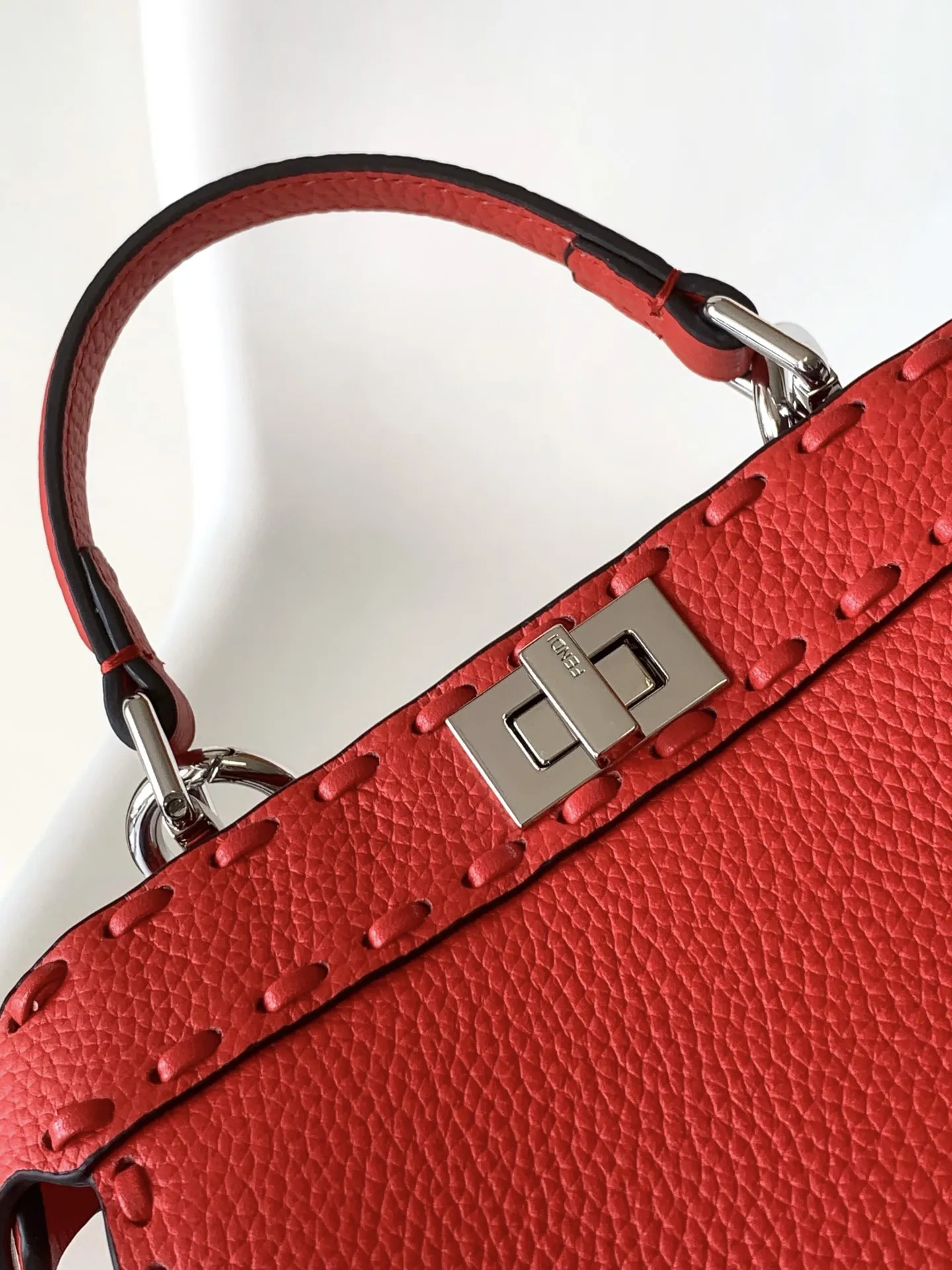 フェンディのアイコニックなPeekaboo ISeeU Miniバッグは、鮮やかなレッドカラーが特徴の高級感あふれるデザインです。進口小牛皮を使用し、同色系の大号明線で手工芸的に仕上げられています。クラシックなツイストロックと2つの隔層が機能性を高め、手提げや斜め掛けが可能な調節可能なショルダーストラップが付属しています。サイズは20-11-15.5cmで、コンパクトながらも実用的なミニバッグです。このような高品質なデザインをお探しの方には、スーパーコピーバッグもおすすめです。