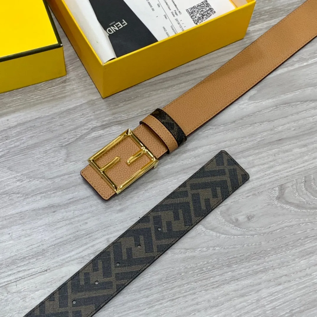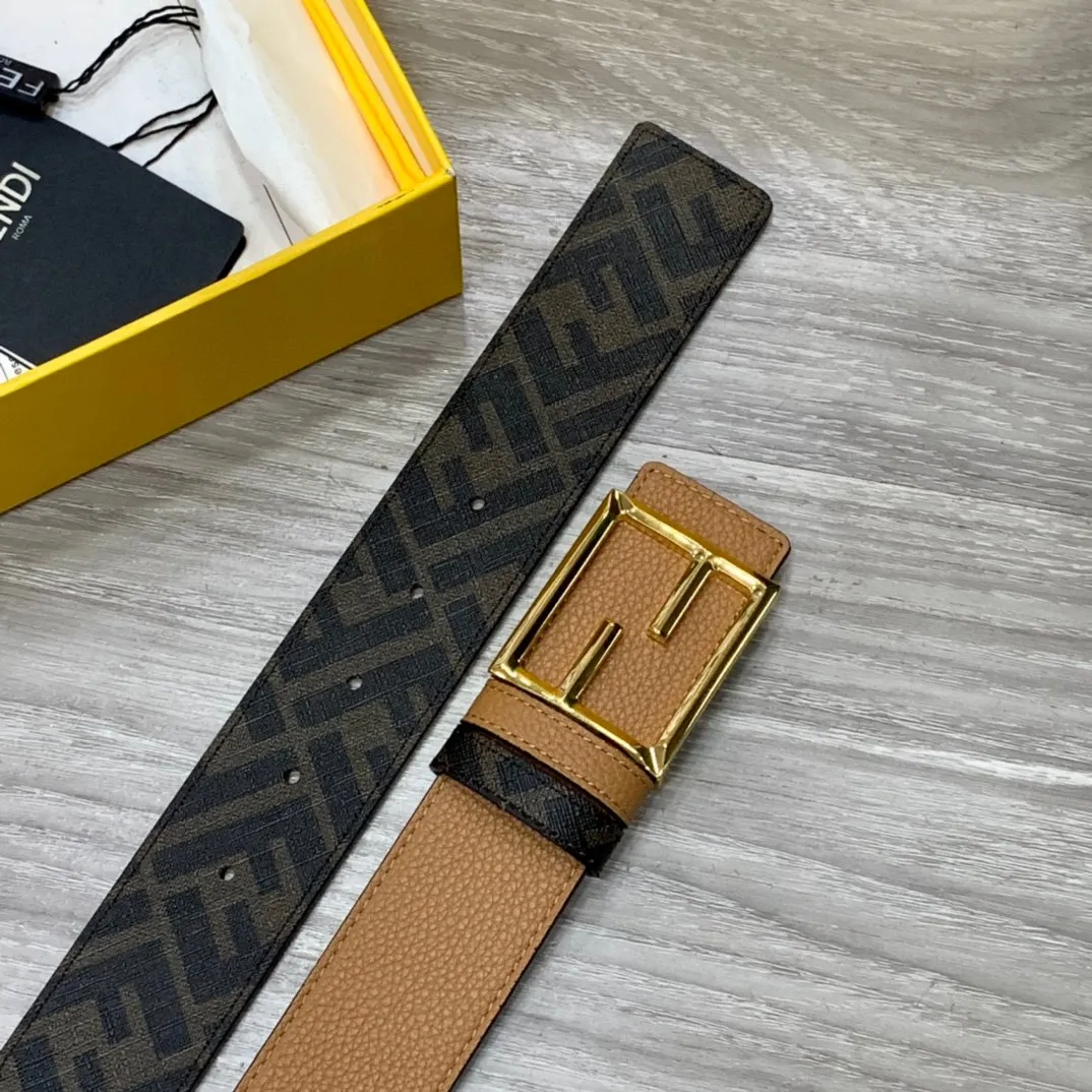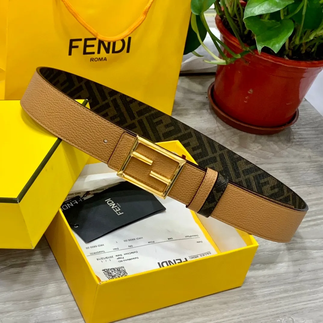 FENDIのタンカラーダブルリングベルトは、両面使用可能なデザインで、表側はCuoio Romanoレザー、裏側はタバコイエローとブラックのFFパターンが特徴です。FFプレススタッドバックルと四角いフルダイヤモンドメタル装飾が高級感を演出します。ファッショナブルでクラシックなデザインは、どんなスタイルにもマッチし、N級品としてのクオリティを感じさせます。