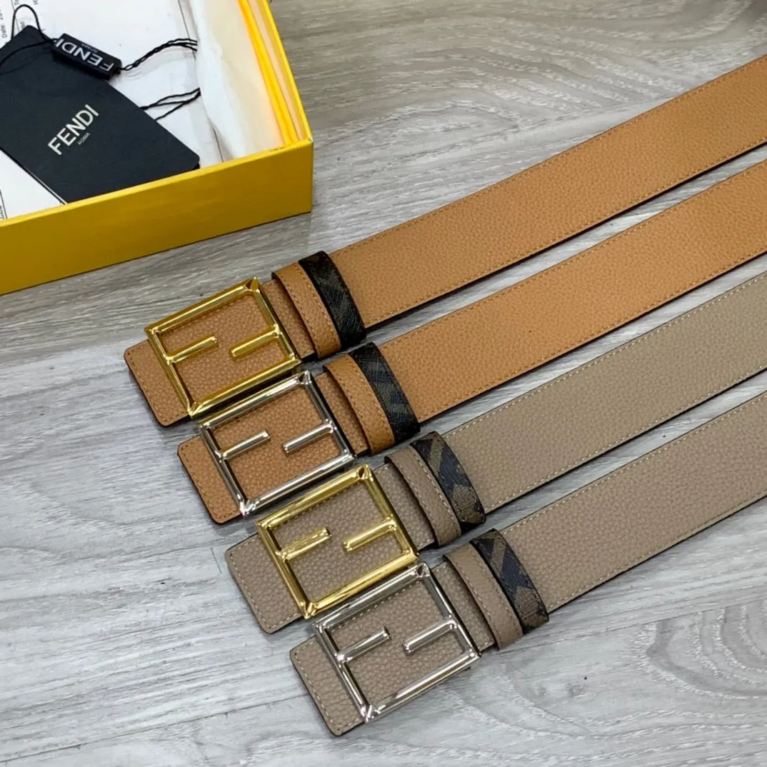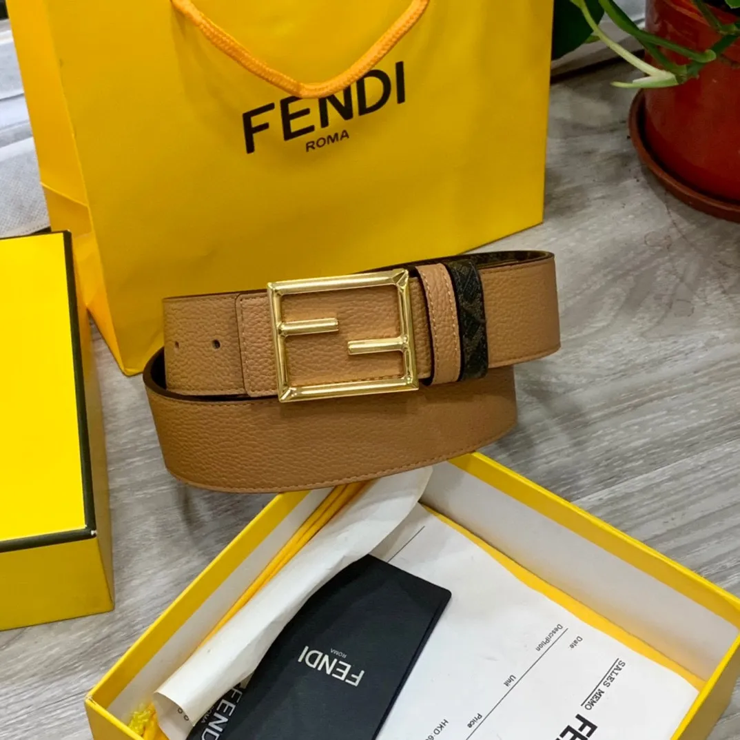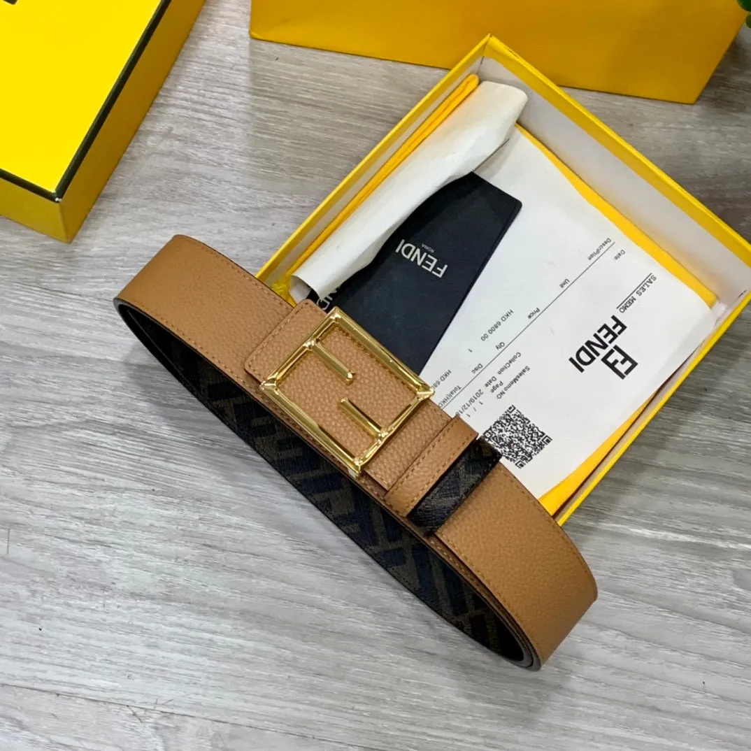 FENDIのタンカラーダブルリングベルトは、両面使用可能なデザインで、表側はCuoio Romanoレザー、裏側はタバコイエローとブラックのFFパターンが特徴です。FFプレススタッドバックルと四角いフルダイヤモンドメタル装飾が高級感を演出します。ファッショナブルでクラシックなデザインは、どんなスタイルにもマッチし、N級品としてのクオリティを感じさせます。