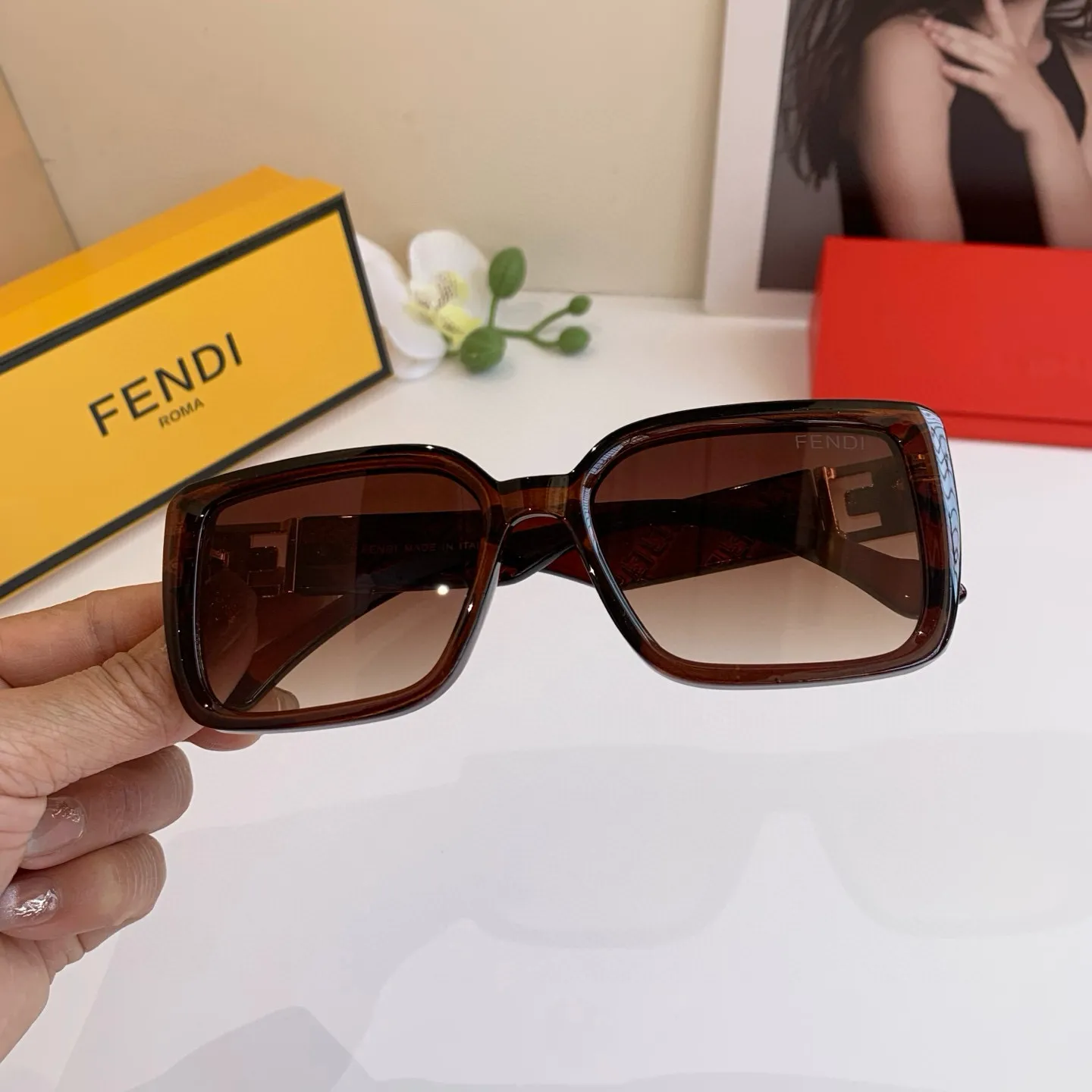 FENDI新作黒サングラスファッションモデル