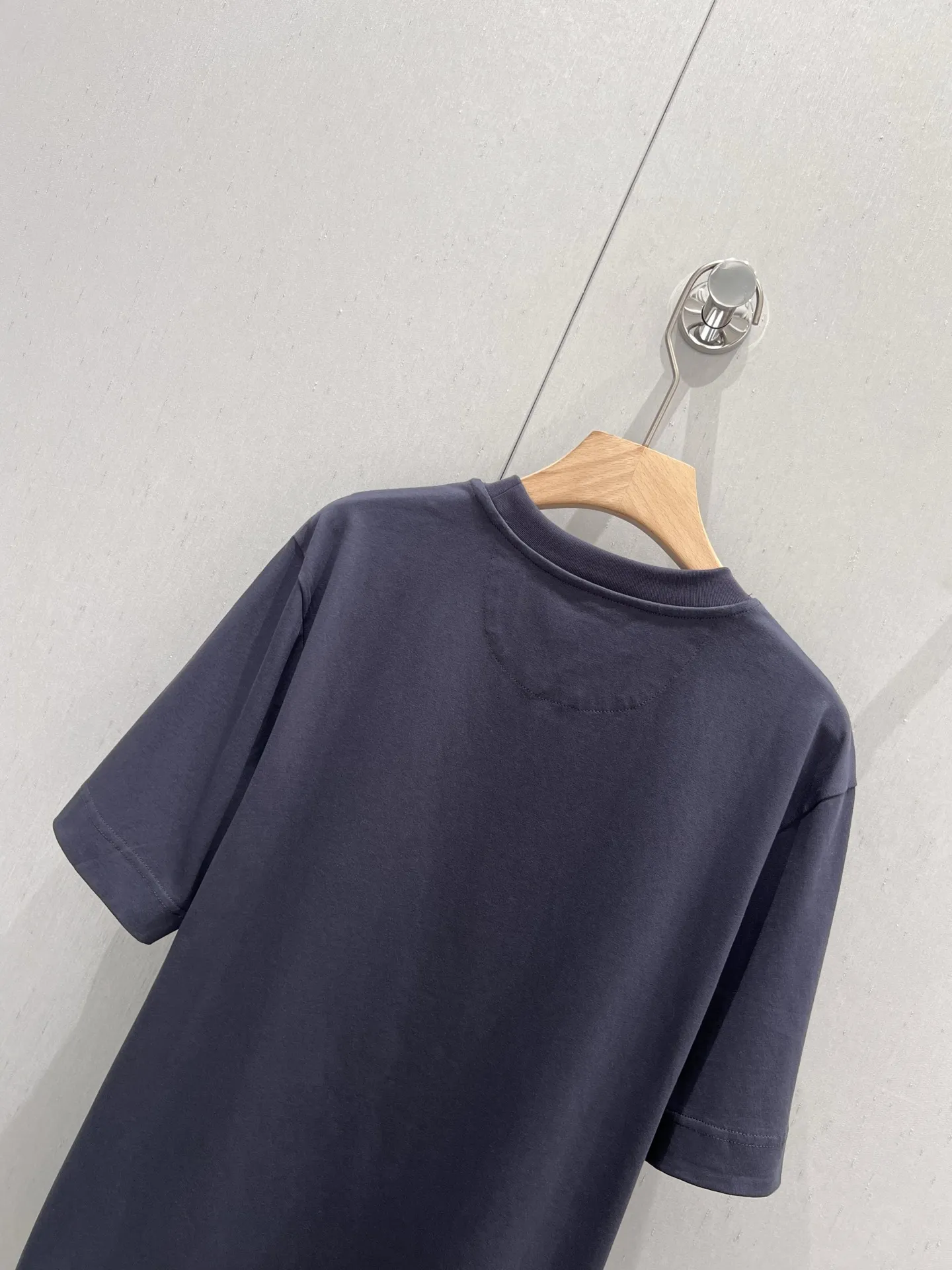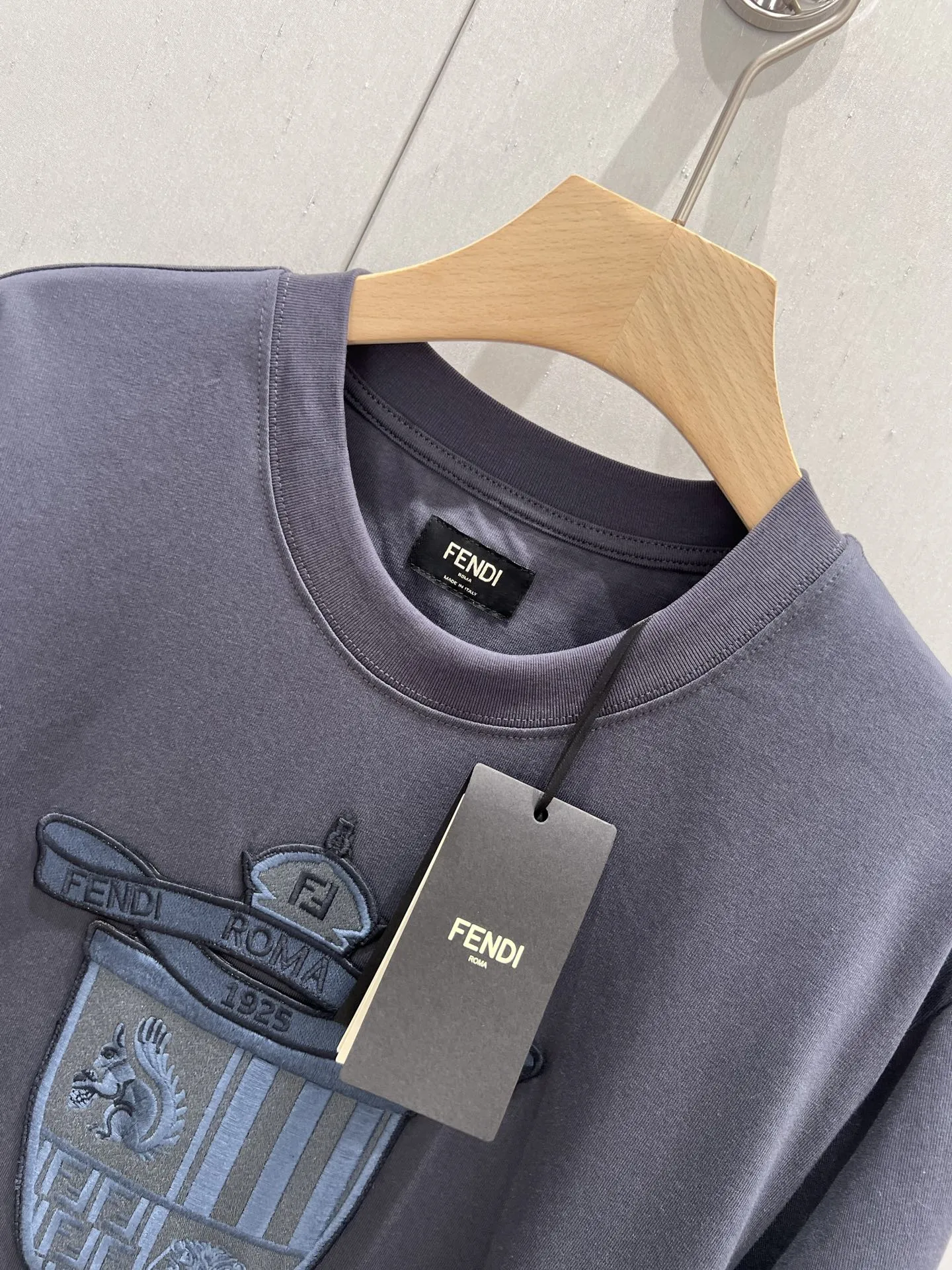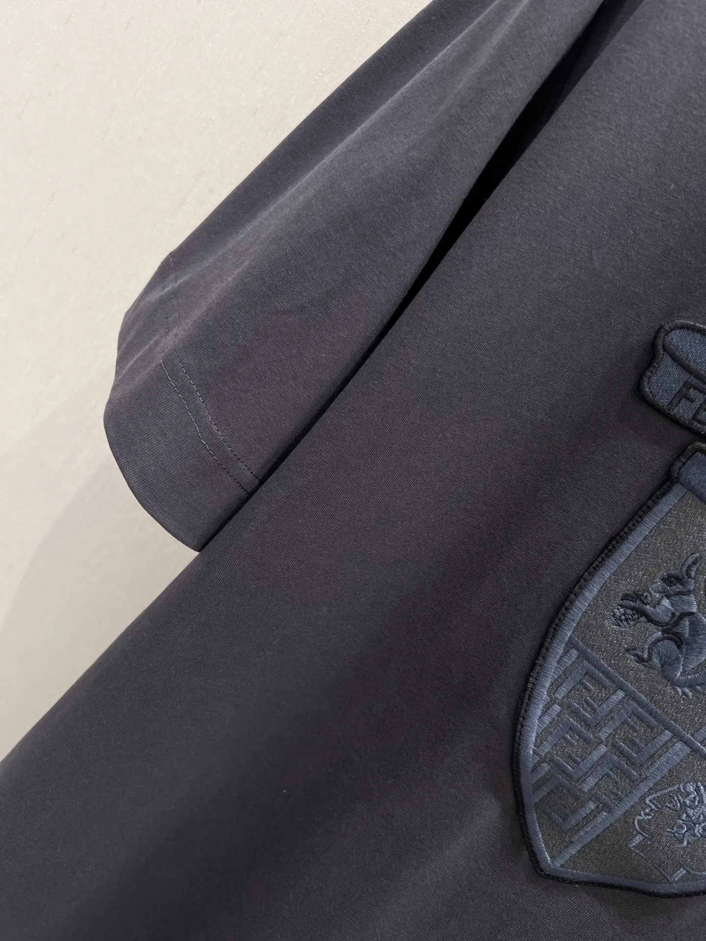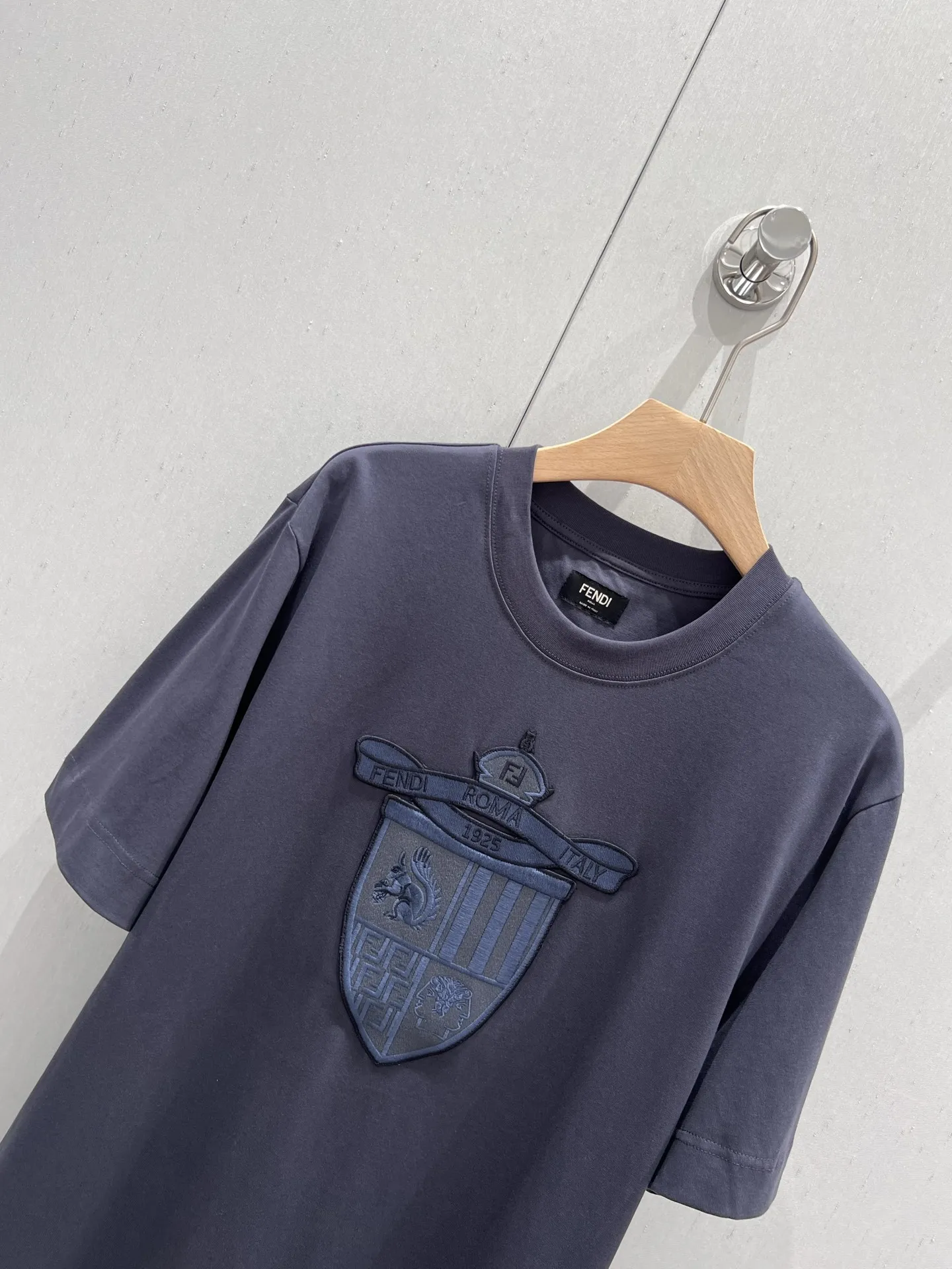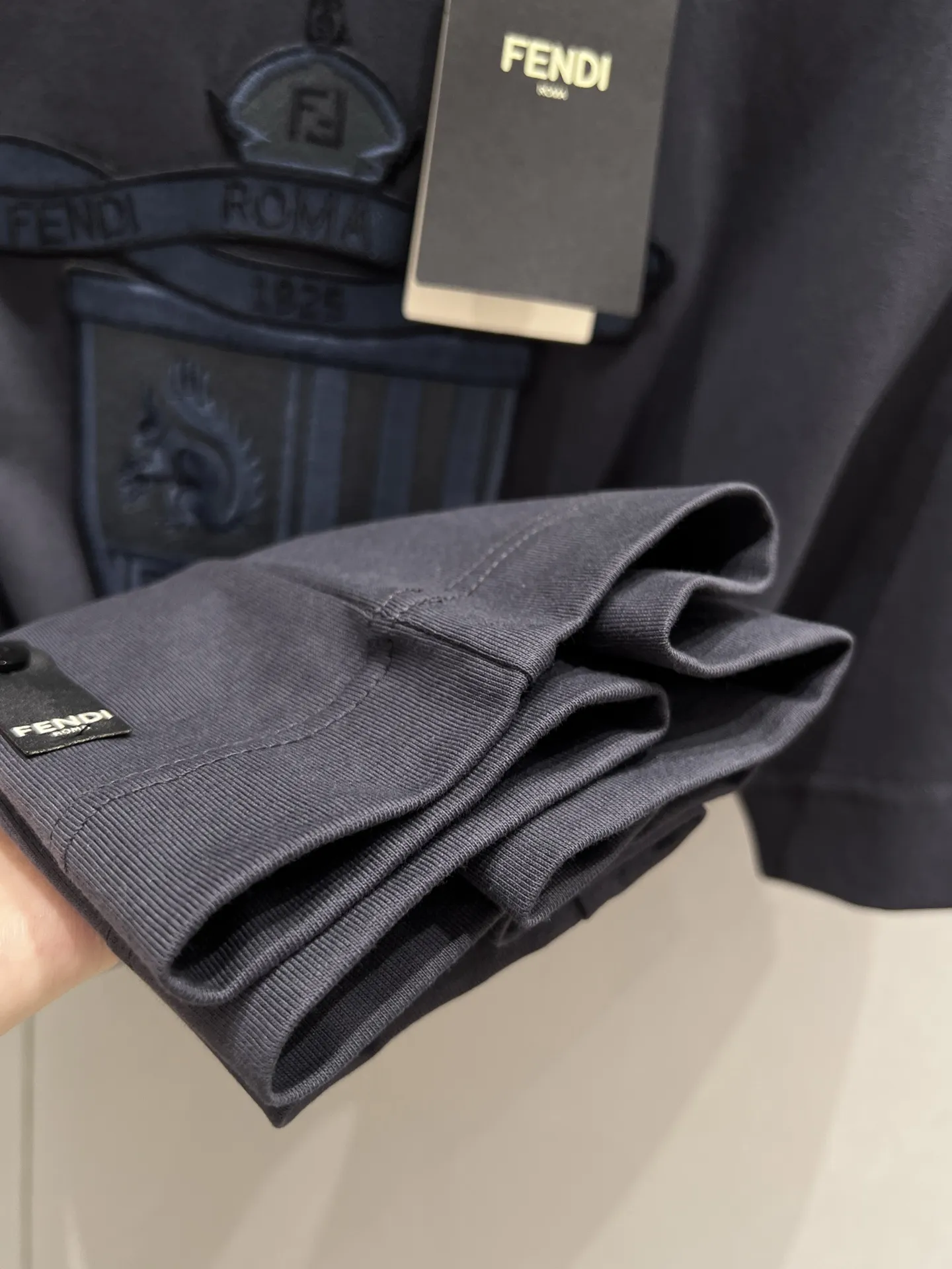 フェンディの2025年春夏新作、ネイビーブルーの半袖Tシャツです。クラシックな小さな丸首デザインで、男女兼用。ゆったりとしたシルエットが体型を選ばず、着心地も抜群です。刺繍バッジがアクセントとなり、街中で注目度抜群。高品質なカスタム生地を使用し、快適さとスタイルを兼ね備えています。おしゃれなデザインの Tシャツ スーパーコピー として、トレンドを押さえた一着です。