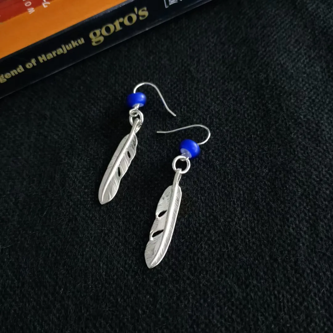 高橋ブランドシルバーフェザーイヤリングブルー