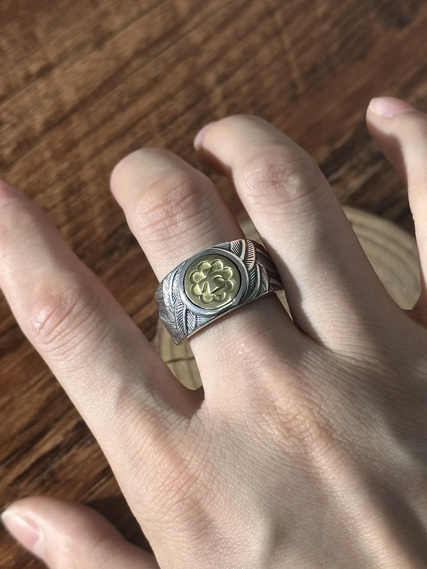 高橋飛鷹デザインの純銀製幅広リングです。羽毛模様が特徴的で、ゴールドのアクセントが高級感を演出します。リングの開口部は調節可能なため、さまざまな指サイズに対応できます。シンプルでありながら個性的なデザインで、日常使いから特別なシーンまで幅広く活躍します。信頼できる商品をお求めの方は、スーパーコピー優良サイトを参考にしてみてください。