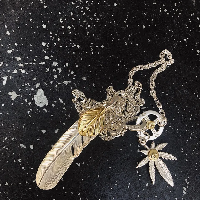 高橋Goro’sの純手工製作、朱一龍が愛用するシルバーネックレスです。フェザーペンダントとリーフチャームが特徴で、冬のトレンドを体現します。限定品のため、手に入れるのが難しい人気アイテムです。市場には偽物も出回っているため、購入の際は正規品を見極めることが重要です。冬のファッションに合わせて、友達の中で最もおしゃれな人になりましょう。