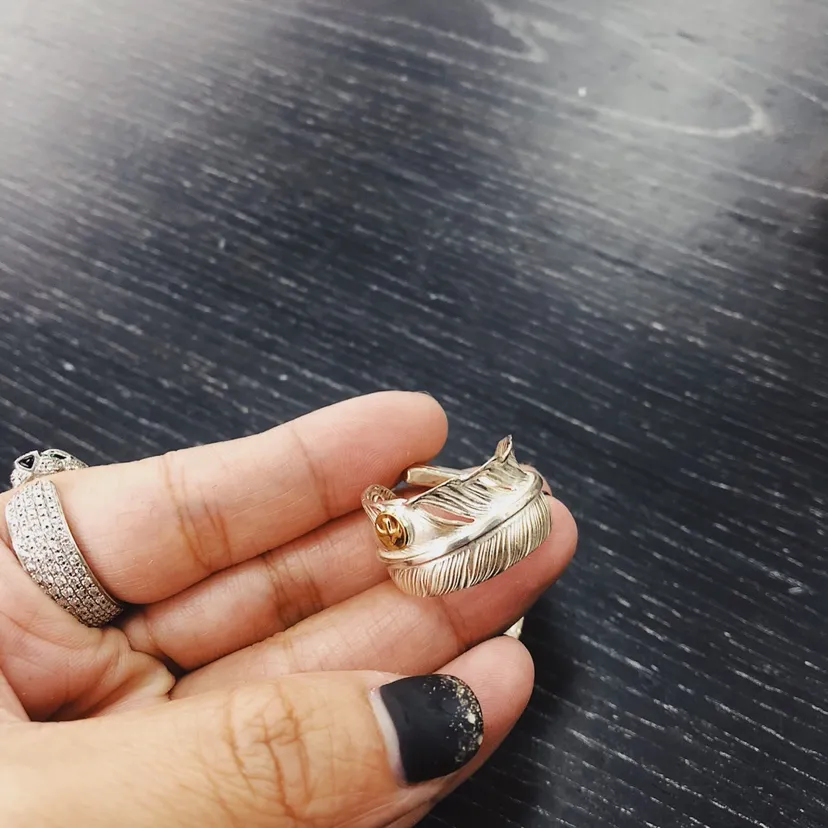 高橋Goro’sシルバー羽根オープンリングは、925純銀を使用した手作りの逸品です。飛鳥印台と羽毛を組み合わせたデザインで、丁寧に打磨と彫刻が施されています。市場に出回る機械製品とは一線を画す、専門店品質を再現しました。上品な輝きと手作りの温もりを感じられる一品です。特別なアイテムをお探しの方には、スーパーコピー優良サイトでの関連商品もおすすめです。