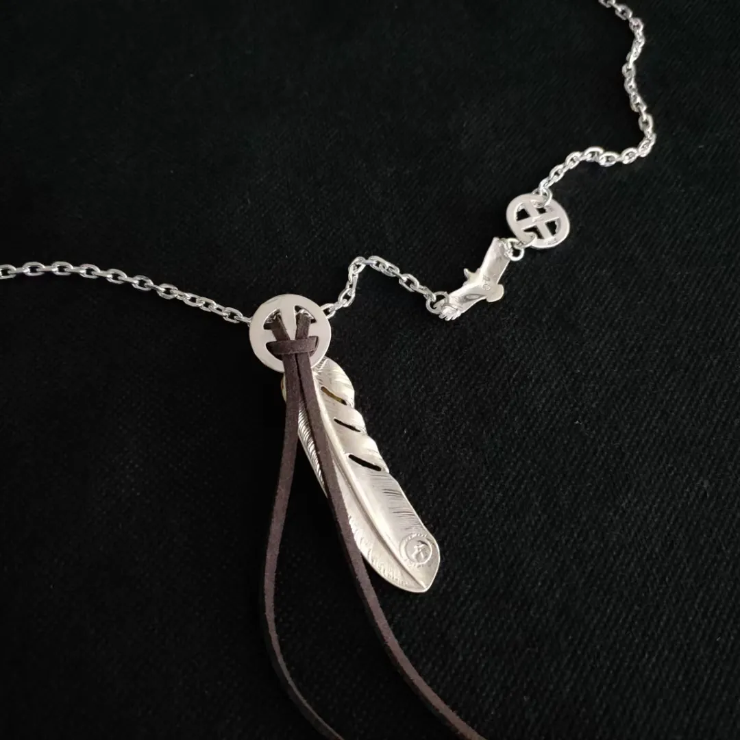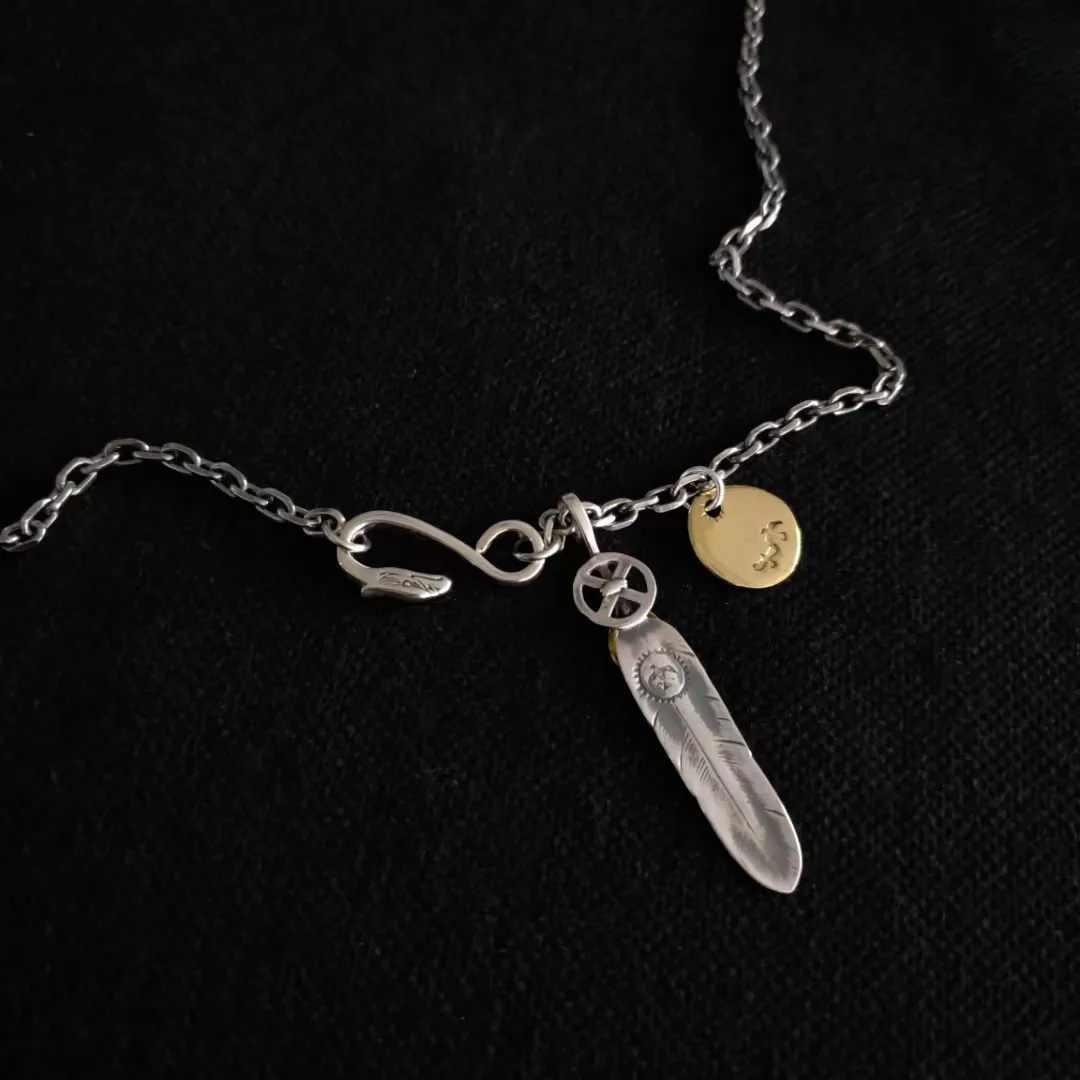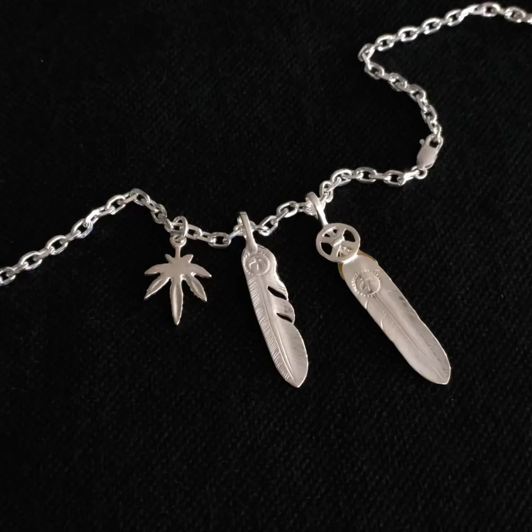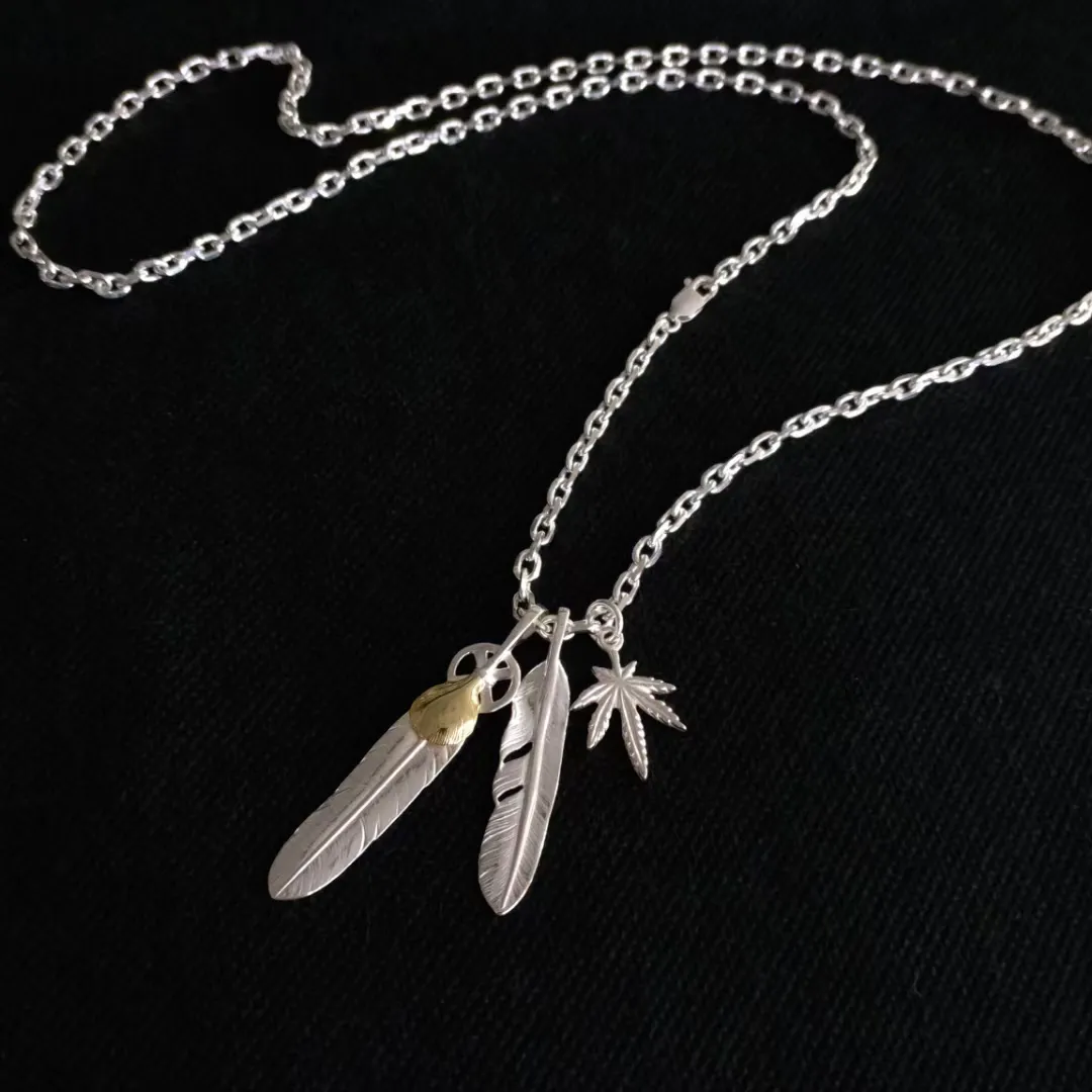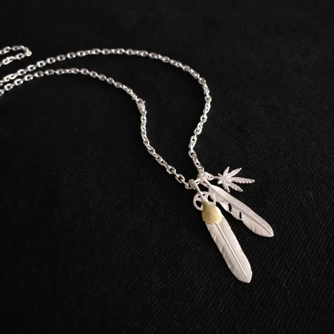 高橋商店のシルバー羽根ネックレスは、シルバーとゴールドの組み合わせが特徴的なデザインです。手作りの風合いが感じられるこのネックレスは、シンプルでありながらも高級感があり、普段使いから特別なシーンまで幅広く活躍します。オリジナルのブランドタグが付いており、男女兼用でお使いいただけます。市場には偽物も出回っているため、信頼できる店舗での購入をおすすめします。