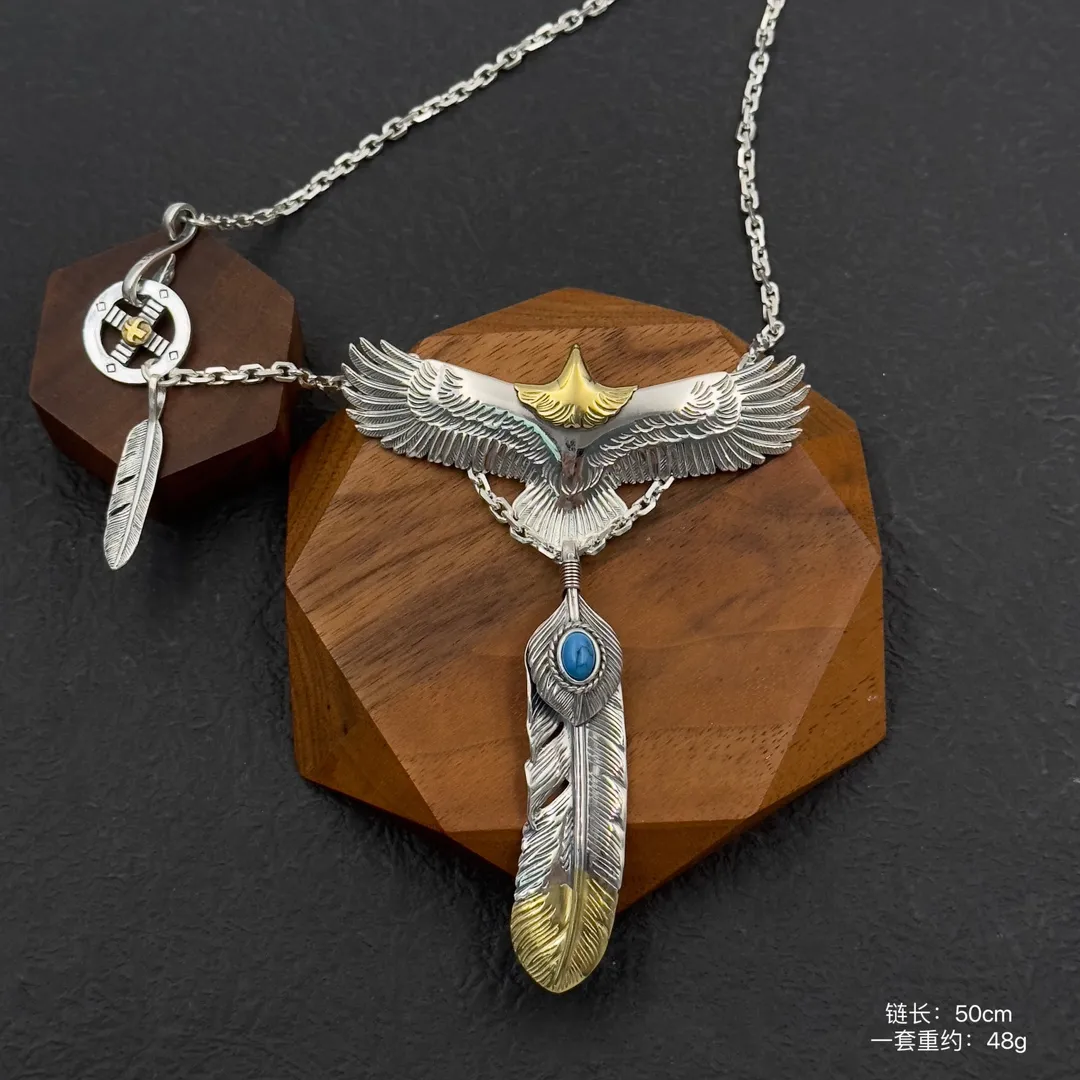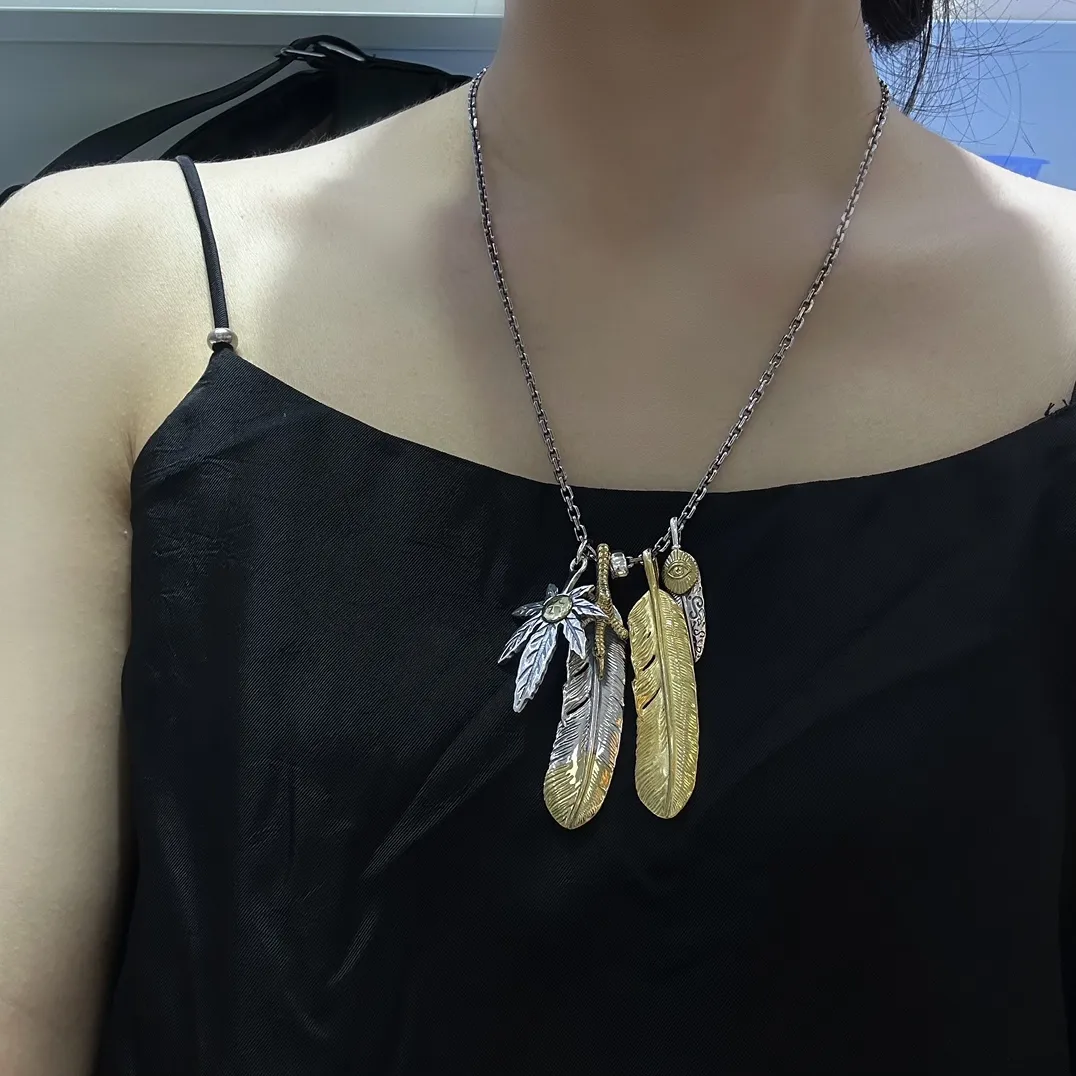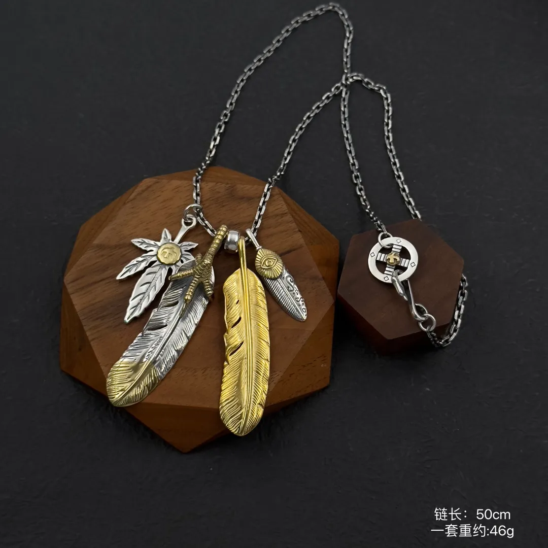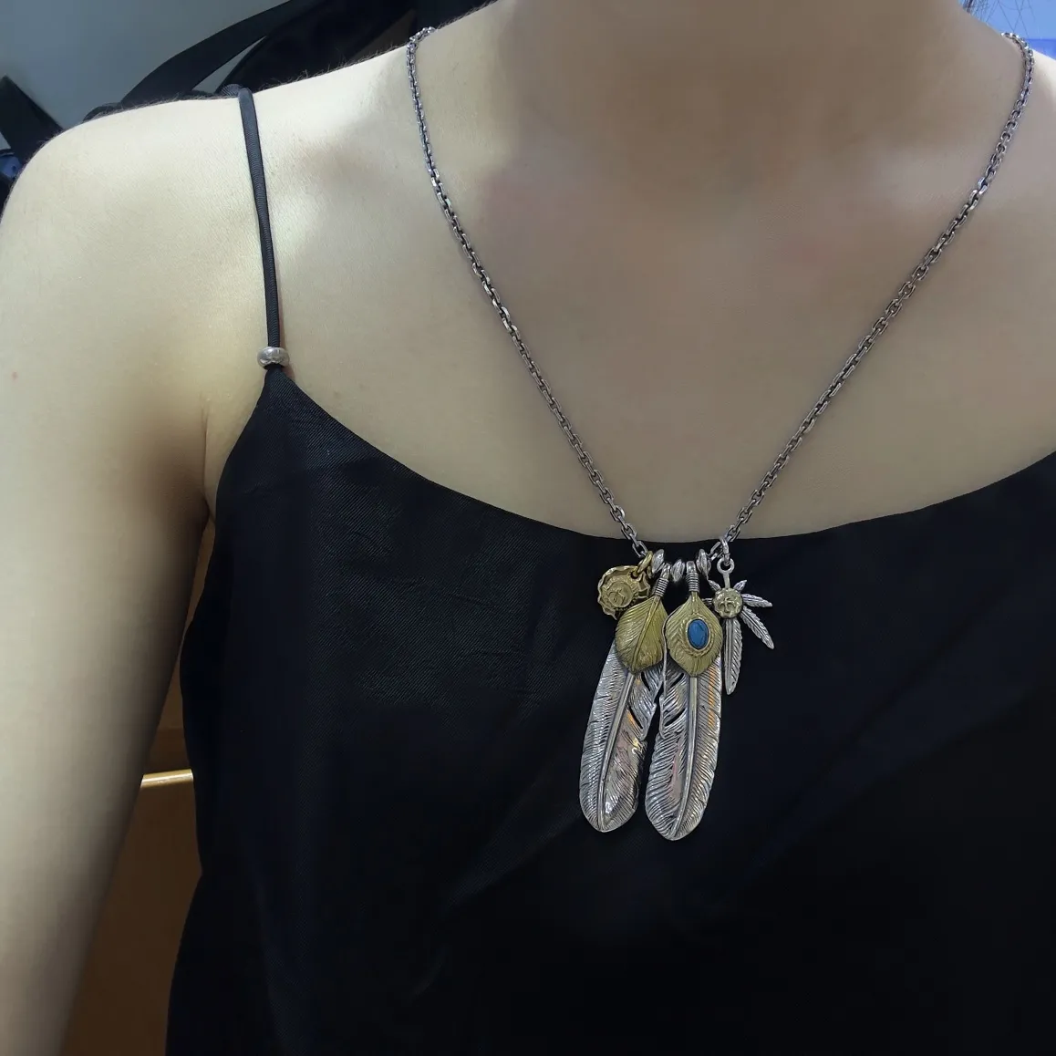 高橋シリーズの純銀ネックレスシルバーフェザーは、精工細作で復古潮流を体現しています。チェーン長さは60cm、重量は48gで、ターコイズとゴールドのアクセントが特徴的です。職人技が光るハンドメイドの逸品で、特別な存在感を放ちます。市場には偽物も出回っているため、購入の際は正規品をお選びください。