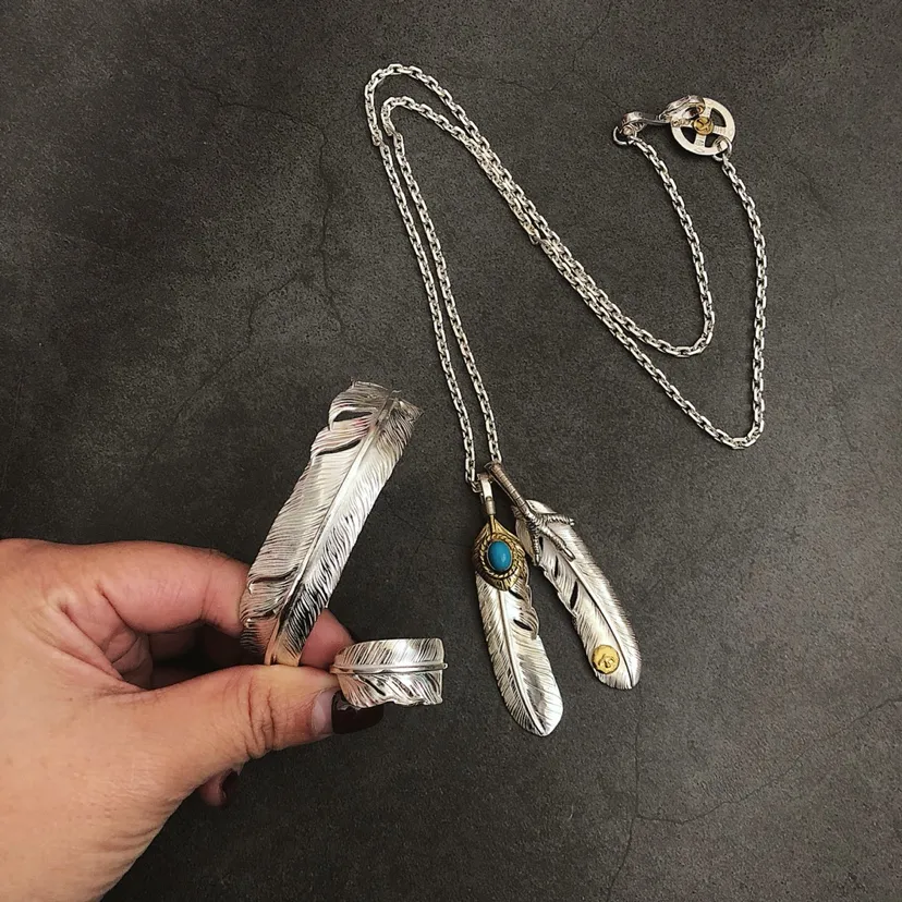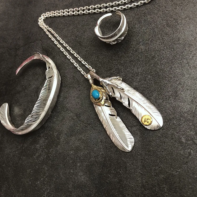 高橋吾郎Goro’sのシルバー羽根ネックレスは、純銀で作られたオリジナルデザインの復刻版です。ターコイズストーンとピースマークチャームが特徴的で、シンプルながらも存在感のあるデザインです。ネックレス、ブレスレット、リングのセットで、ファッションのアクセントに最適です。このような高品質なアイテムをお探しの方には、スーパーコピー優良サイトでの購入もおすすめです。