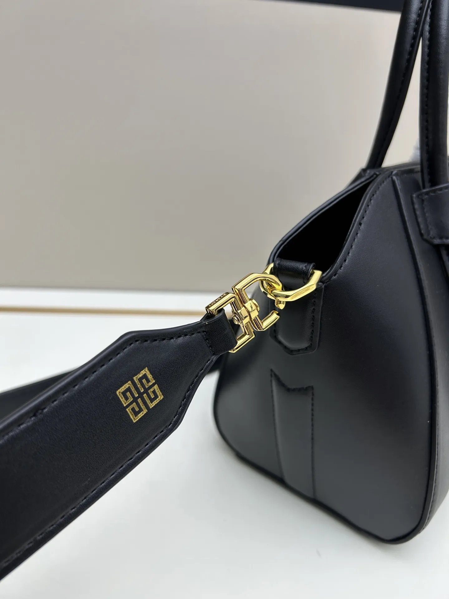 GIVENCHYの新作ハンドバッグ、MINI ANTIGONA LOCK BAGです。フランス製の高品質なBOXレザーを使用し、磁気式の閉じ方が特徴的。フロントには取り外し可能な4Gロックが付いており、背面には4Gのエンボスロゴが施されています。調節可能なレザーストラップで肩掛けも可能。内側にはフラットポケットとジッパーポケットがあり、収納力も抜群です。シルバーのメタルパーツとキャンバスライニングがアクセントになっています。このような高品質なデザインをお探しの方には、スーパーコピーバッグもおすすめです。