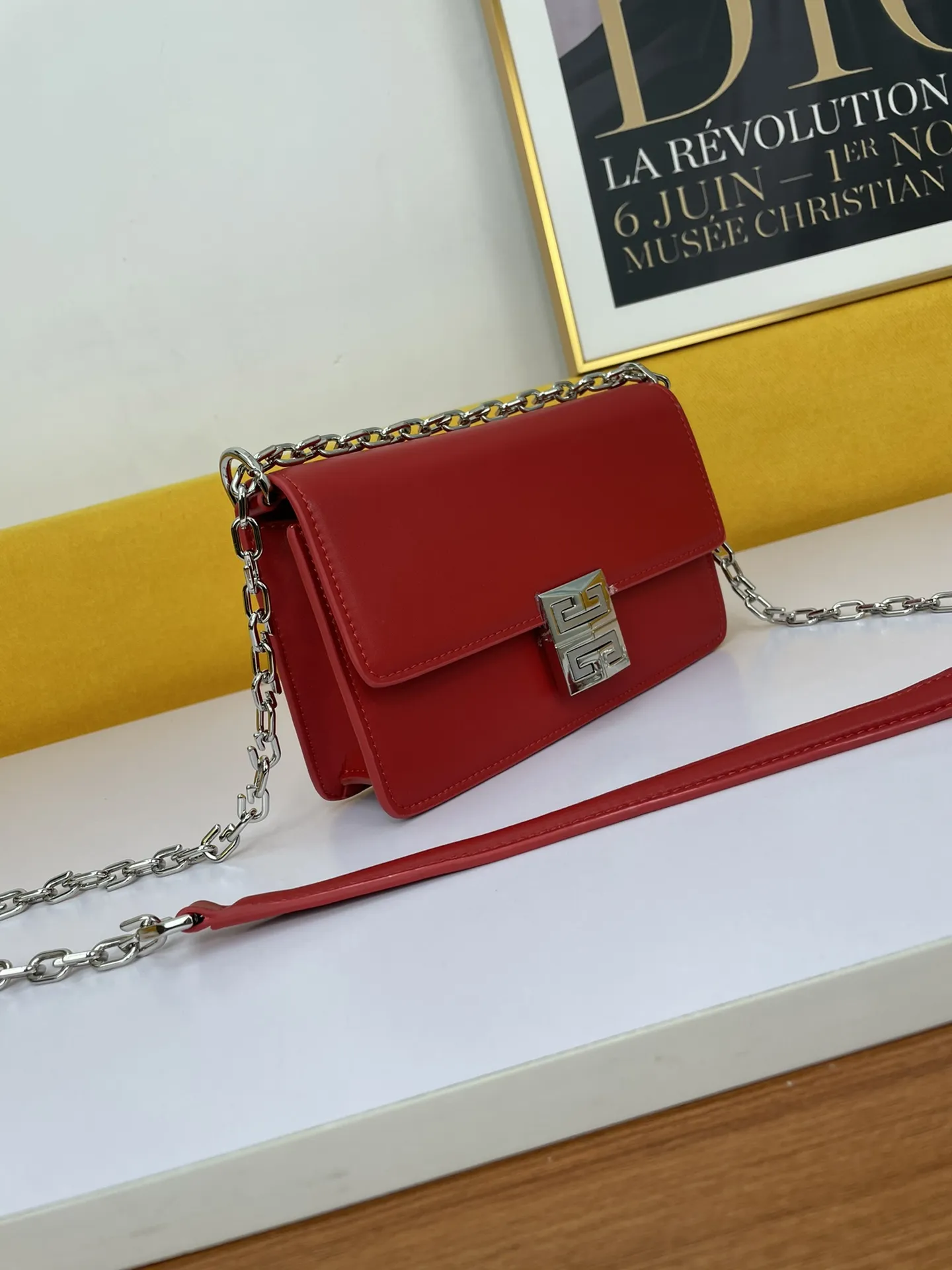 GIVENCHYの人気モデルで、スタイリッシュなレッドカラーの小型ショルダーバッグです。4G金属磁力扣のデザインが特徴的で、翻盖式の開閉が可能です。肩掛けストラップは調節可能で取り外しもでき、メタルチェーンとレザーサポートが付いています。サイズは20.5*12.5*4.5 cmで、コンパクトながらも機能的なデザインが魅力です。このような高品質なアイテムをお探しの方には、N級品もおすすめです。