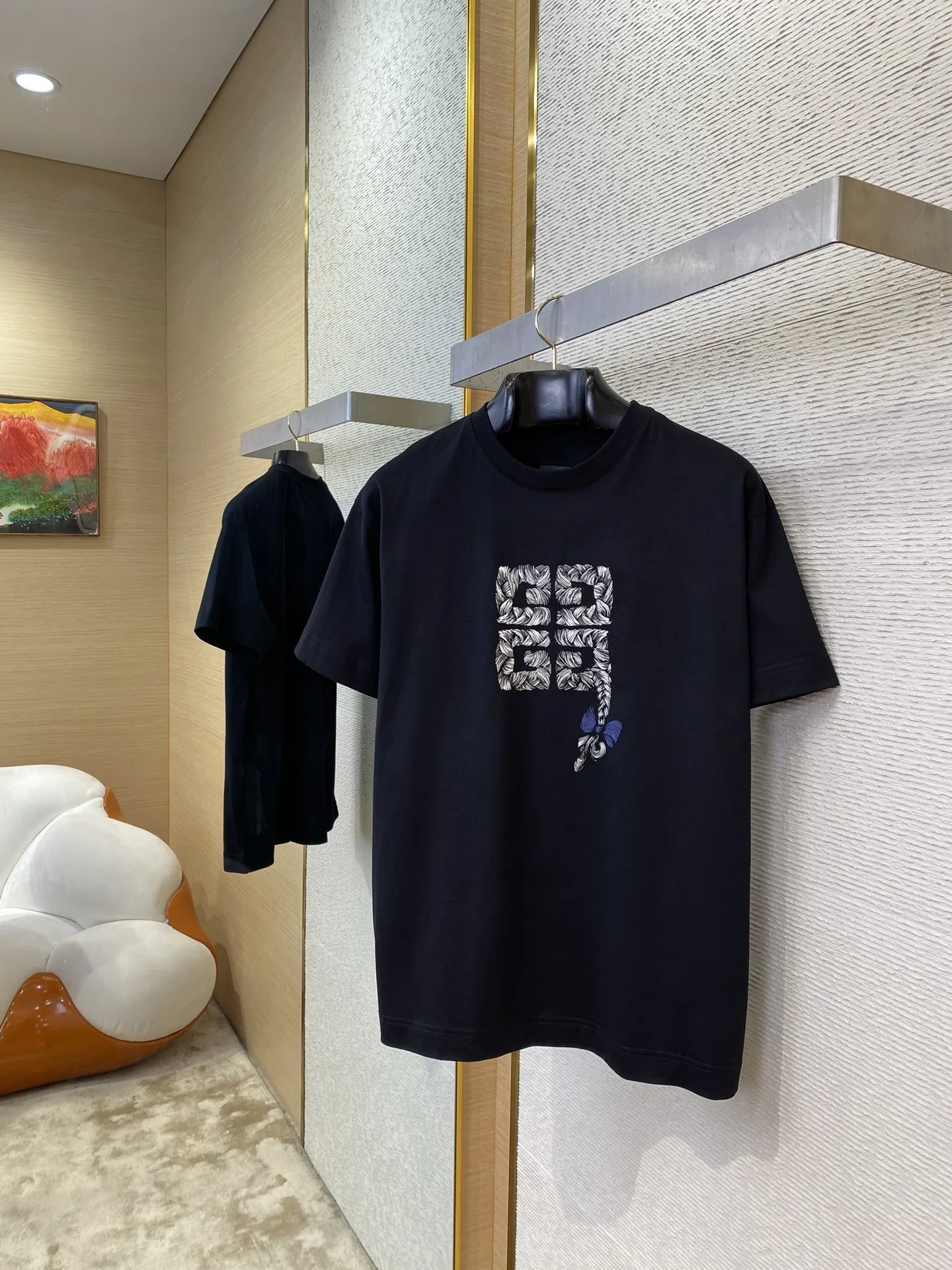 Givenchy ジバンシィ黒アルファベット刺繍半袖Tシャツ