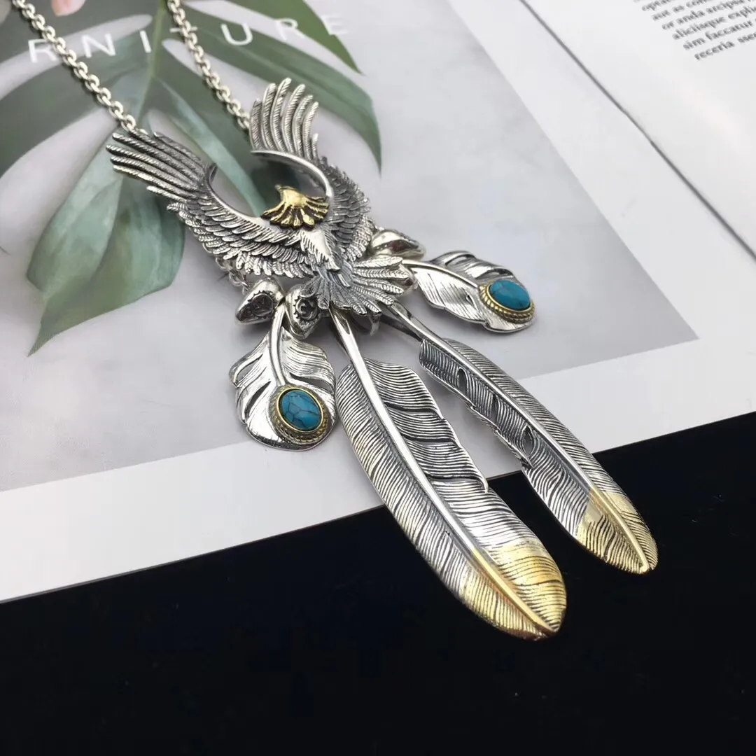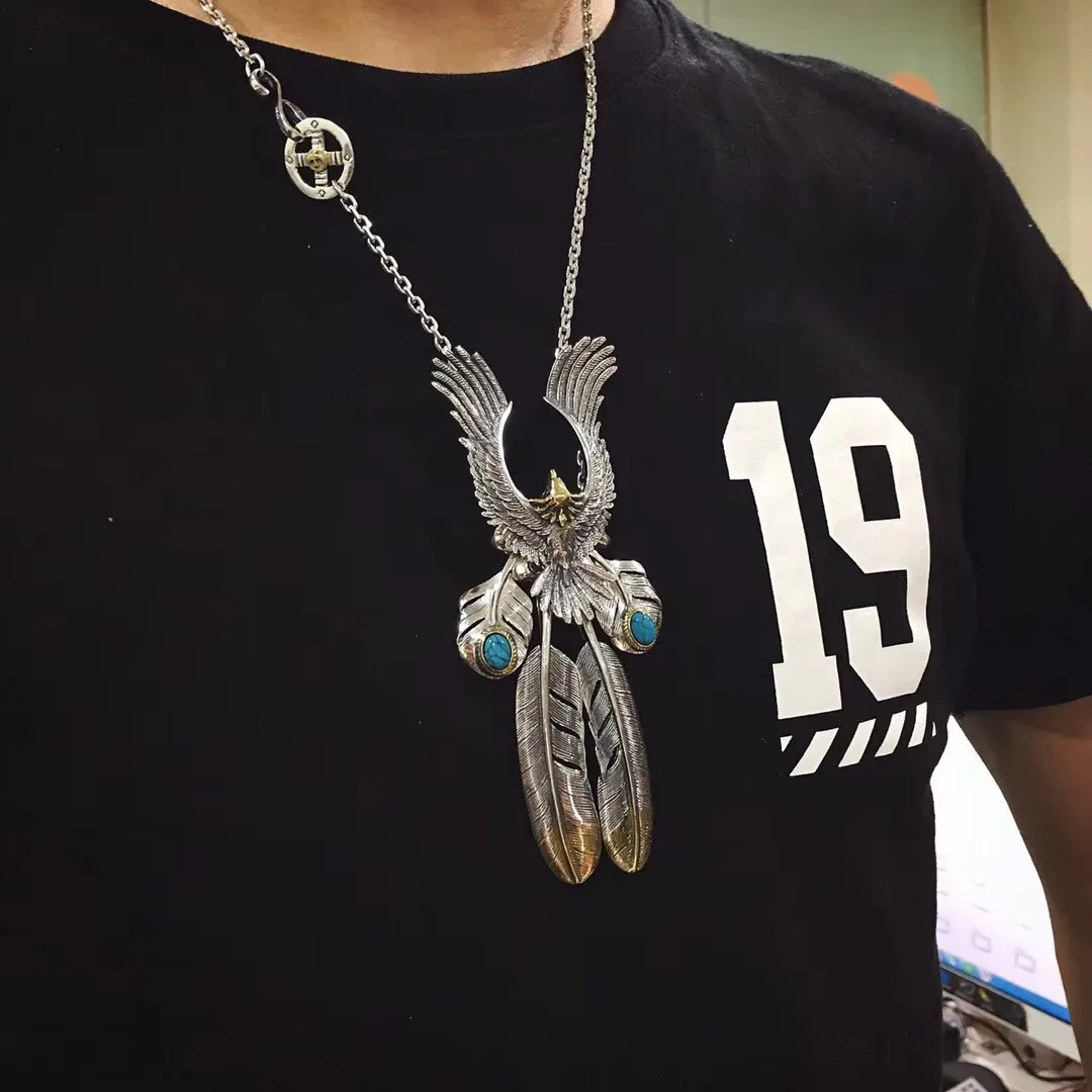 Goro’sの高橋飛鷲羽毛セットチェーンは、シルバー素材で作られた高級感あふれるアクセサリーです。デザインにはターコイズとゴールドのアクセントが施され、羽毛のディテールが特徴的です。ハンドメイドならではの細部へのこだわりが感じられ、東京のトレンドを体現しています。市場には偽物も出回っているため、購入時には正規品を見極めることが重要です。