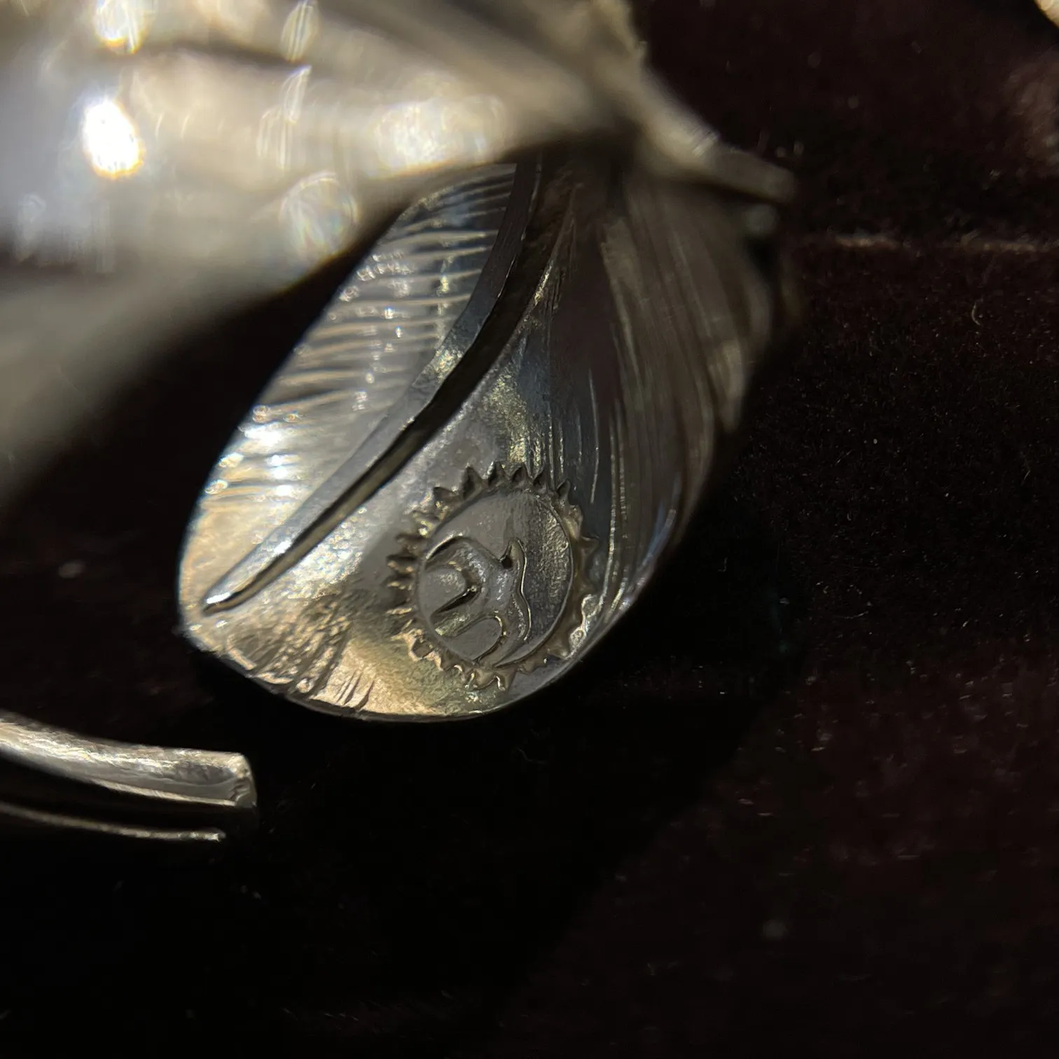 GORO’S 高橋吾郎による点金羽毛リングです。純銀を使用し、羽根の美しいデザインが特徴的です。飛鳥点金が施され、手工制作ならではの細部までこだわった仕上がりです。均码サイズで、どなたでもお楽しみいただけます。東京の職人技が光る逸品です。市場には偽物も出回っているため、信頼できる店舗での購入をおすすめします。