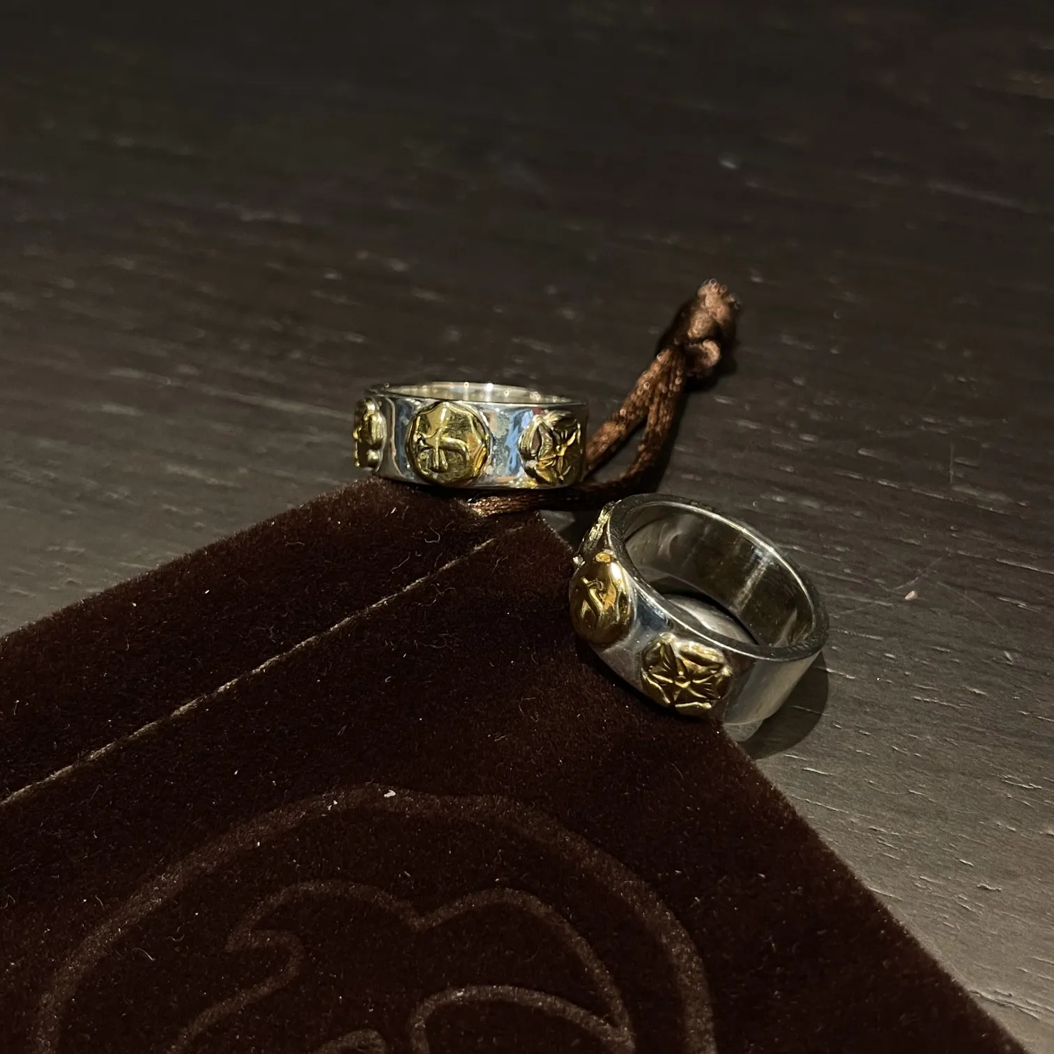 GORO’S 高橋吾郎による平打三花飛鳥リングは、純銀製で手作りされた逸品です。シルバーとゴールドの組み合わせが特徴的で、蔷薇花模様と飛鳥デザインが施されています。サイズは13から25まで幅広く対応しており、特別な存在感を放ちます。市場には偽物も出回っているため、購入の際は正規品を見極めることが重要です。