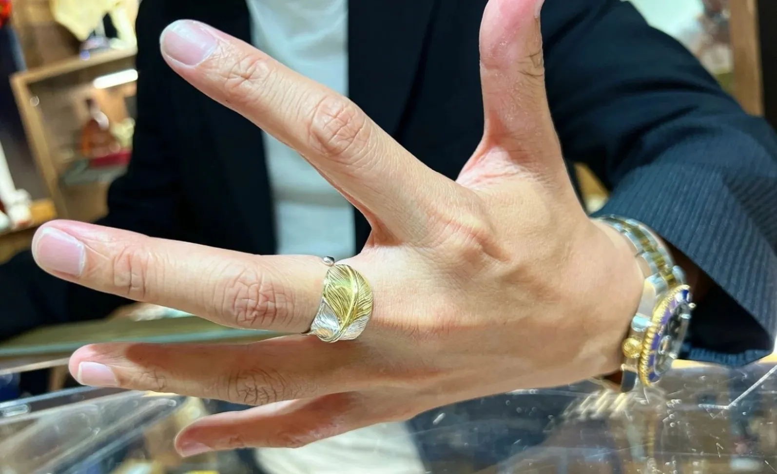 GORO’S 高橋吾郎の先金羽毛リングは、純銀を使用した手工制作の逸品です。羽根のデザインが特徴的で、シンプルながらも存在感のあるアクセサリーです。ファッションに合わせて、個性的なスタイルを演出できます。市場には多くの偽物が出回っているため、購入の際は正規品を見極めることが重要です。
