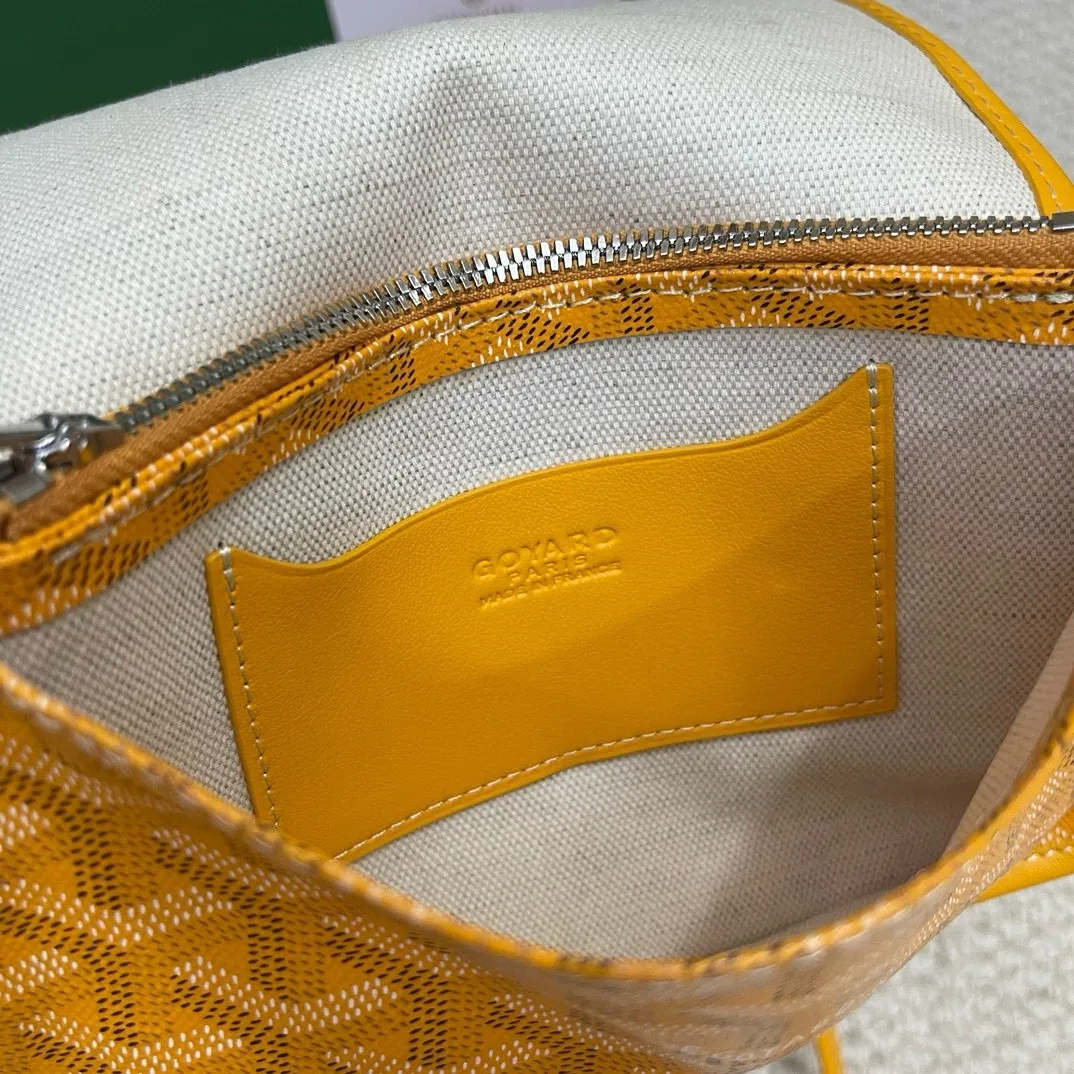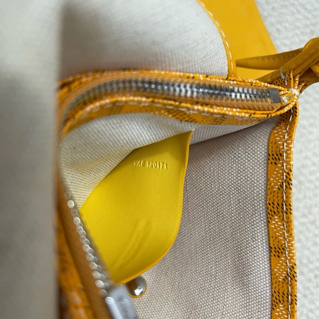 Goyard(ゴヤール)のイエロー三層ポーチバッグは、見た目はシンプルですが、実はとても収納力があります。3つの小口袋と背面の挿し袋、さらに2つの口袋にはカードスロットが付いています。軽量で持ち運びに便利なため、街中での使用に最適です。サイズは底長20cm、高さ14cmで、日常使いにぴったりです。このような高品質なデザインは、まさにN級品とも言える仕上がりです。