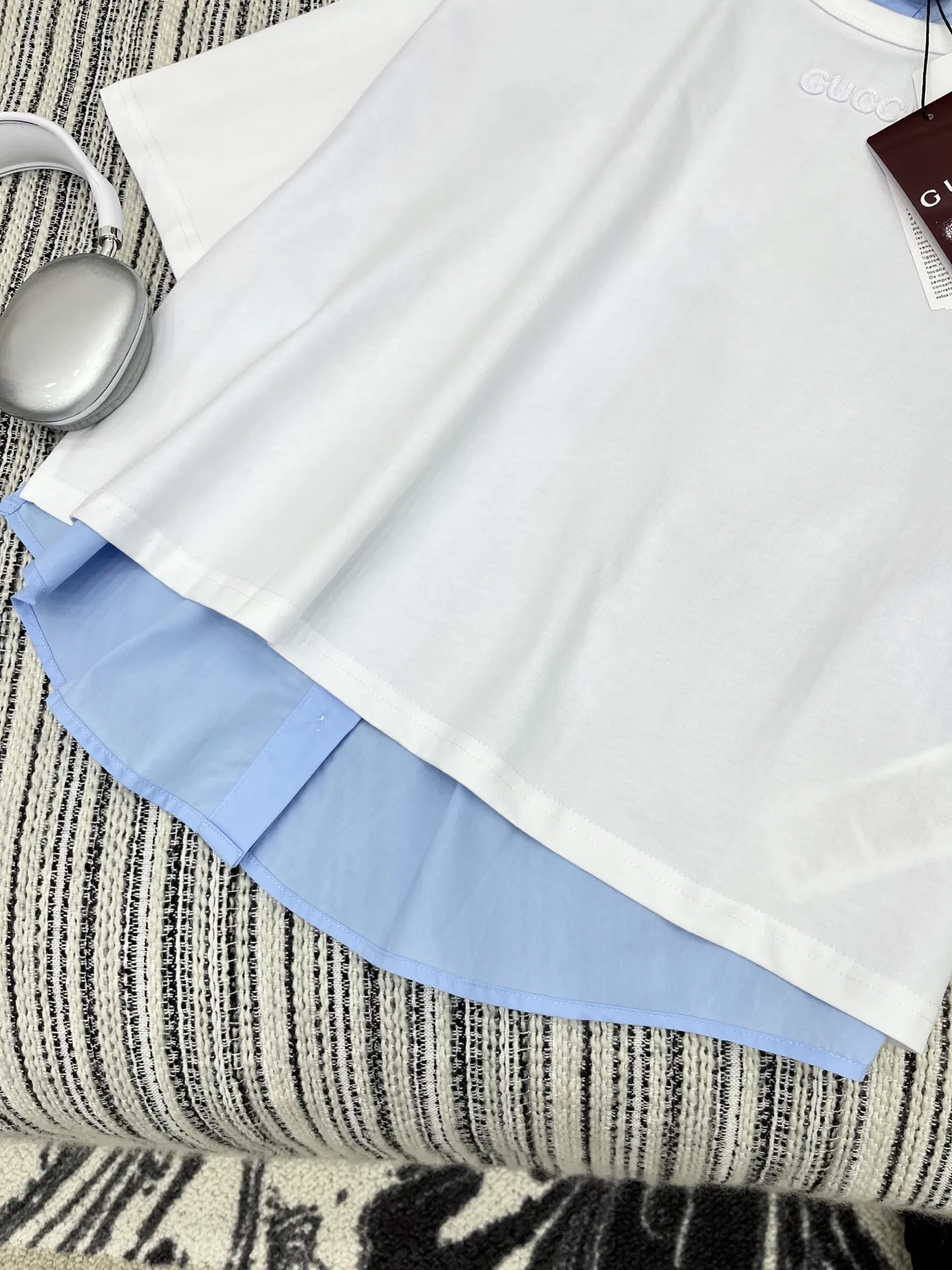 Gucciの2025年新作、白とブルーのカラーブロックが特徴的な刺繍半袖Tシャツです。オリジナル品質で、全棉素材を使用し、通気性と快適さを兼ね備えています。後ろボタン付きのデザインで、スリム見えするシルエットが魅力。高級感あふれるブランドテイストを演出する一枚で、Tシャツ スーパーコピーとしても注目されています。