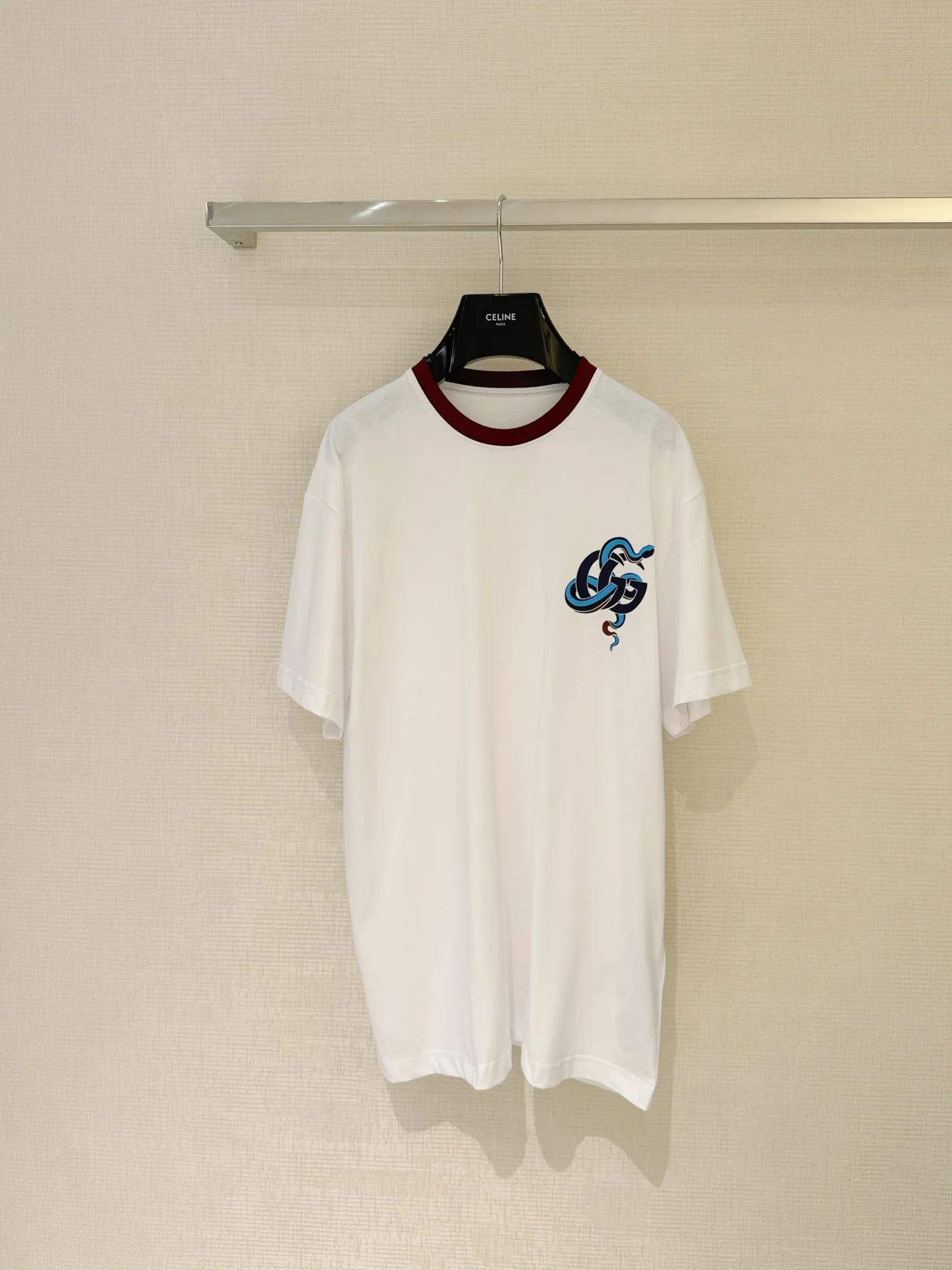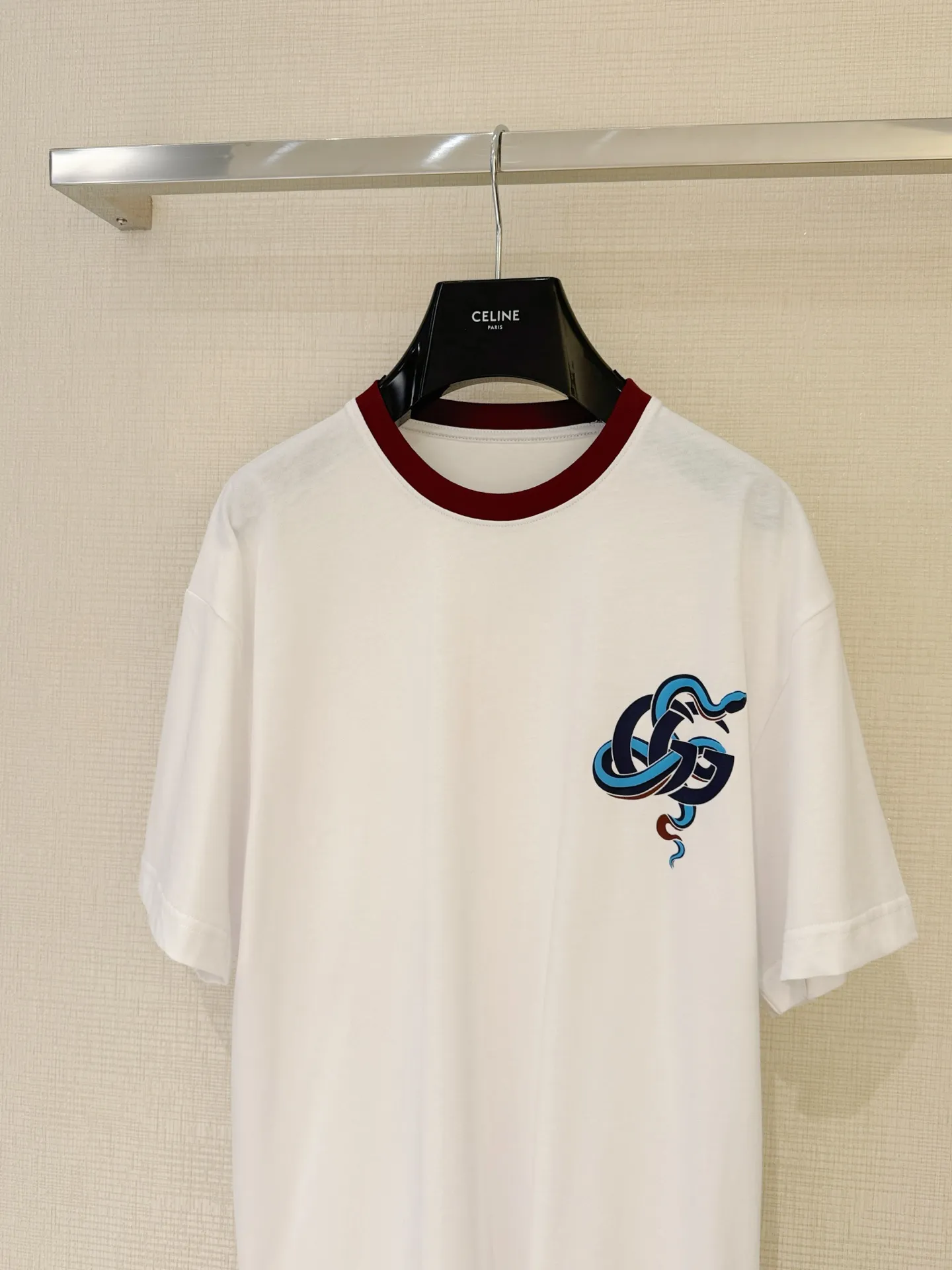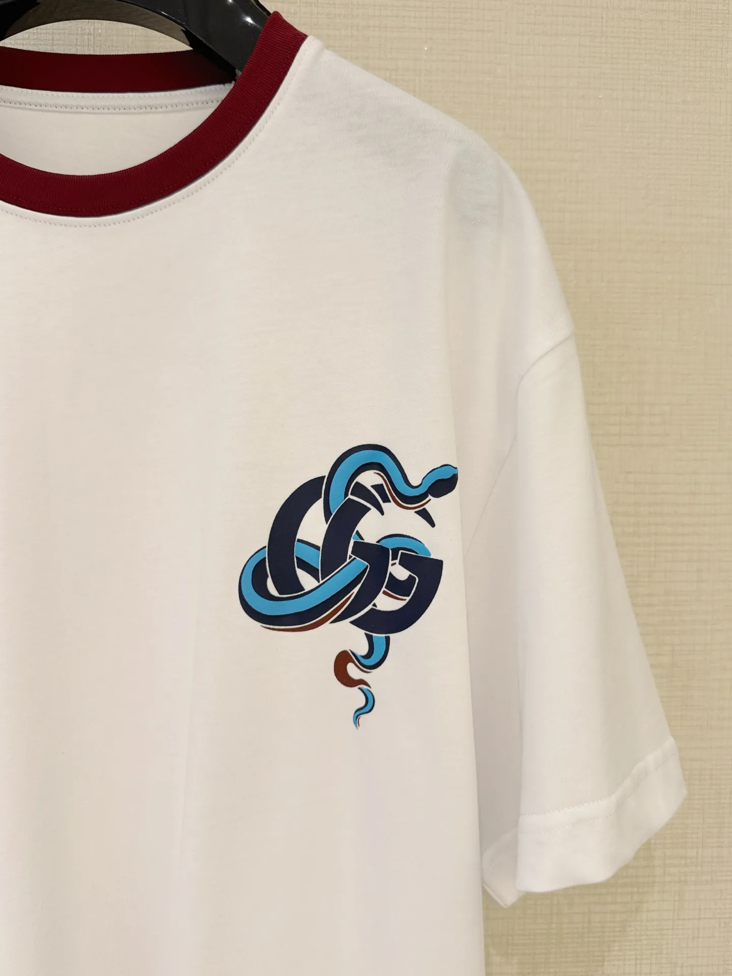 Gucc*25の早春新作、蛇年春節限定の半袖Tシャツです。クラシックなカラーブロックとリブ編みのネックラインが特徴で、胸元には鮮やかな蛇のモチーフがプリントされています。高級感のある素材を使用し、フィット感のあるシルエットで、シンプルながらも高品質なデザインが魅力です。このようなスタイリッシュな Tシャツ スーパー コピー は、特別なシーンにもぴったりです。
