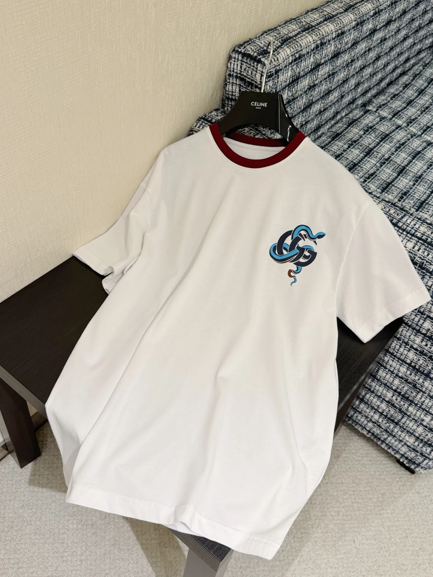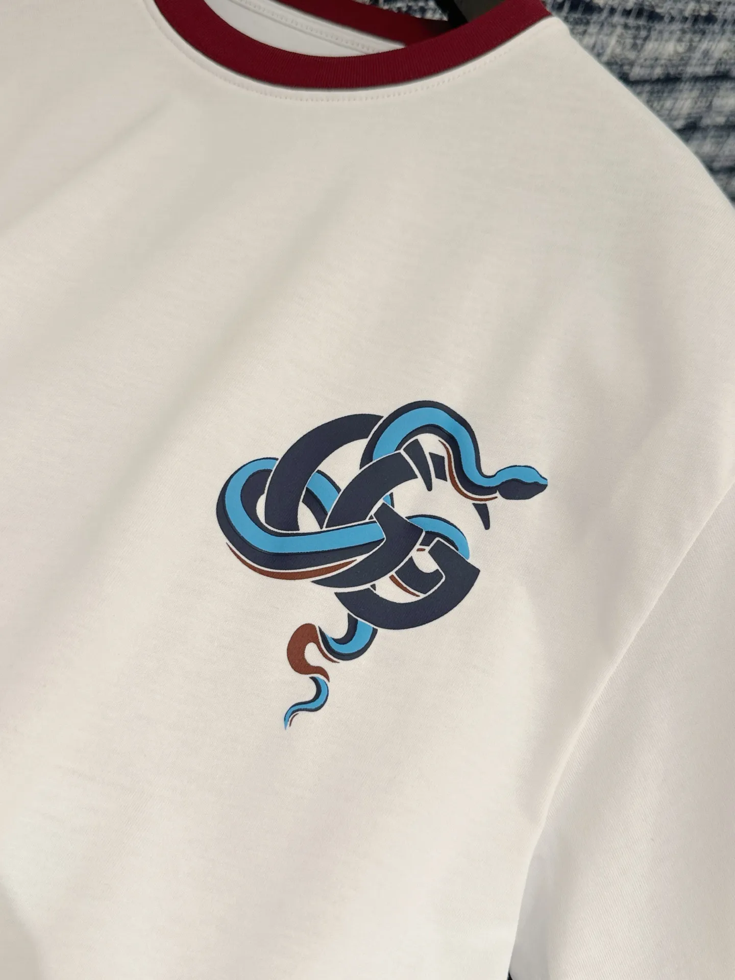 胸元にプリントされた蛇のモチーフ