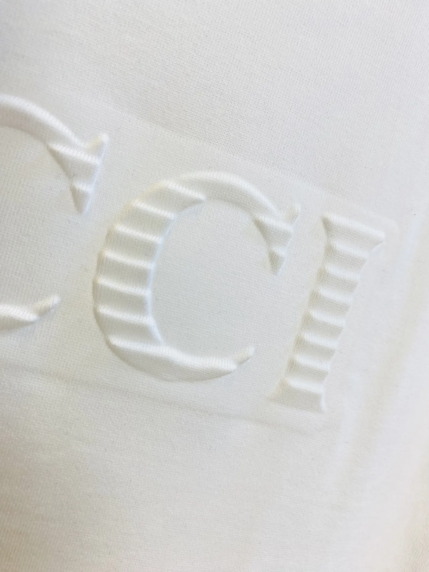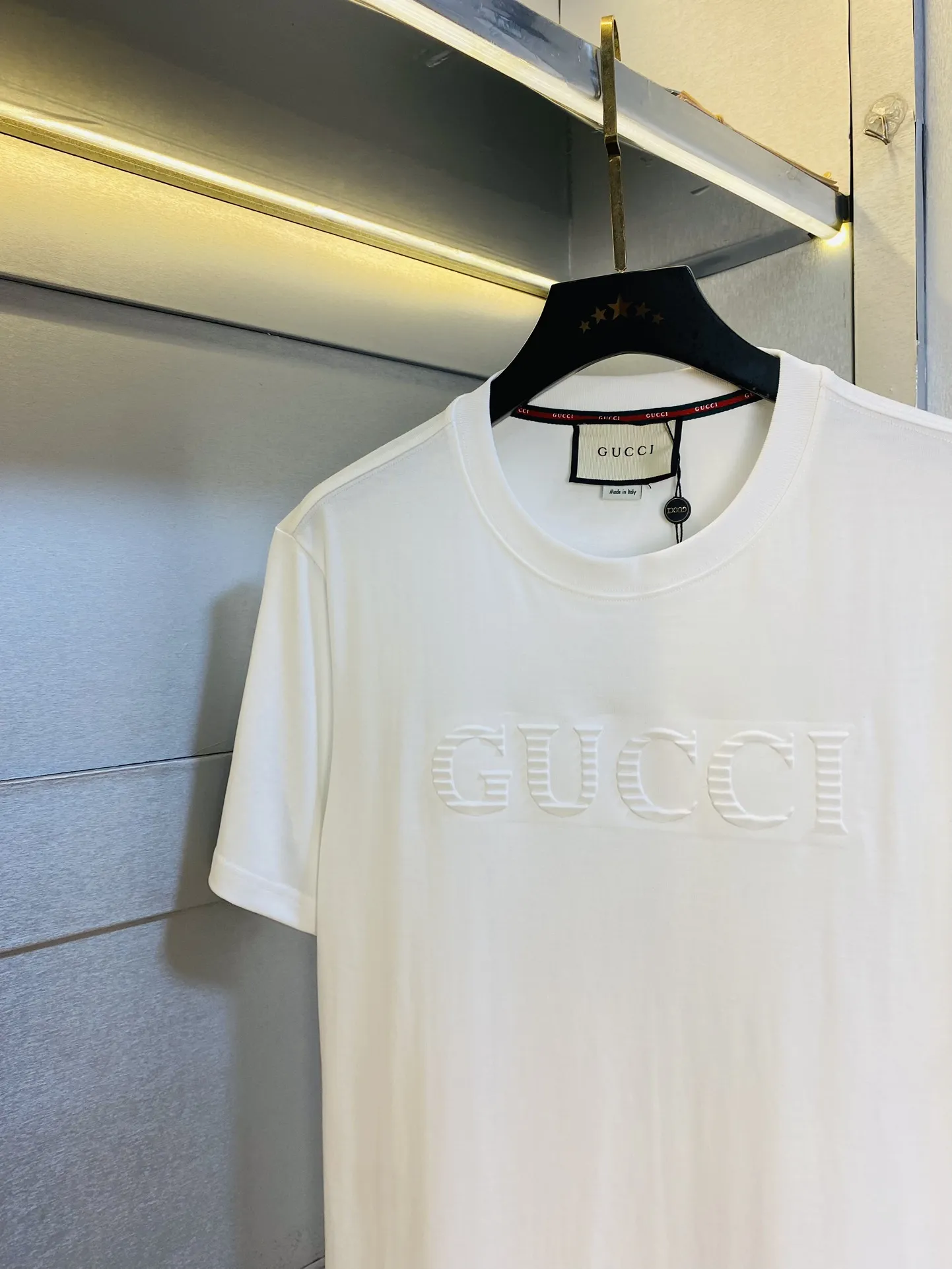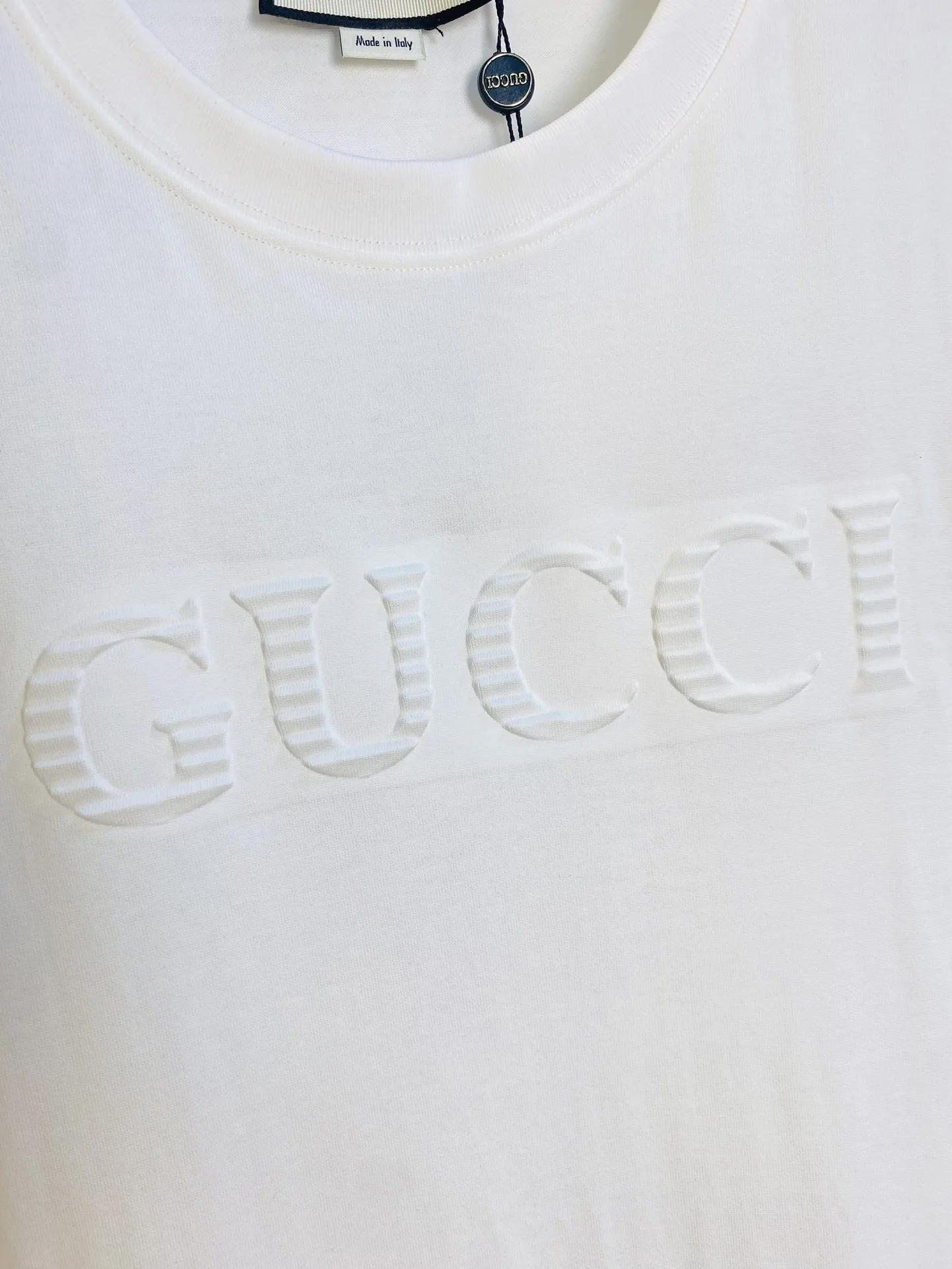 Gucciの白い暗纹デザインの短袖Tシャツです。オリジナル品質で、2025年最新モデルを採用。高級な純棉素材を使用し、オリジナルの洗濯ラベルが付いています。3つのラベルが揃っており、ディテールと仕上げが完璧です。オリジナルのハードウェアと高級カスタム補助素材を使用し、オリジナルの工場ラベルも付いています。上質な着心地をお楽しみいただける、スーパーコピー Tシャツです。