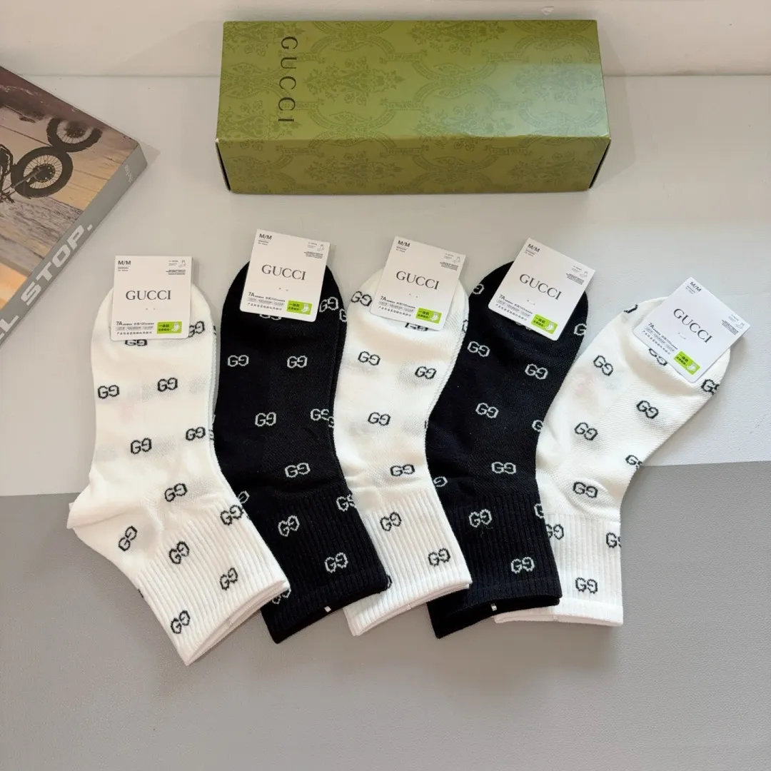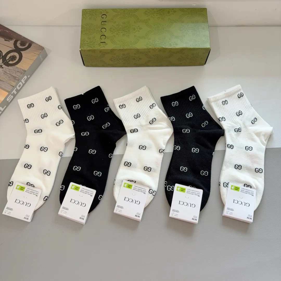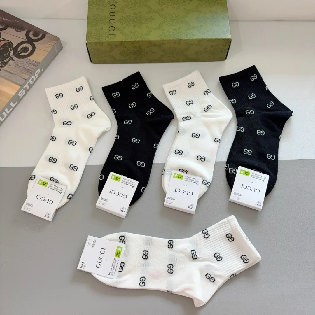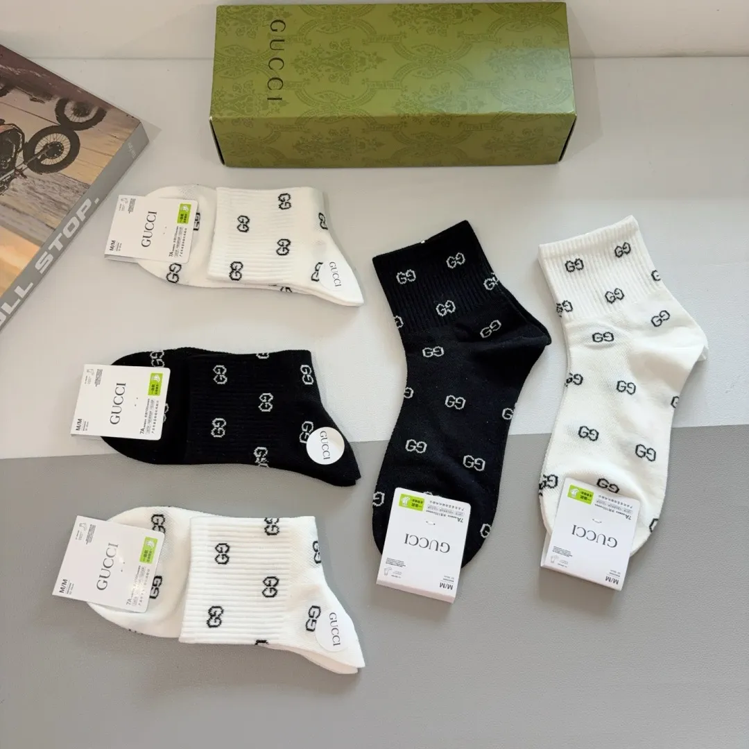 GUCCI 2023新款中筒袜子 黒白 5双入り