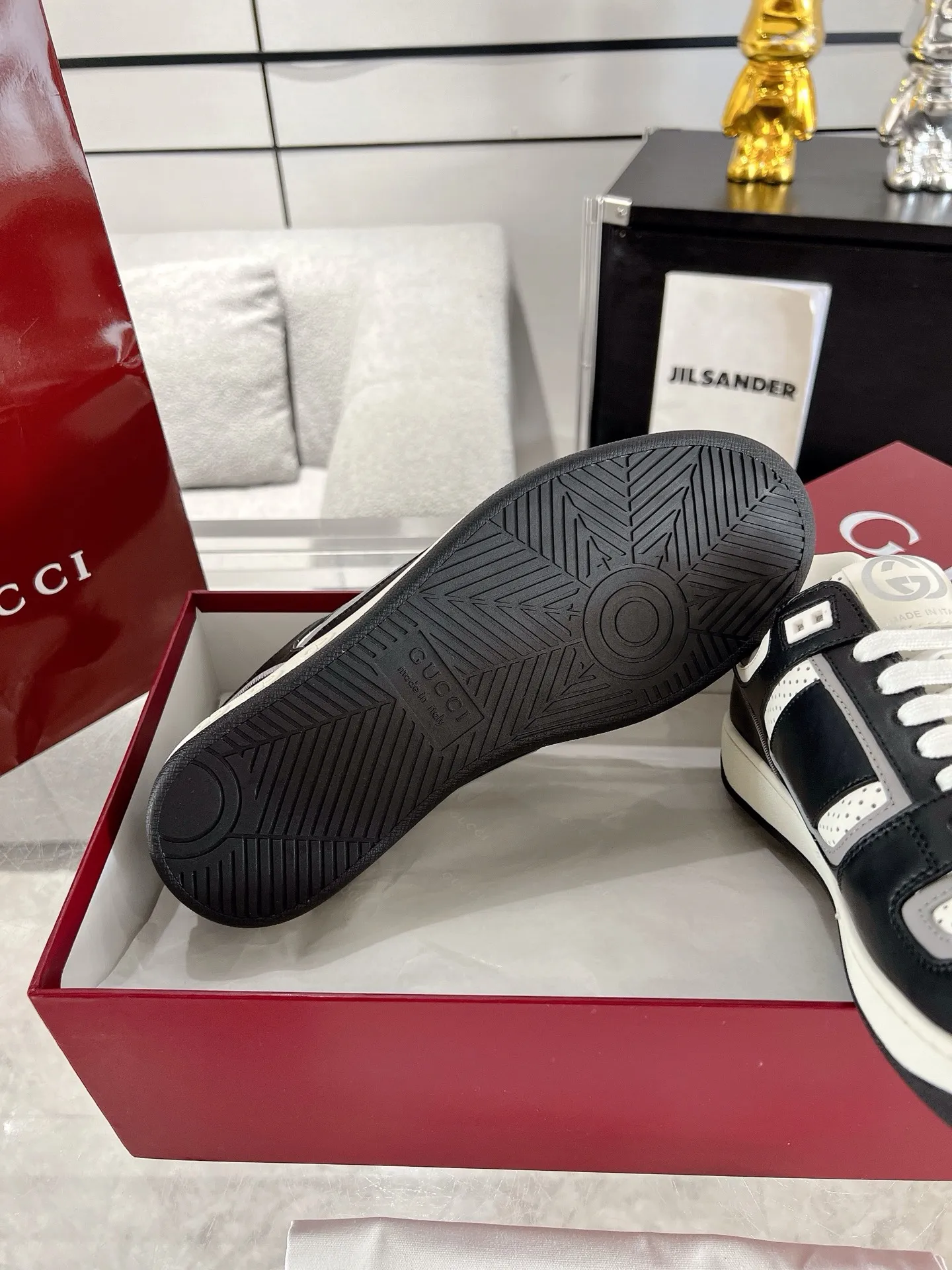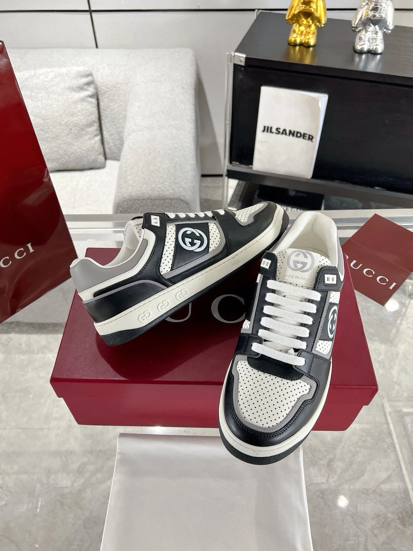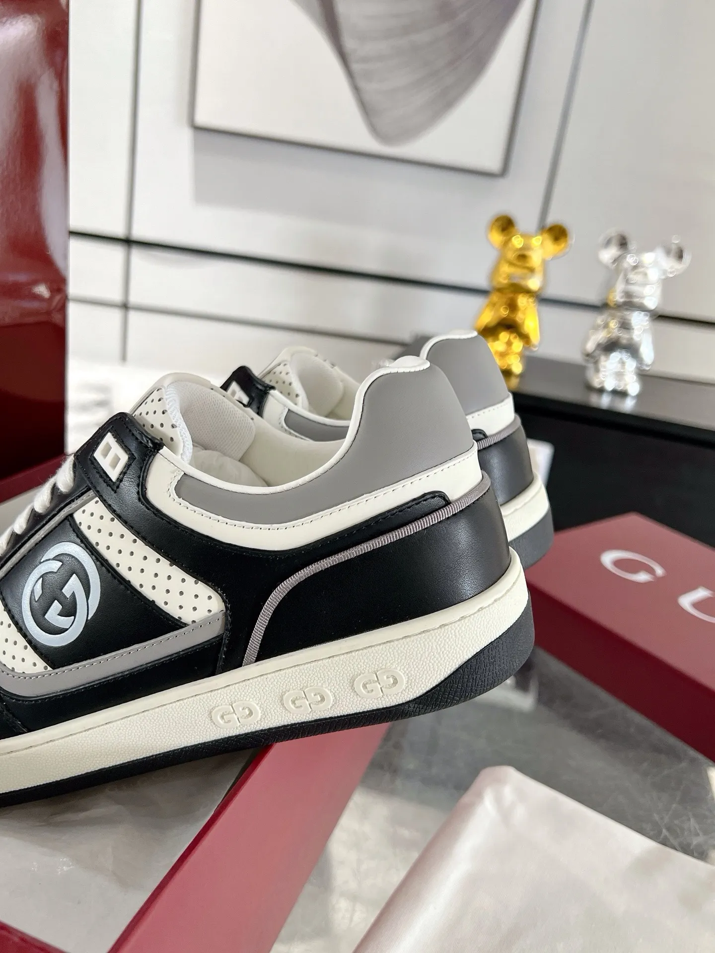 Gucciの最新カップルスニーカーは、20世紀70年代のクラシックなスポーツシューズをインスピレーションにしています。防守動作に由来する名前を持つこのスニーカーは、白色の高品質皮革で作られ、側面には互扣式のダブルGバンドが特徴です。ヴィンテージなGucciロゴがアクセントを添え、柔らかい羊革ライニングとオリジナルのTPUソールが快適さを提供します。特別なデザインのスニーカーをお探しの方には、スーパー コピー スニーカーもおすすめです。