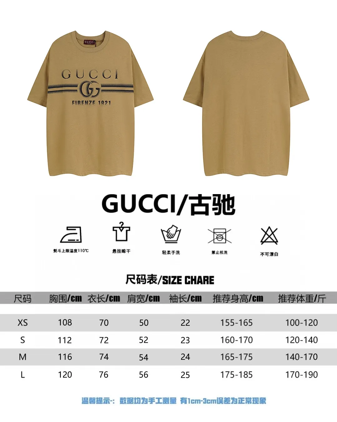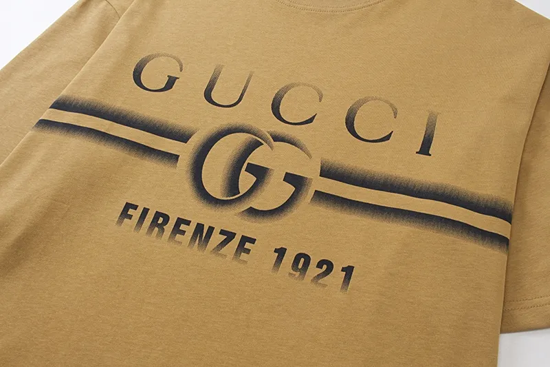 Gucciのカーキグラデーション柄Tシャツは、32s精棉平纹面料を使用し、260gの重さで高品質な着心地を提供します。高密度渗透印花技術により、フィレンツェ1921のロゴが鮮やかに再現され、グラデーション効果が施されています。浆料の良好な渗透性と色牢度により、長持ちするデザインを実現しています。このような高品質なアイテムをお探しの方には、スーパーコピー Tシャツもおすすめです。