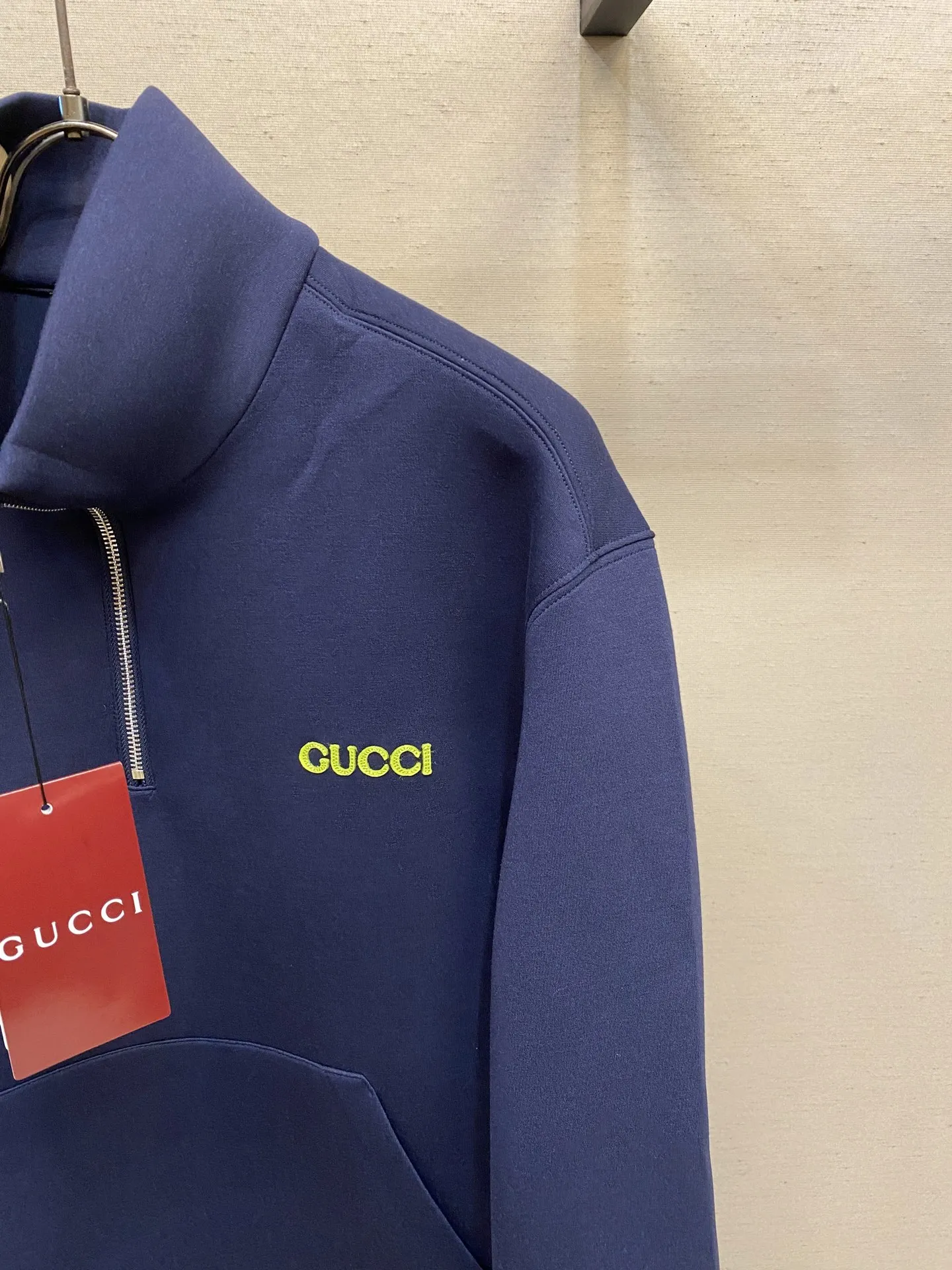 Gucciのネイビー半ジップパーカーは、再生レーヨンとスパンデックスの組み合わせで肌に優しい柔らかさを実現。特殊な編み構造が美しいドレープ感を生み出し、動きやすさを確保します。刺繍ロゴは防シワ処理が施され、洗濯後も形状を保持。内部の特殊織り構造が保温効果を高め、湿気を効率的に排出します。このような高品質なアイテムをお探しの方には、スーパー コピーの商品もおすすめです。
