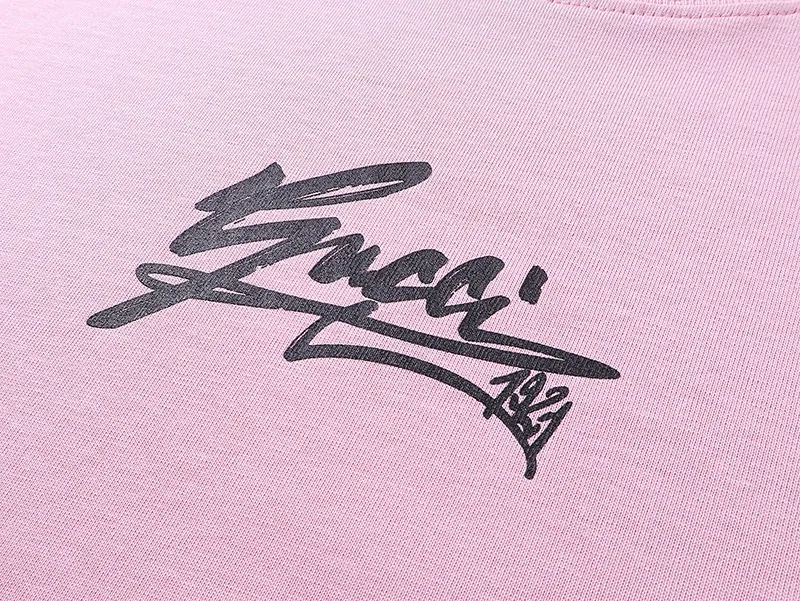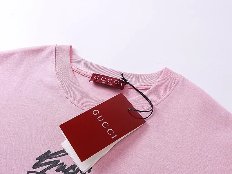 GucciのピンクロゴプリントTシャツは、2024年の新作で、グラデーションプリントが特徴です。立体プリント技術を使用し、純 Cotton素材で作られています。通気性が良く、変形しにくいため、快適に着用できます。男女兼用で、ゆったりとしたシルエットが魅力です。また、N級品としての高いクオリティを誇り、三つのブランドタグが付いており、品質を保証します。