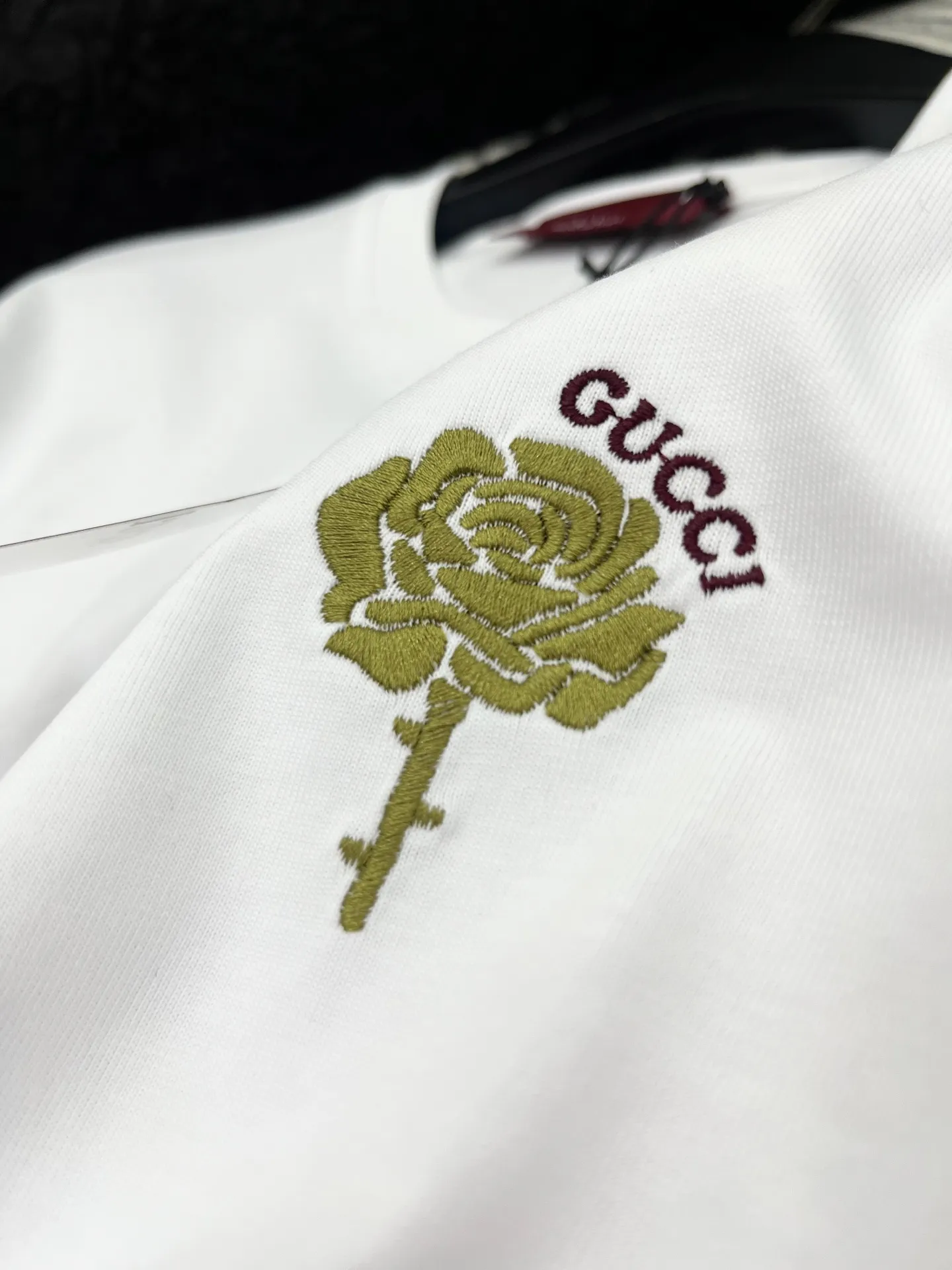 Gucci新作白半袖Tシャツ黒ロゴ刺繍