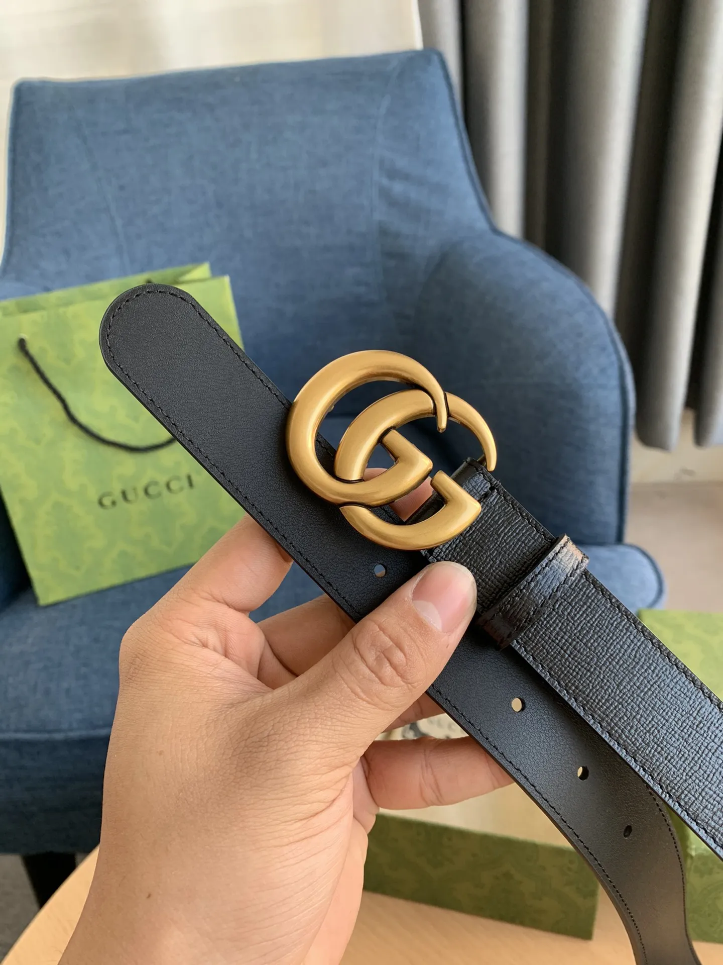 Gucci新作黒ベルトゴールドバックル4cm幅