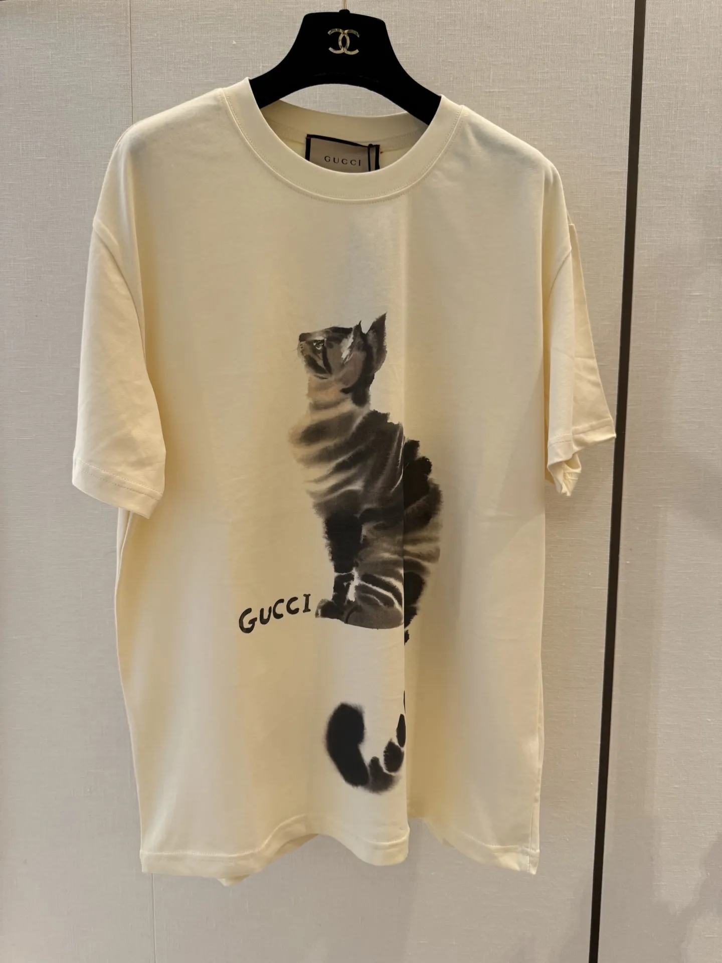 グッチの新作猫プリント半袖Tシャツは、純 Cotton素材を使用し、肌触りが非常に柔らかく、着心地が良いです。胸元にはエコフレンドリーな猫のプリントが施され、カジュアルで若々しいスタイルを演出します。ゆったりとしたシルエットが特徴で、スタイリングに欠かせない一着です。東京のトレンドを感じるデザインで、ファッションに敏感な方にぴったりのTシャツ スーパー コピーアイテムです。