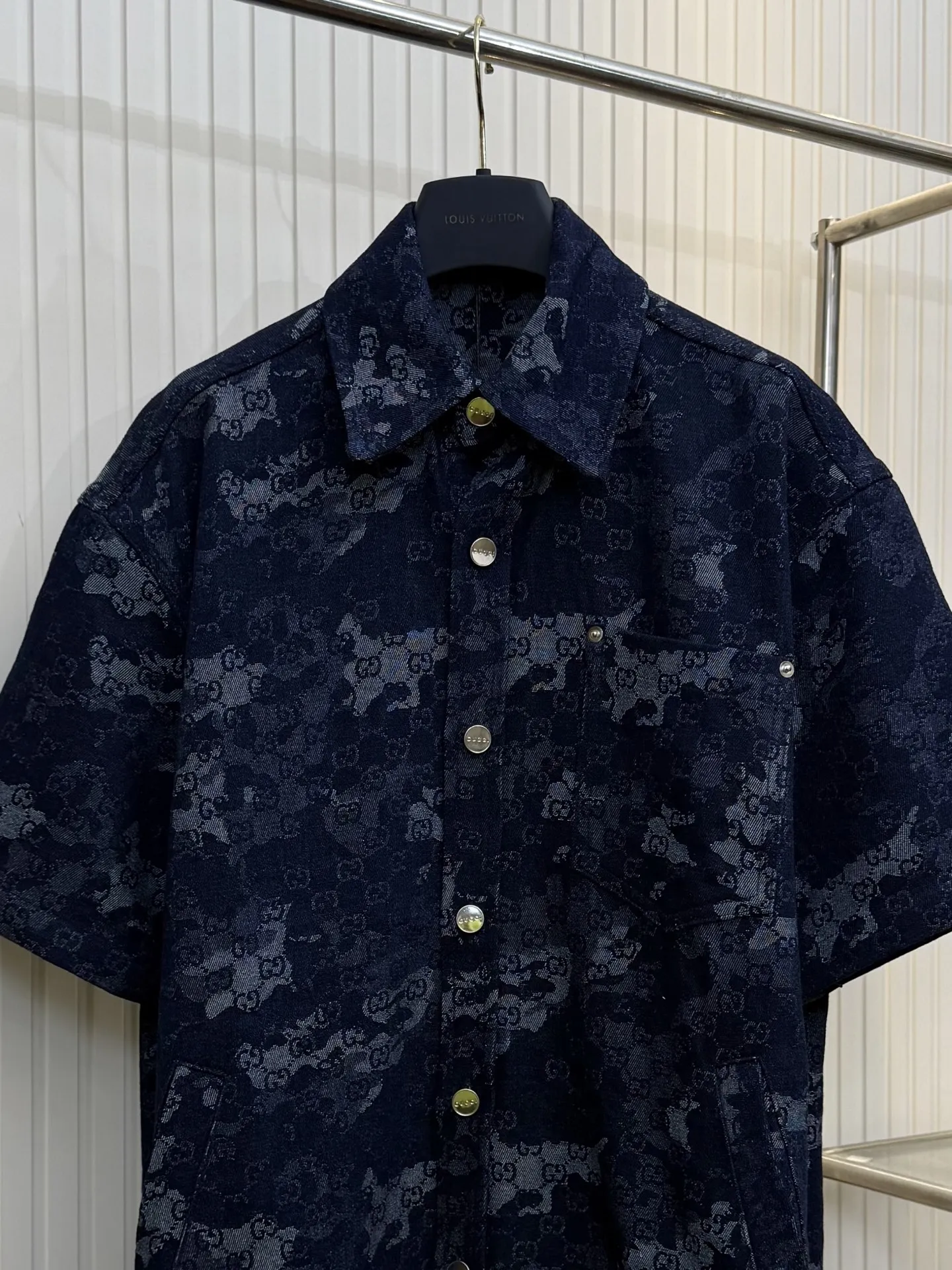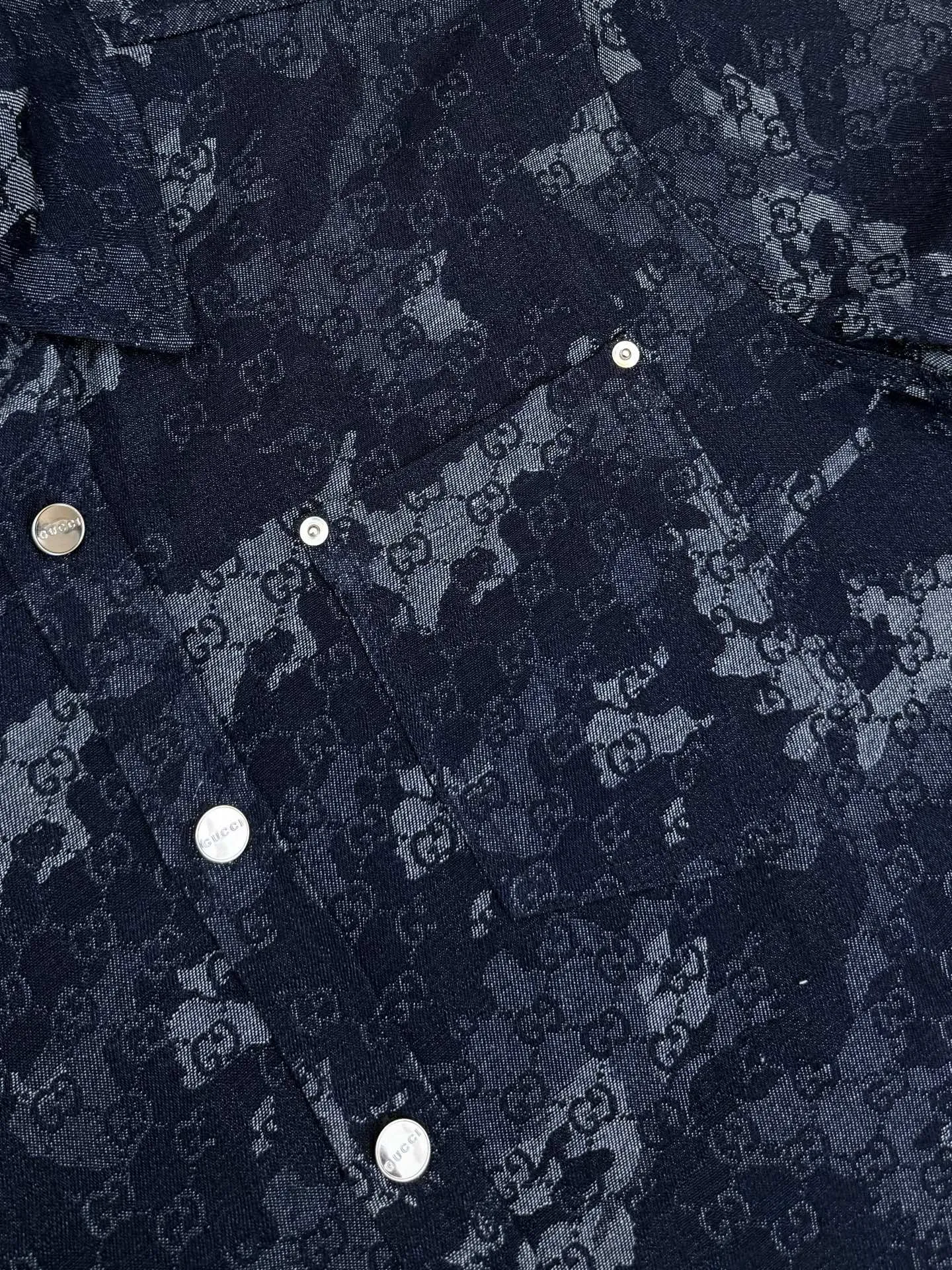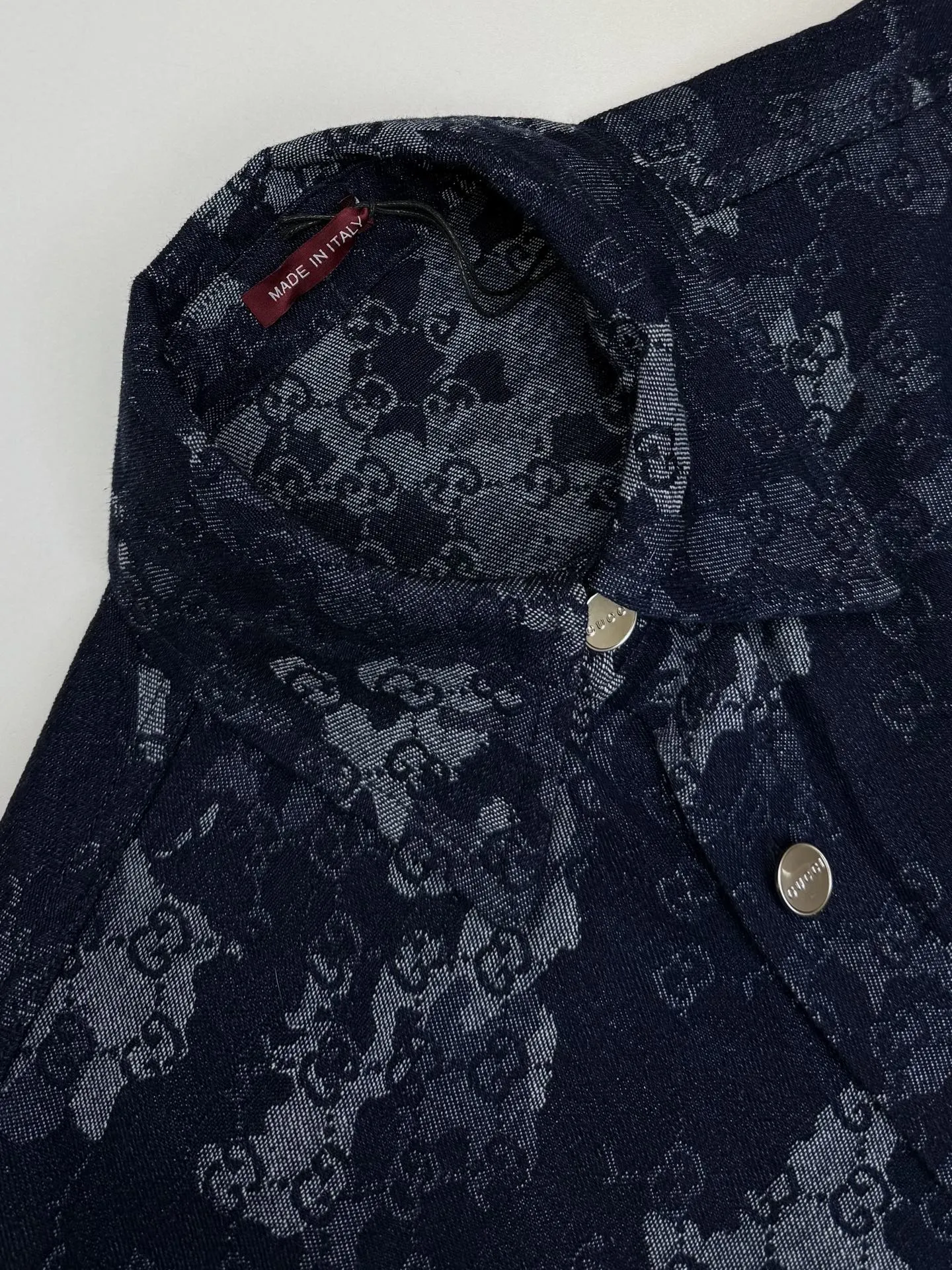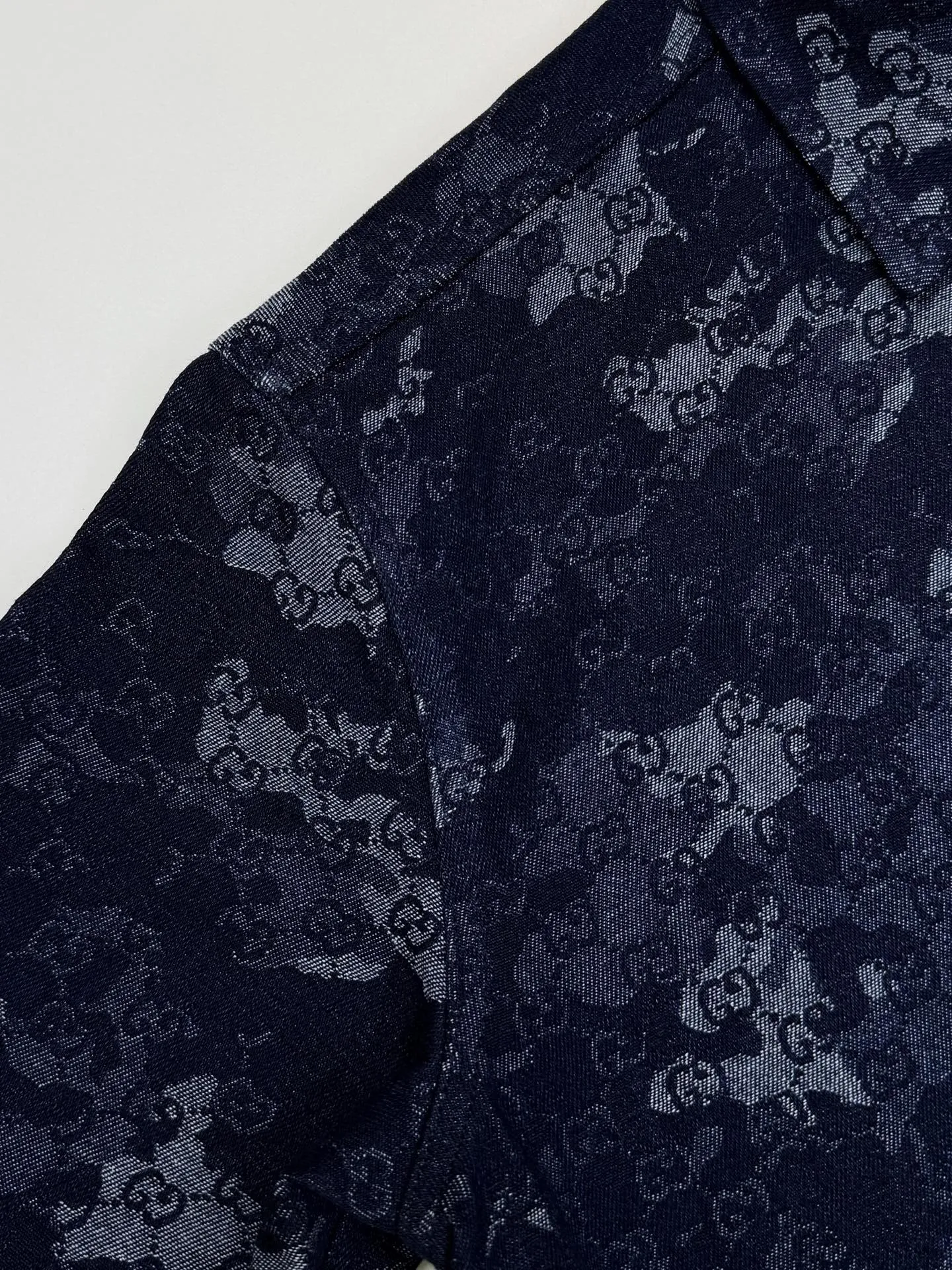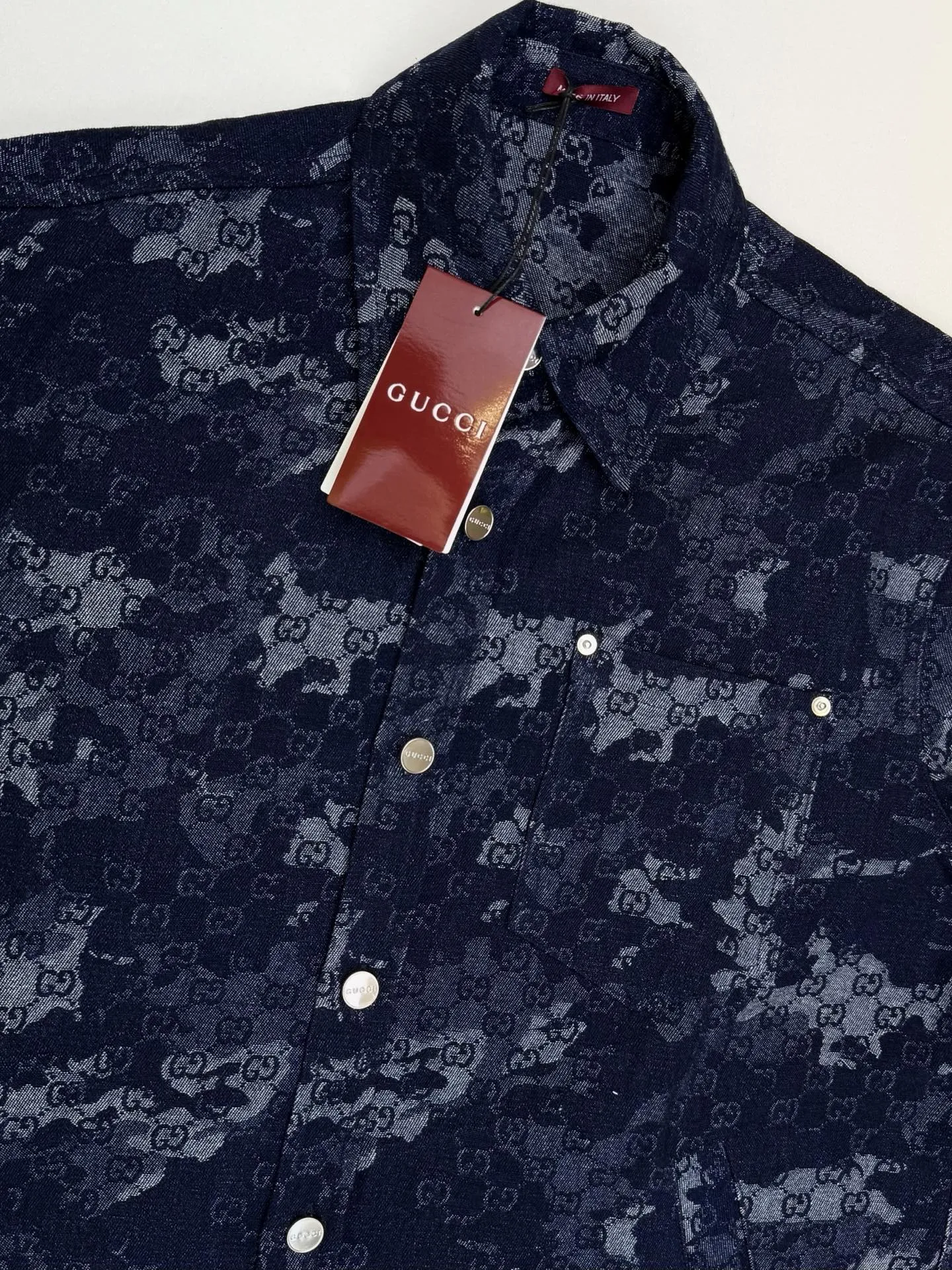 GUCCI新作GGジャカードシャツ青クラシック柄SML