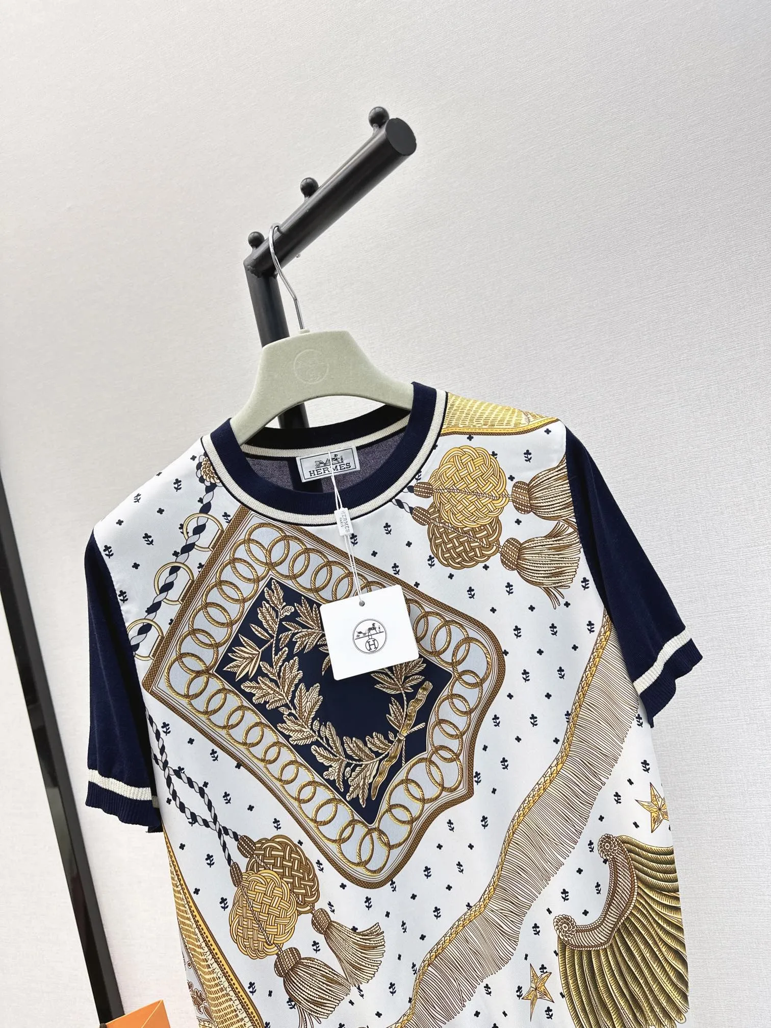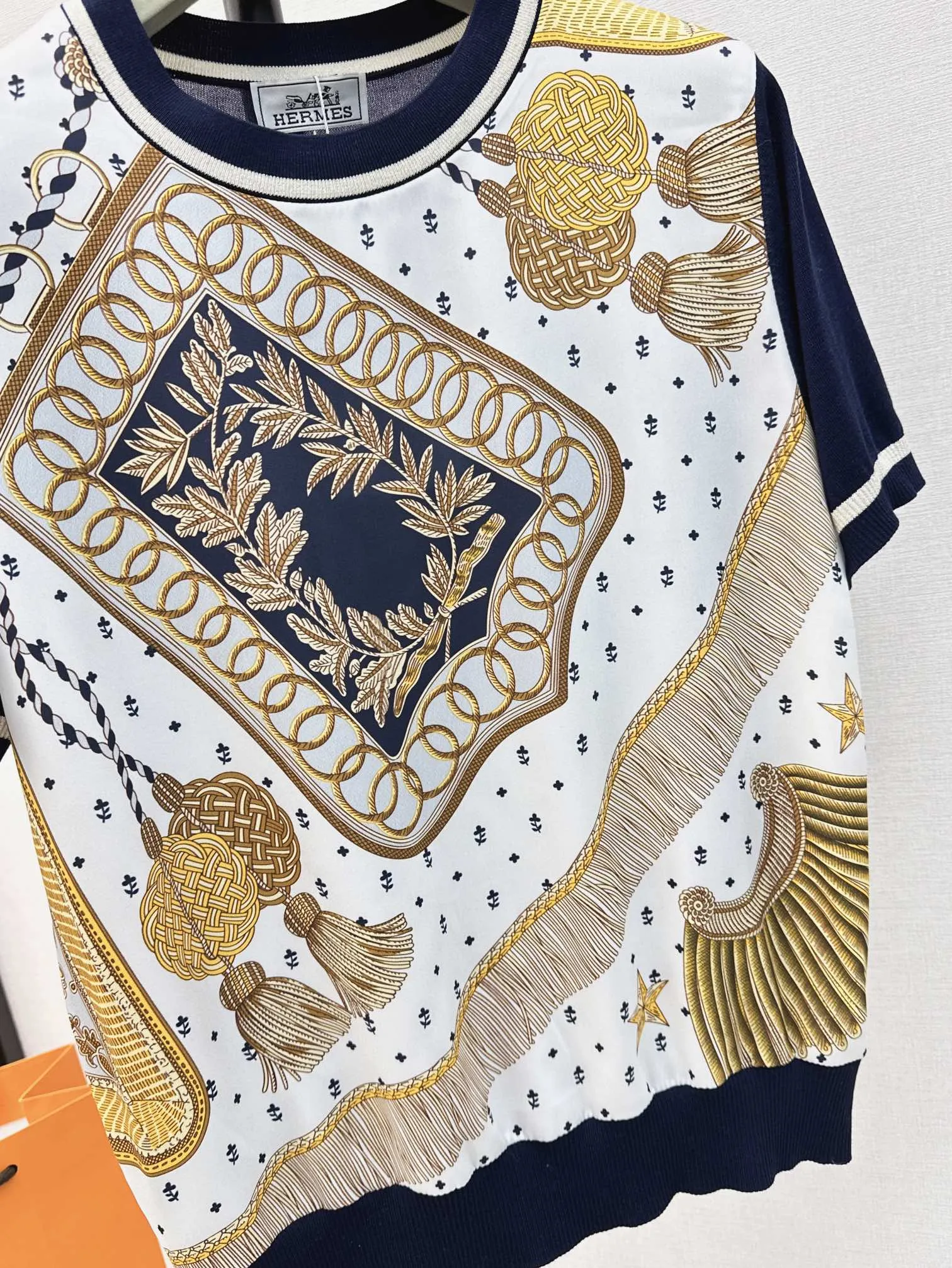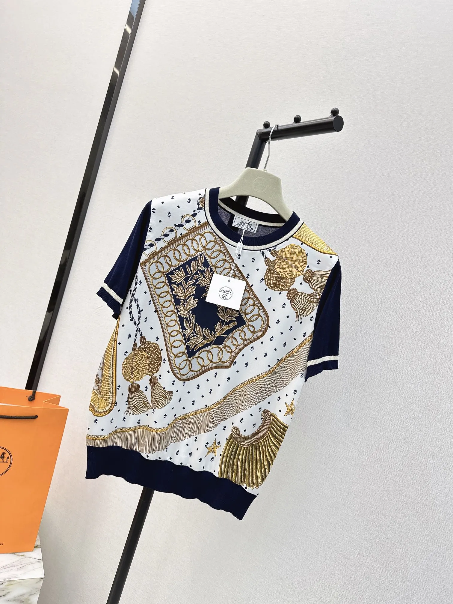 Hermes新作プリント半袖Tシャツ白ストライプ