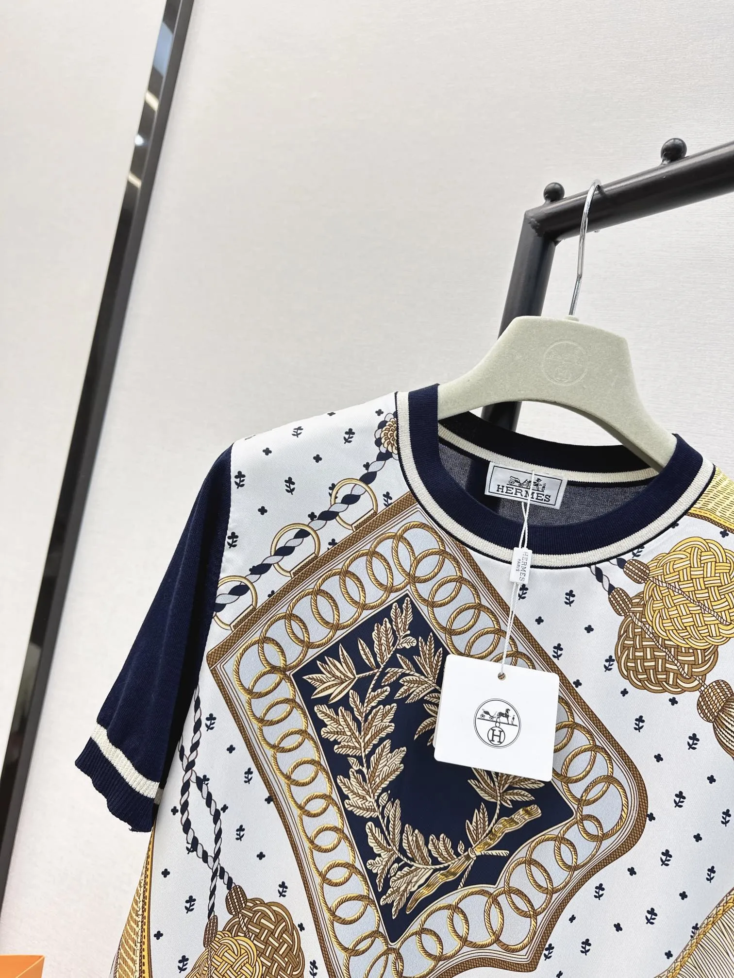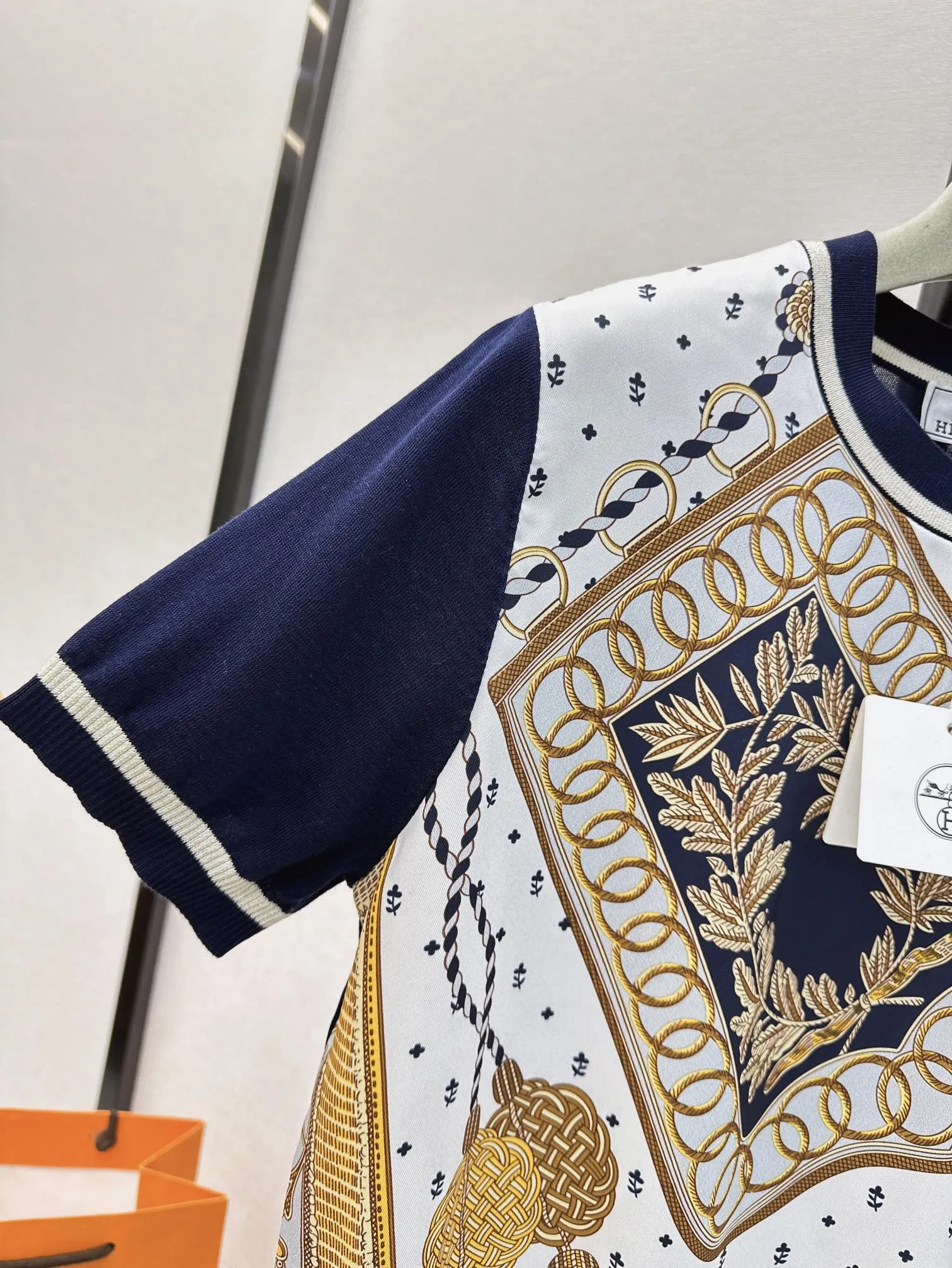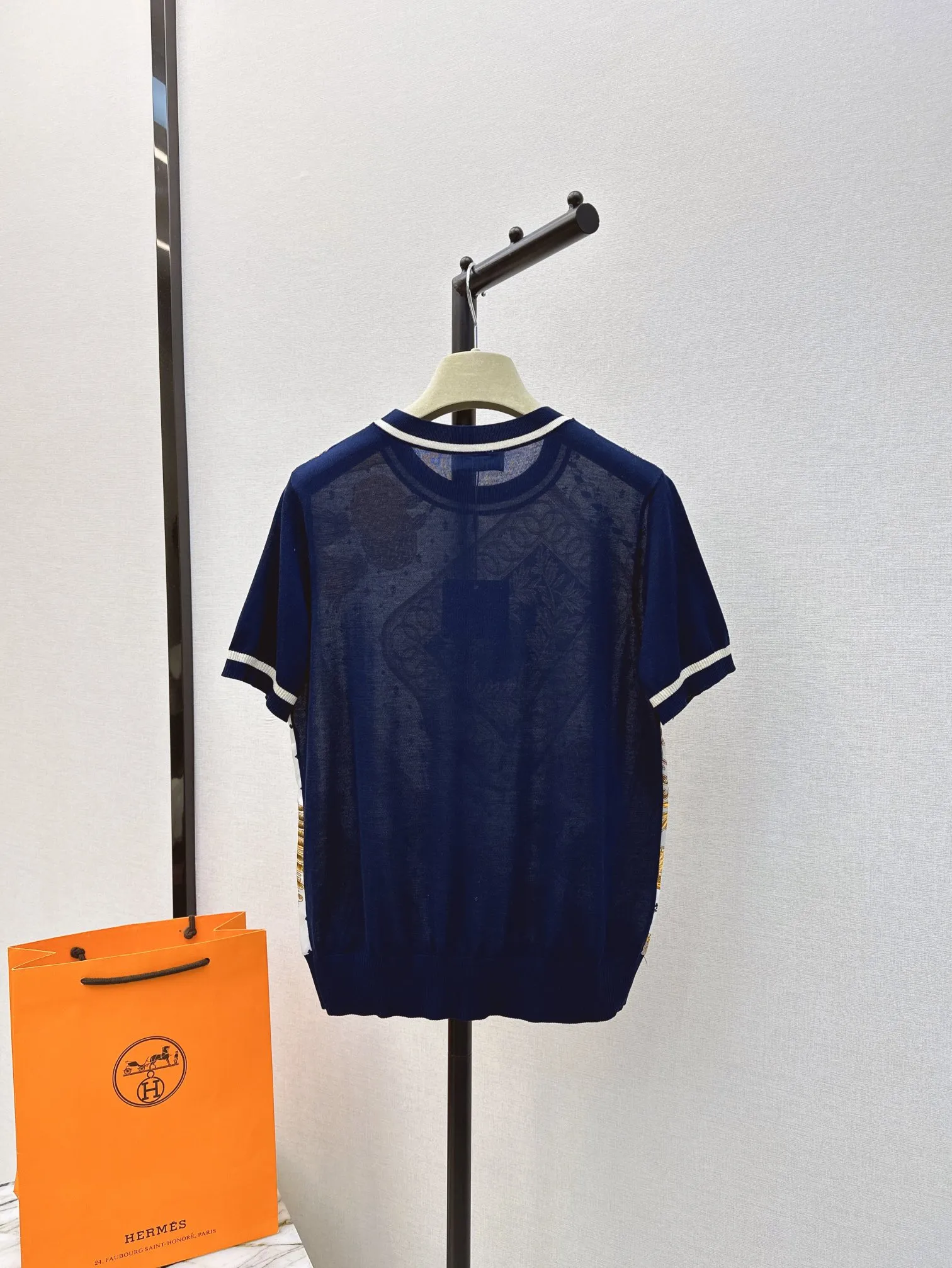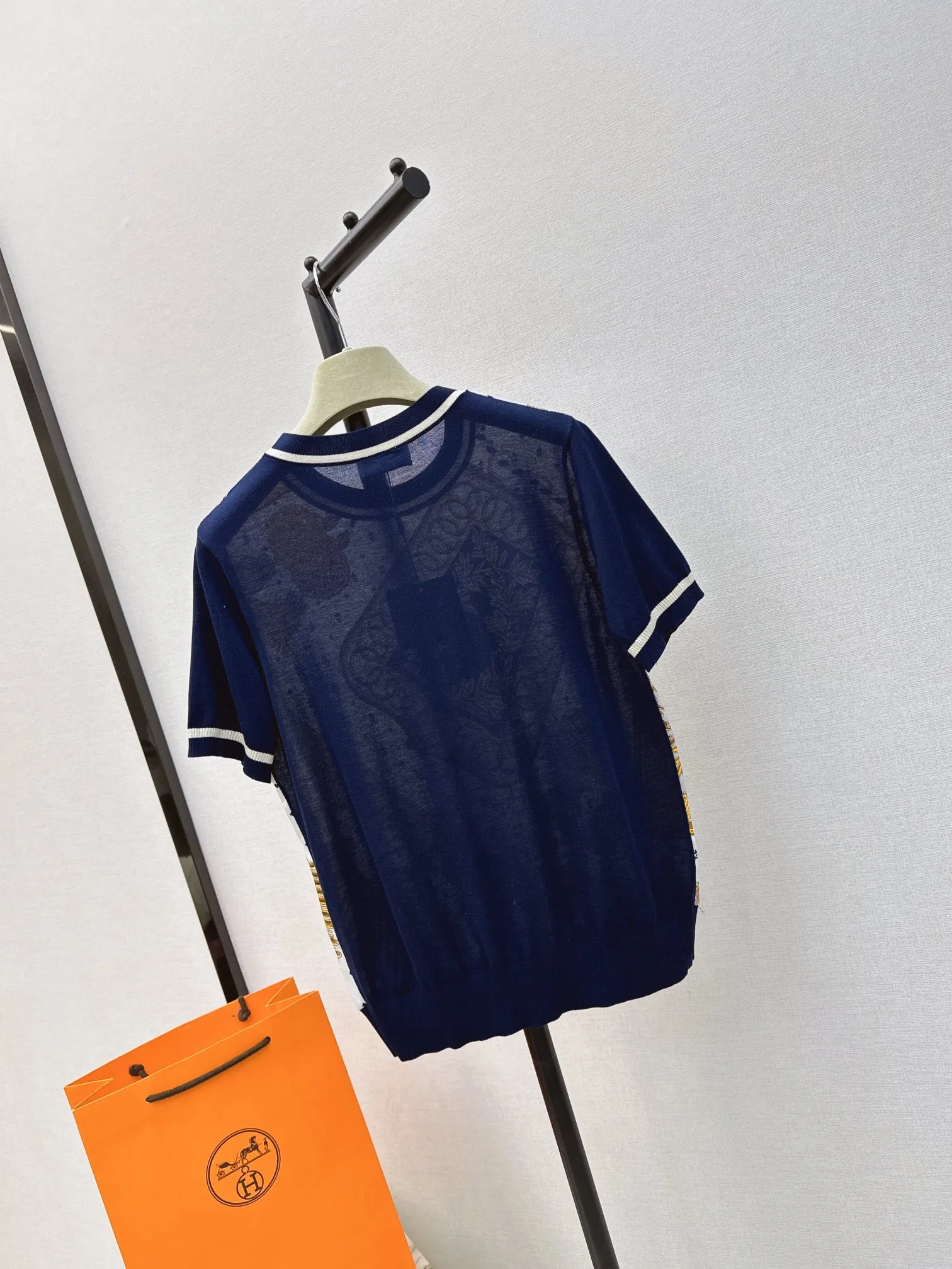 Hermes新作プリント半袖Tシャツ白ストライプ