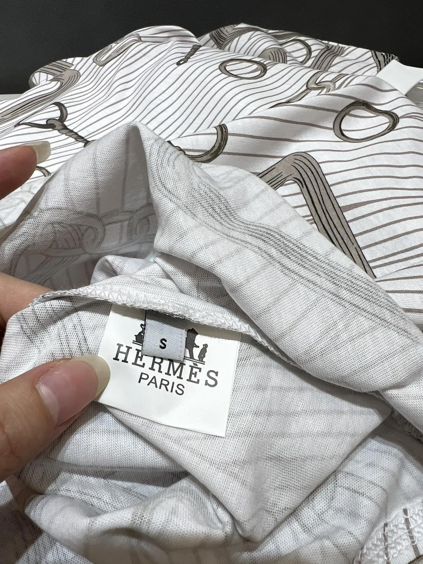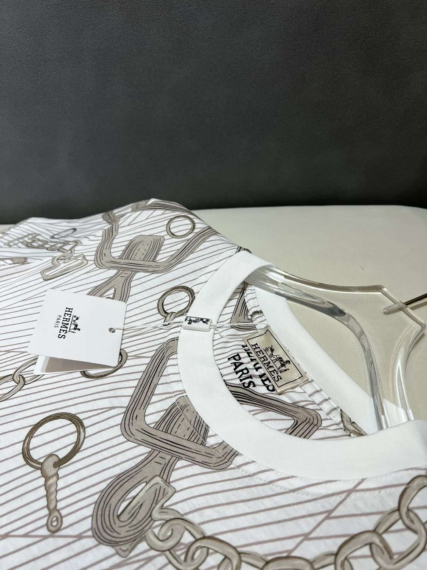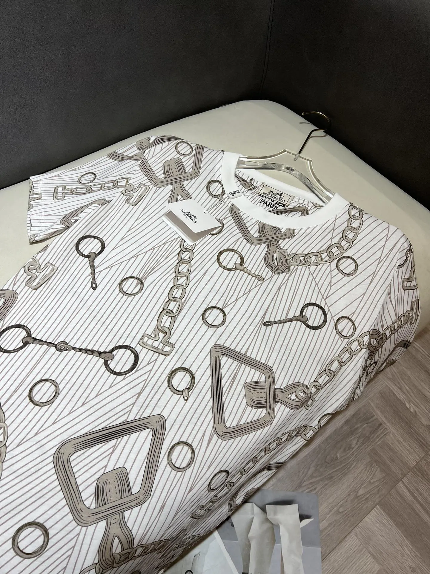 HER2024春夏新作のホワイトストライプブレスレットTシャツです。全棉素材を使用し、透気性が高く、快適な着心地を提供します。丸首落ち肩デザインで、成衣定位活性プリントにより異なるブレスレット柄が施されています。高級感とアート性を兼ね備えたデザインで、日常の街着に最適です。トレンドのスタイルをお探しの方には、Tシャツ スーパーコピーもおすすめです。