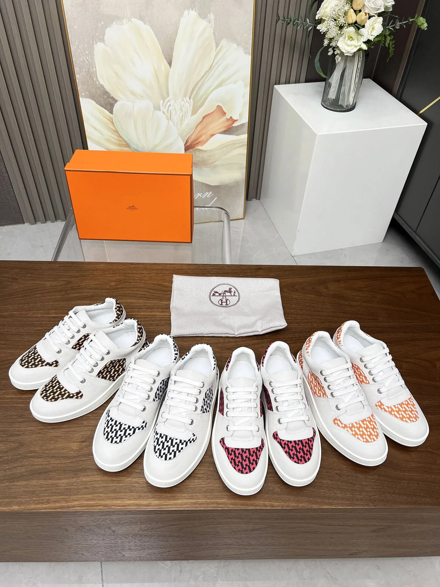 HERMES 愛馬仕 ホワイトピンク 系帯スニーカー