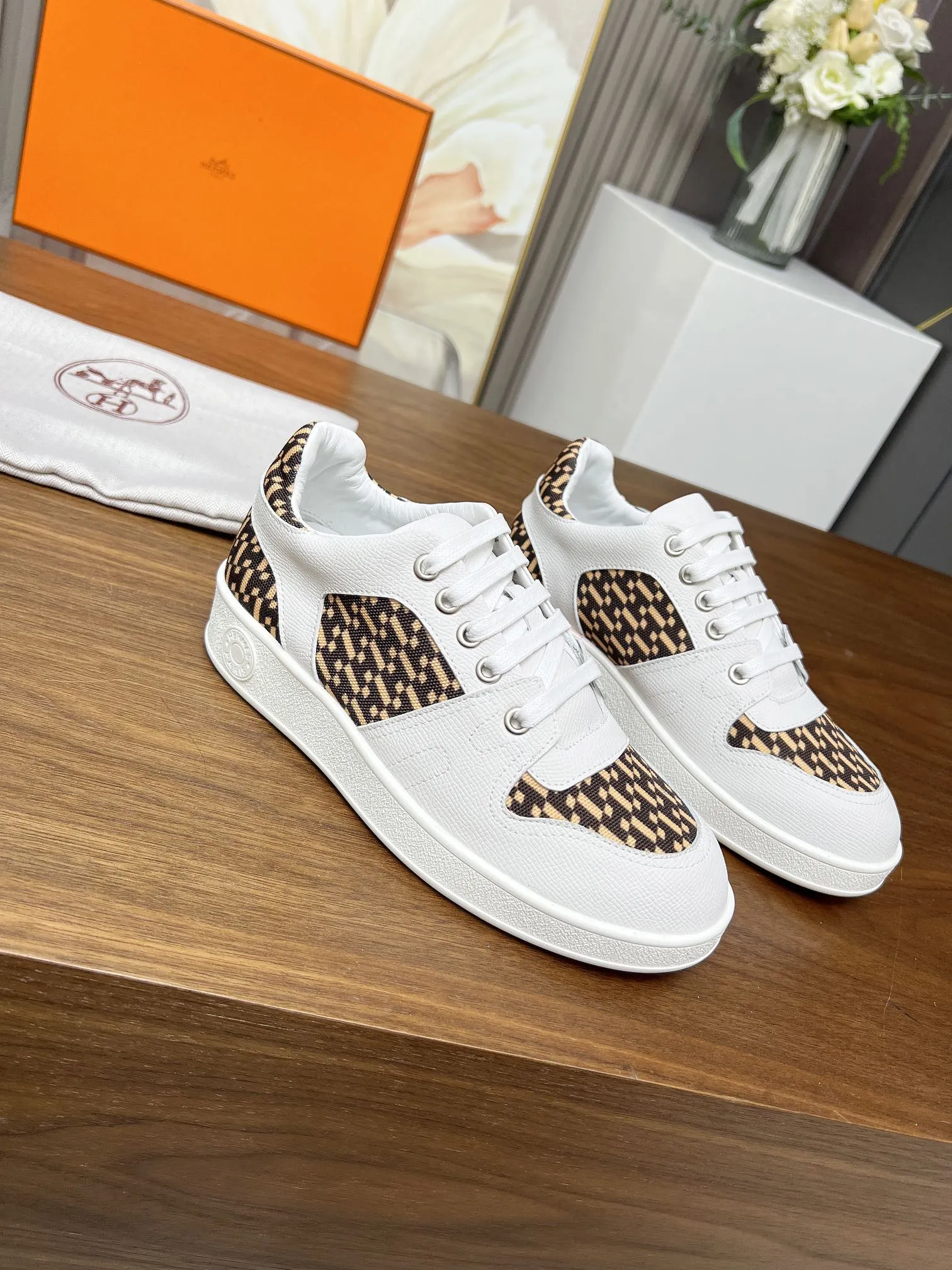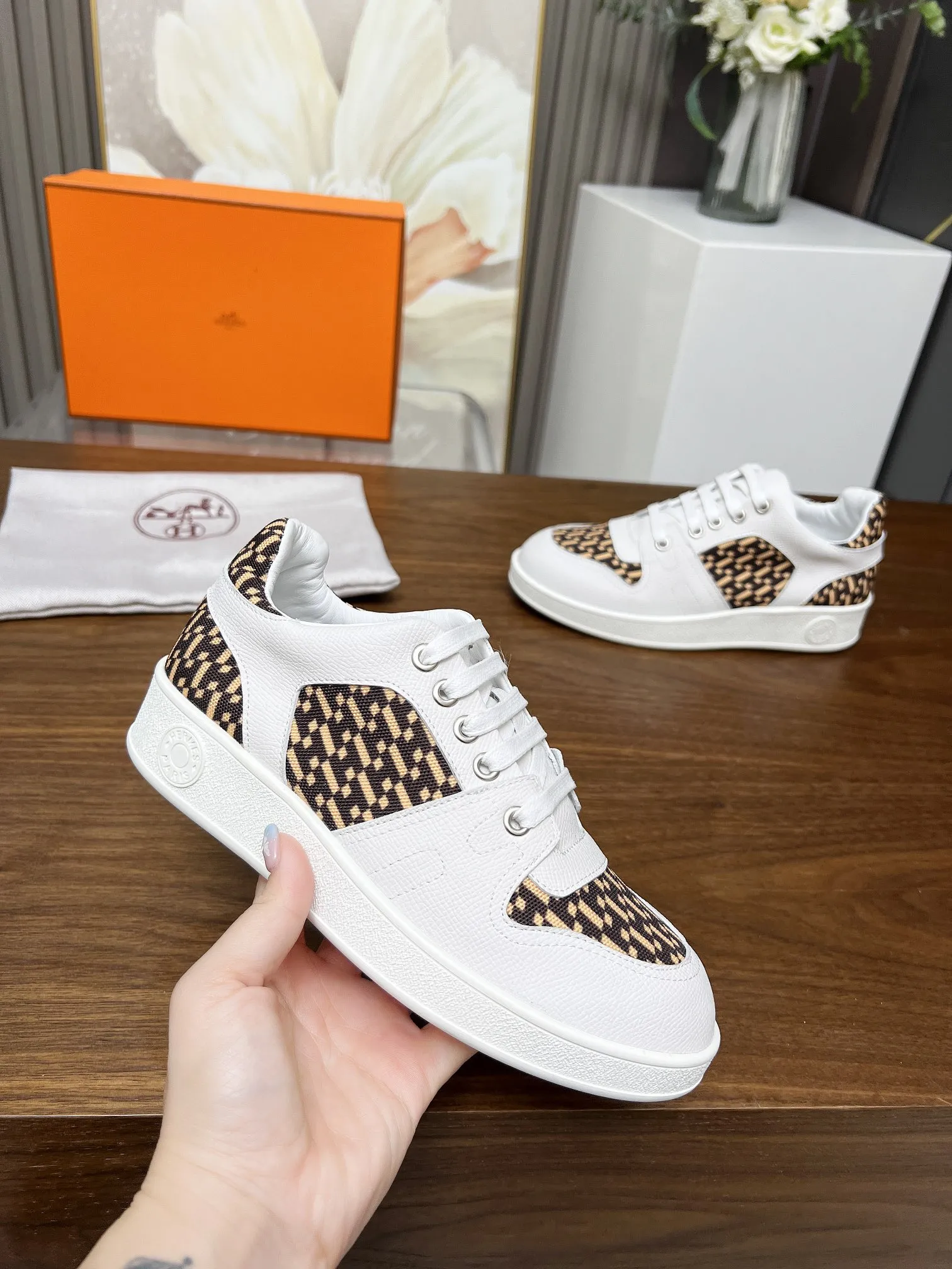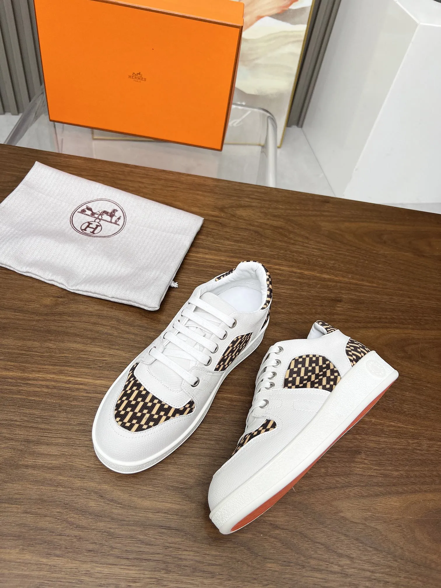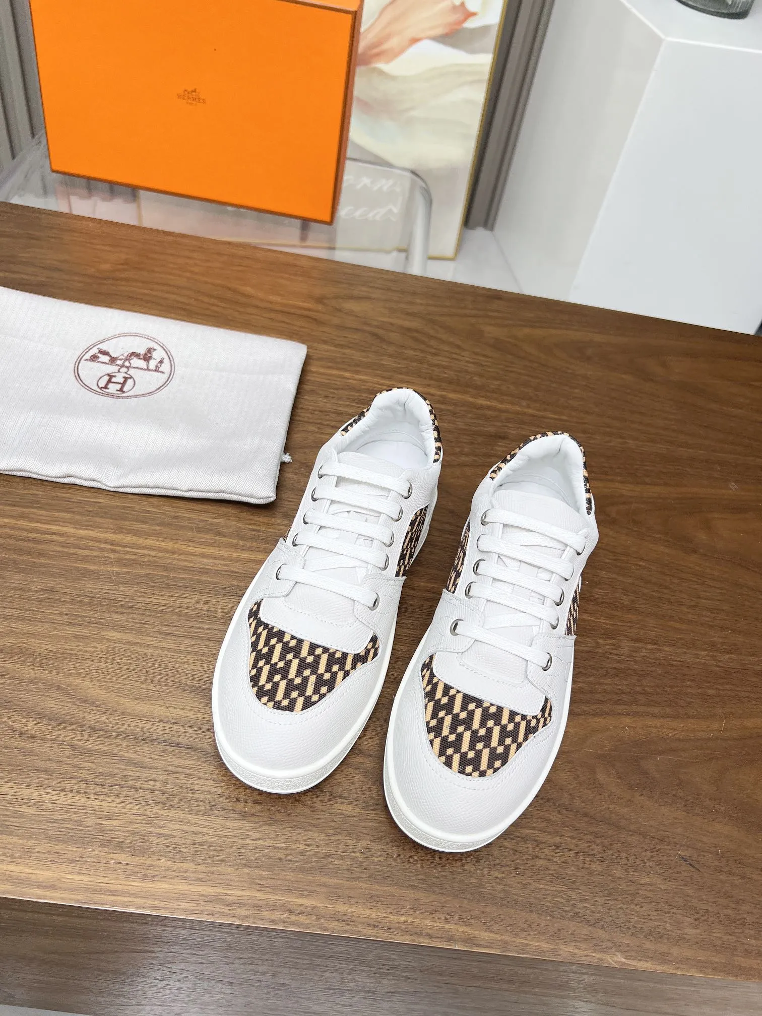 HERMES 愛馬仕 白黒 系帯スニーカー
