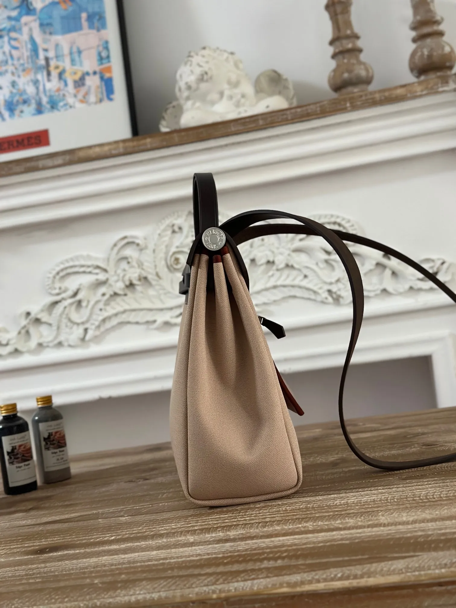 Hermèsの人気モデル、Herbag 31cmです。馬鞍袋からインスピレーションを受けたデザインで、帆布製のボディと革製のショルダーストラップとハンドルが特徴です。ベージュカラーでKellyバッグに似た外観を持ちながら、軽量なのが魅力です。日常使いから特別なシーンまで幅広く活躍する、スーパーコピーバッグとしても注目される一品です。