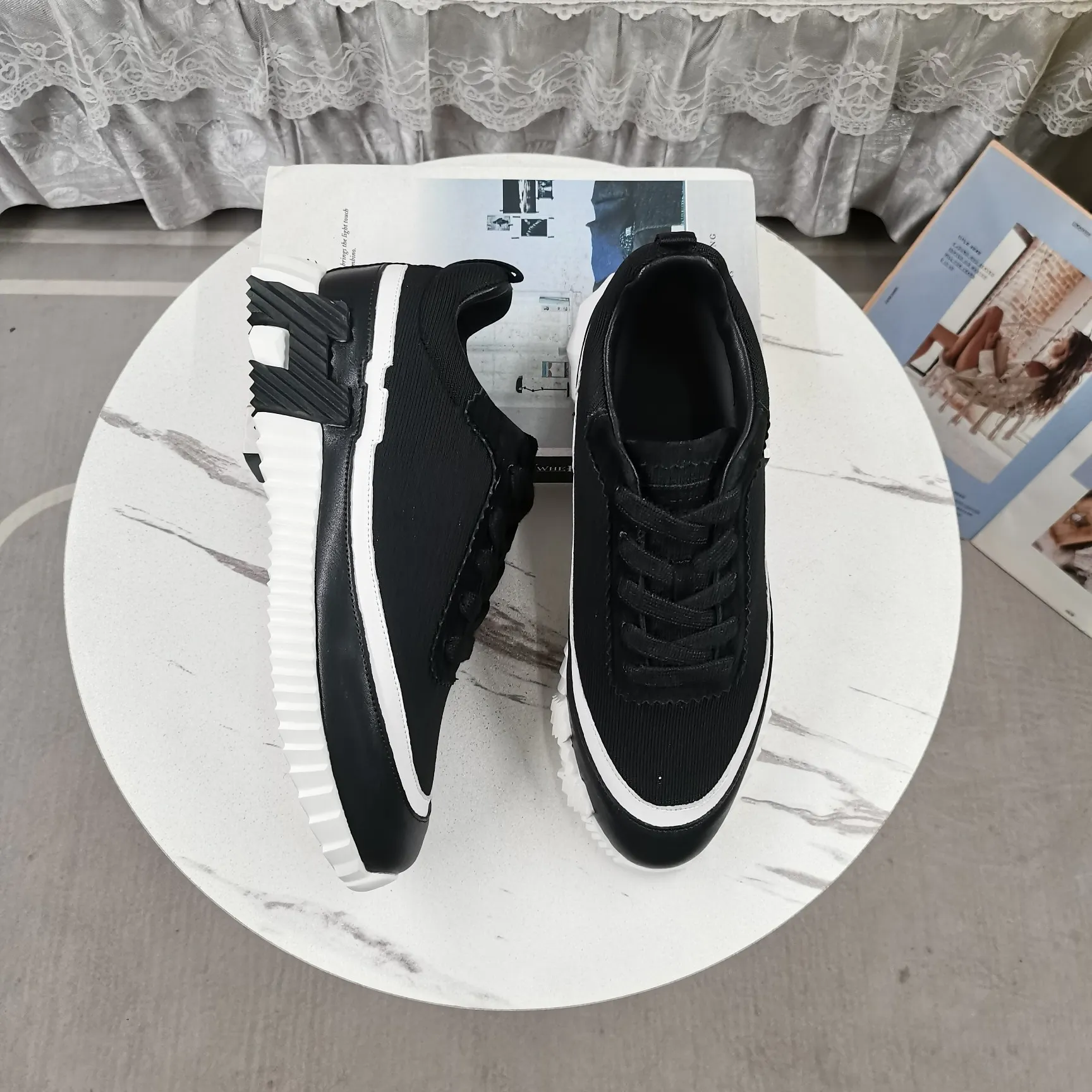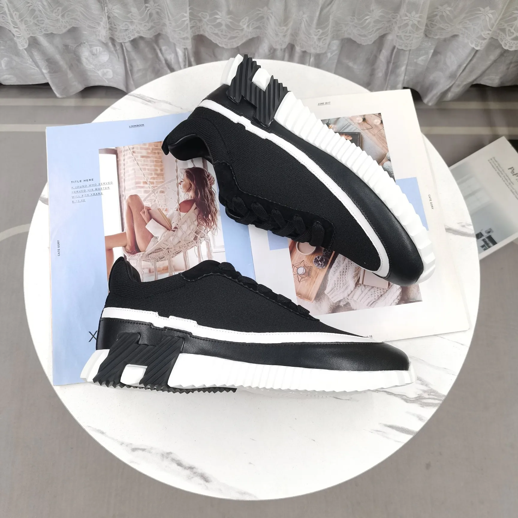 HERMESの新作低帮スニーカーです。ブラックカラーのシンプルなデザインで、進口条纹网布と牛皮を組み合わせた上質な素材を使用しています。超軽量のIP素材ソールはまるで綿を踏んでいるかのような快適さを提供します。3.5cmの厚底でスタイルアップも叶います。東京のトレンドを感じる一足で、スニーカー スーパー コピーとしても注目されています。