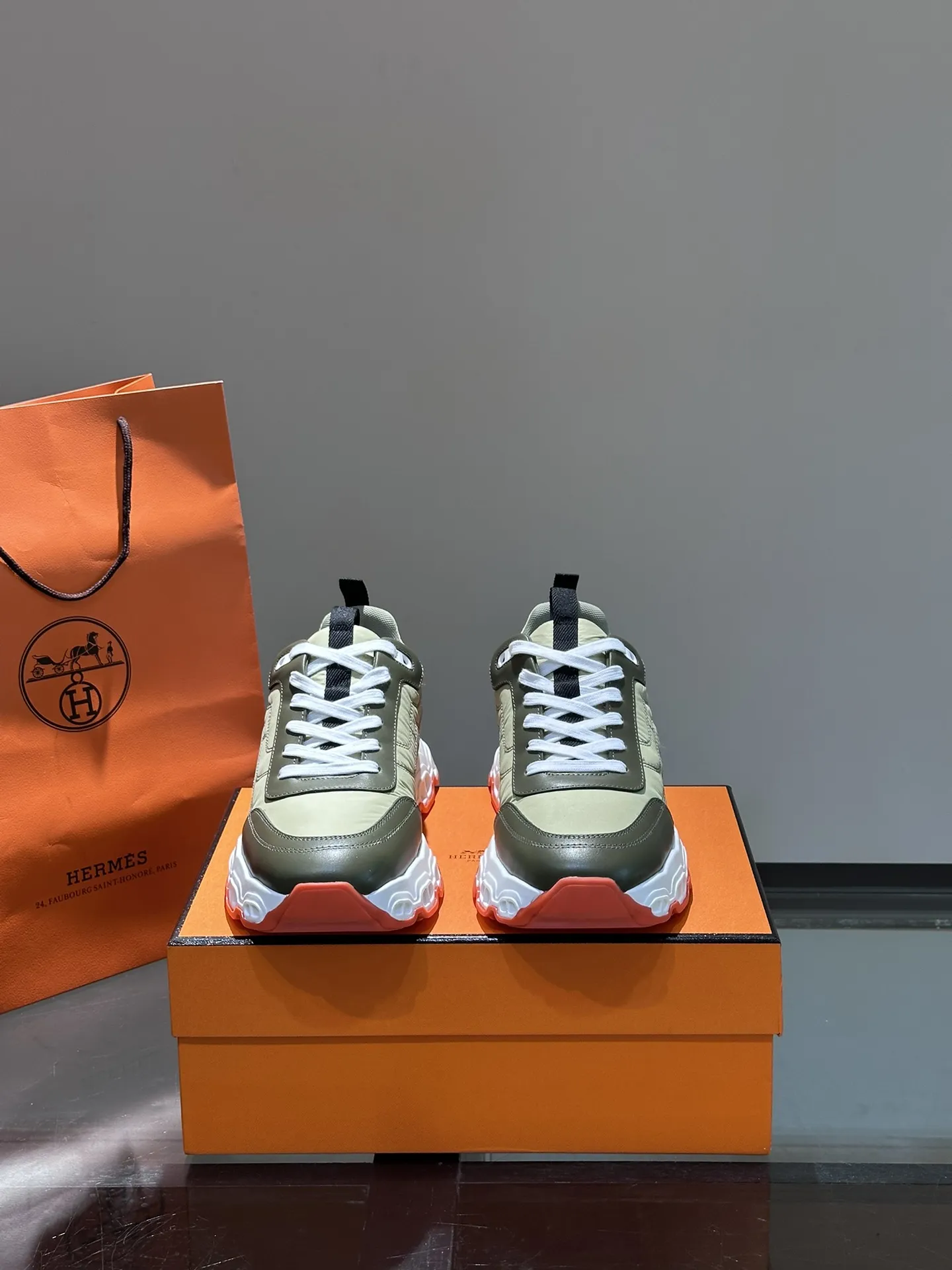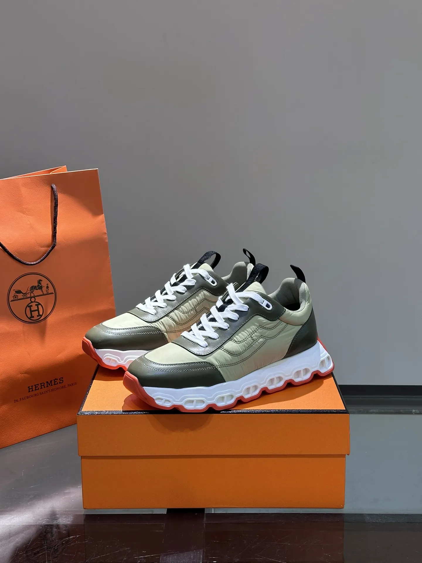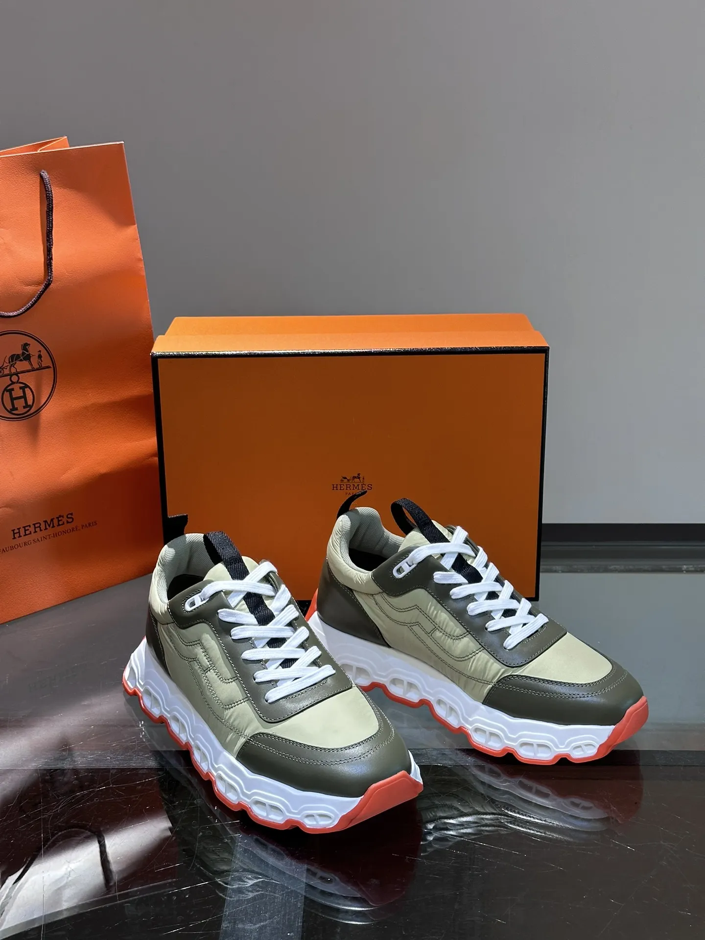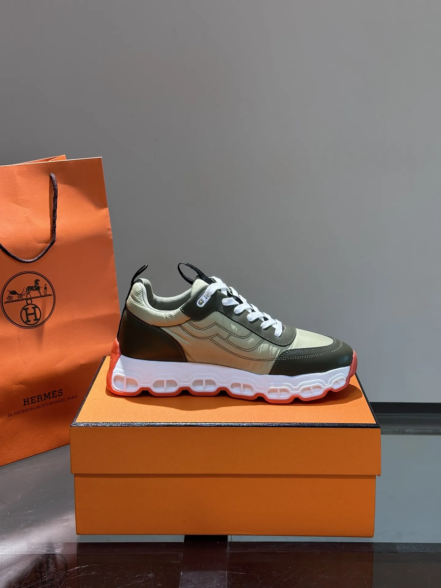 HERMES Hugo 厚底スニーカー グリーン スタイル