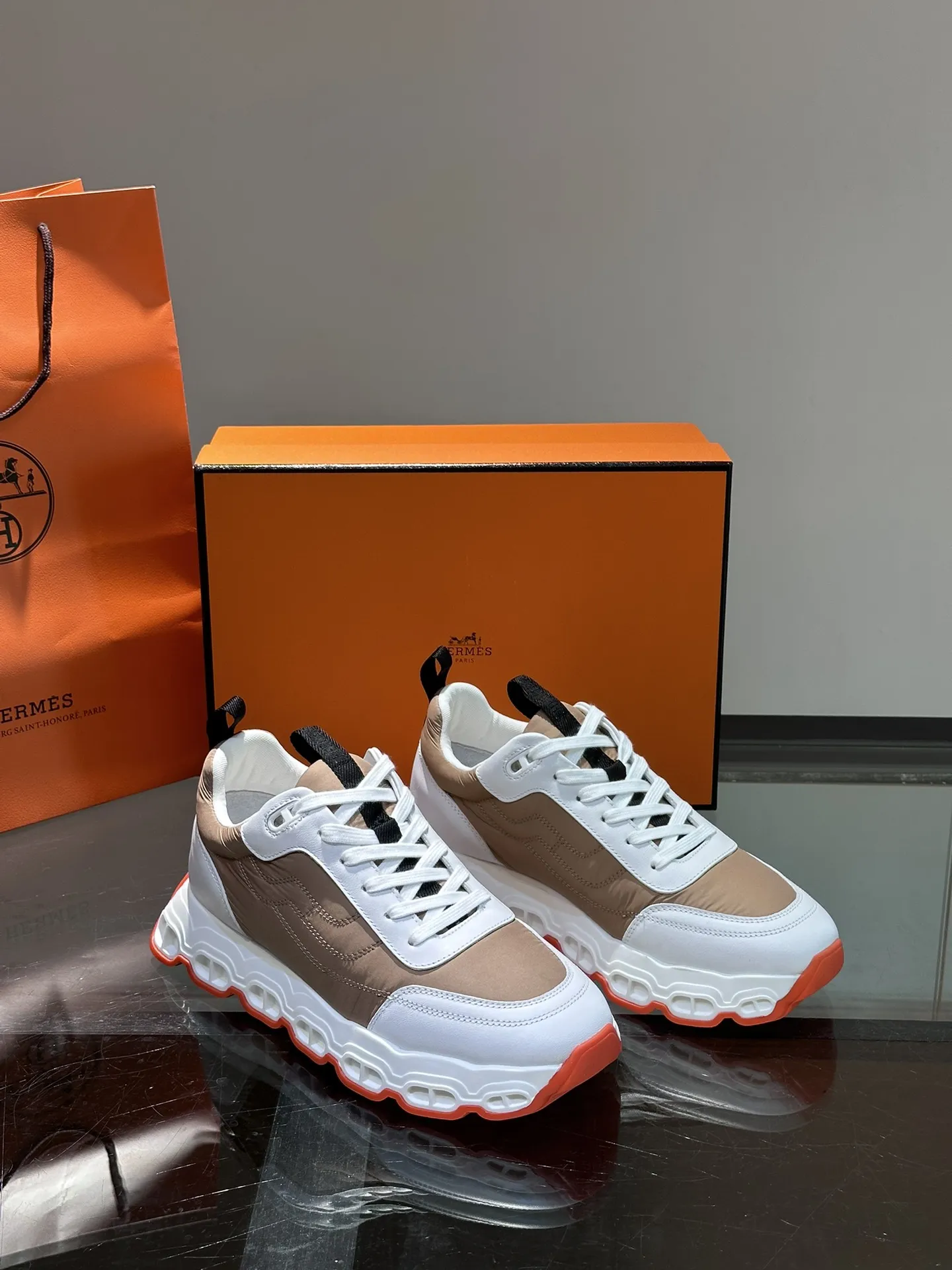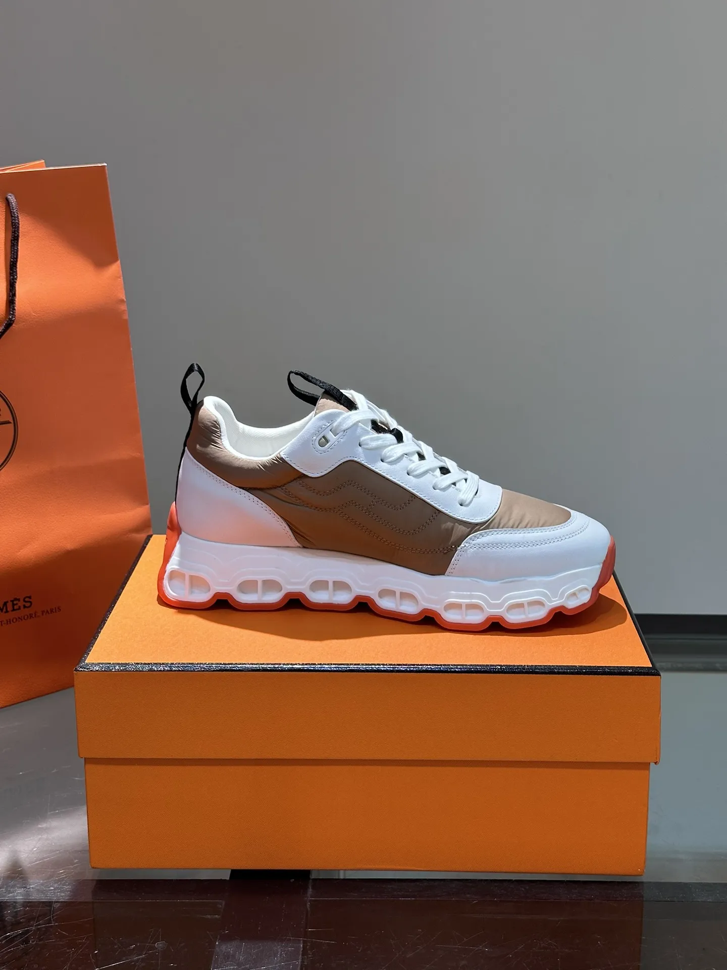 HERMES Hugo 厚底スニーカー ホワイト×ブラウン