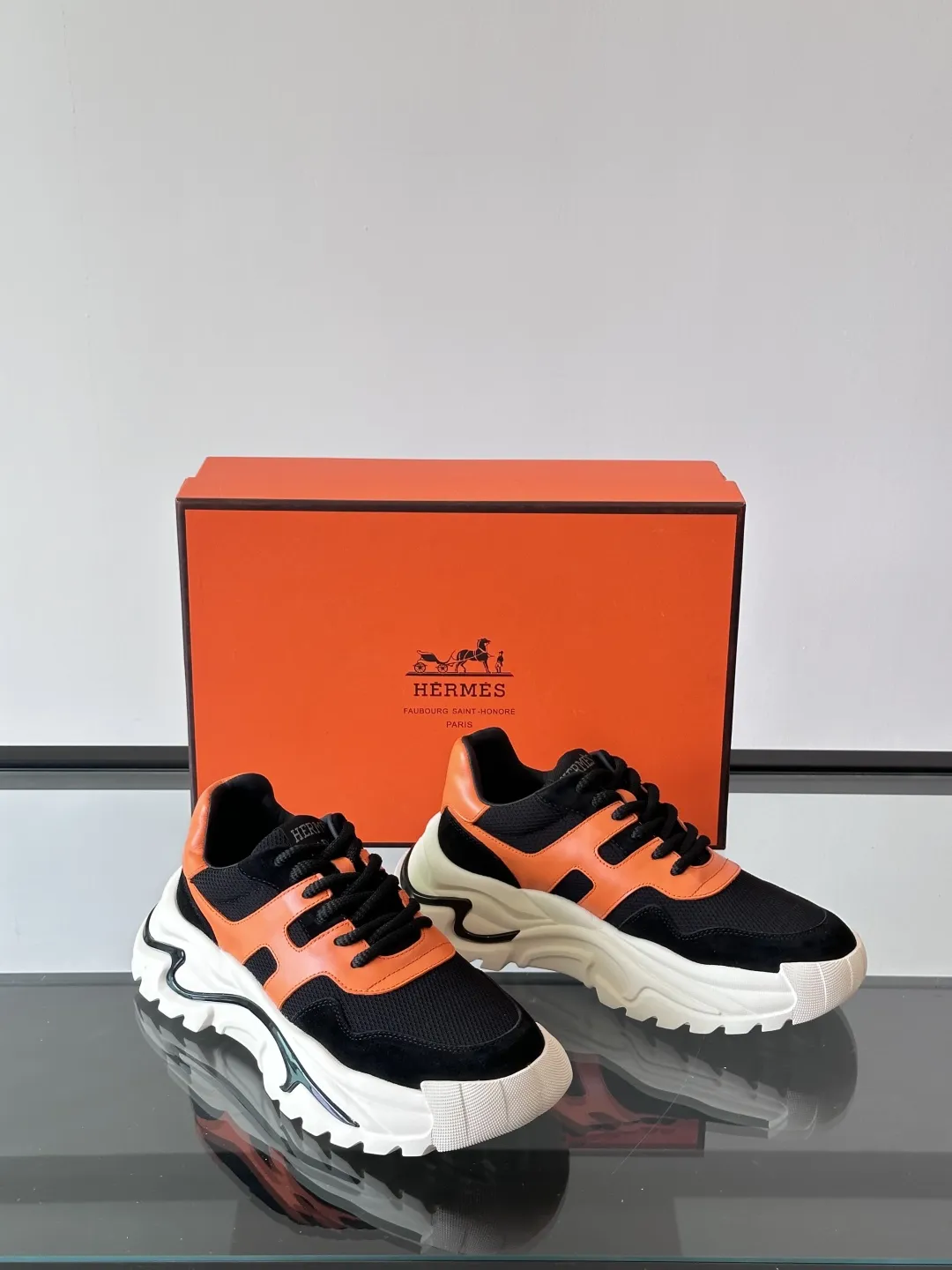 エルメス厚底スニーカーオレンジホワイトカジュアル
